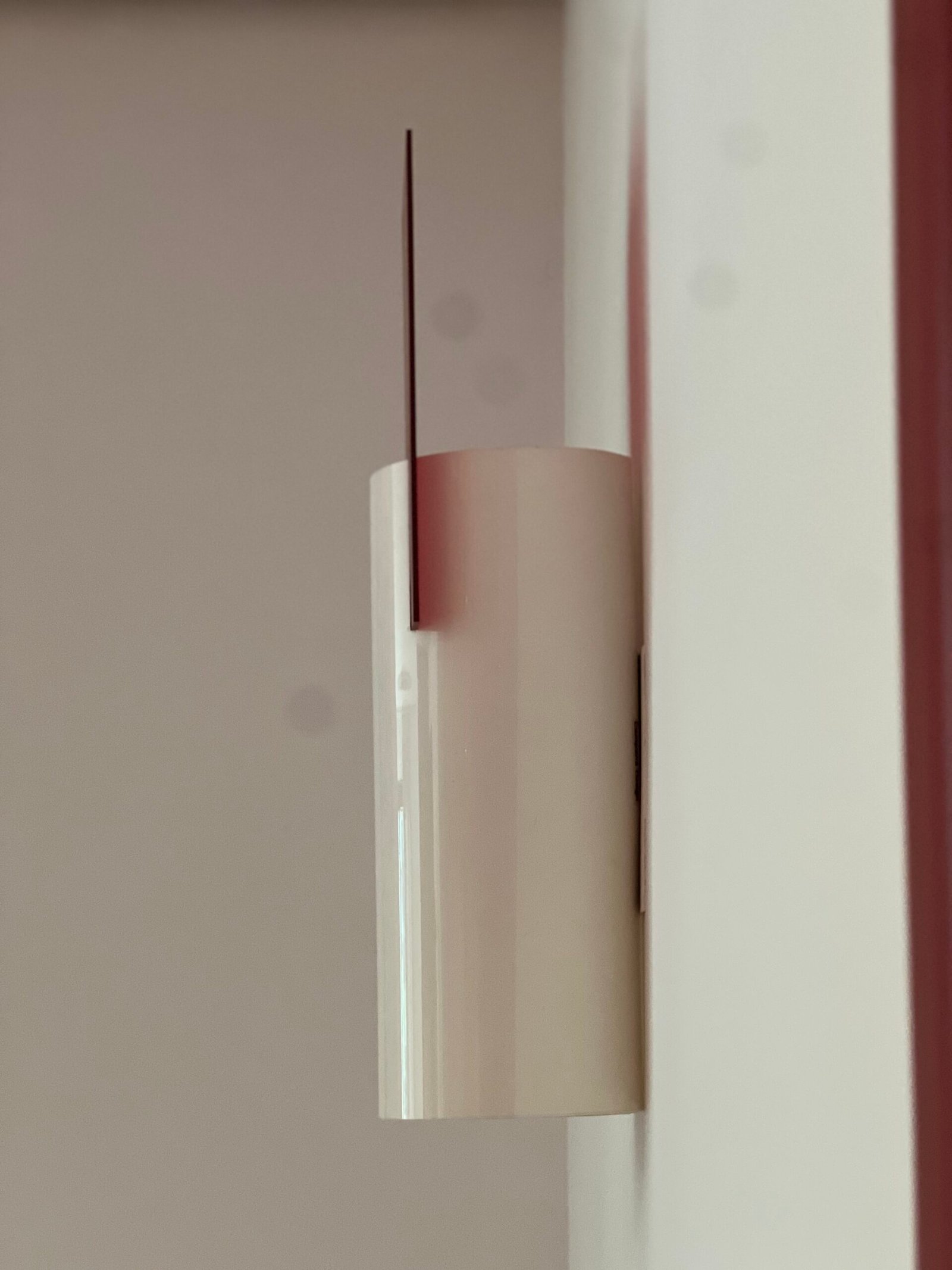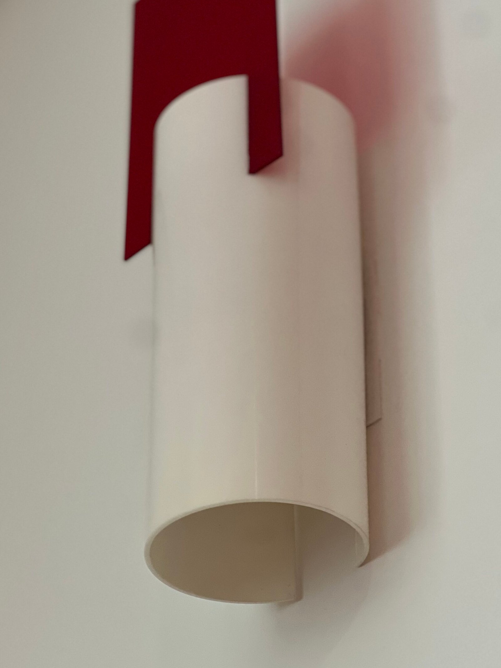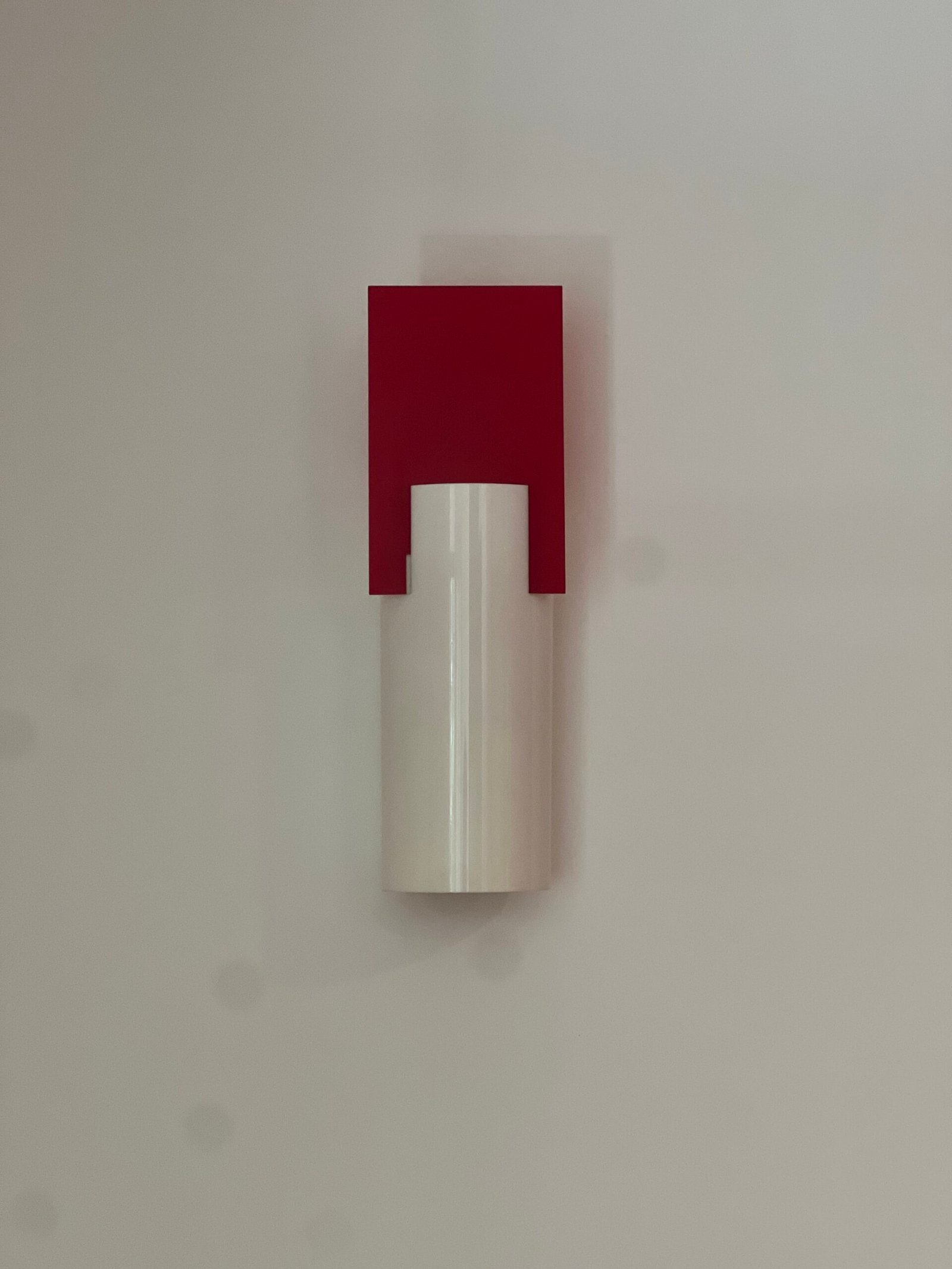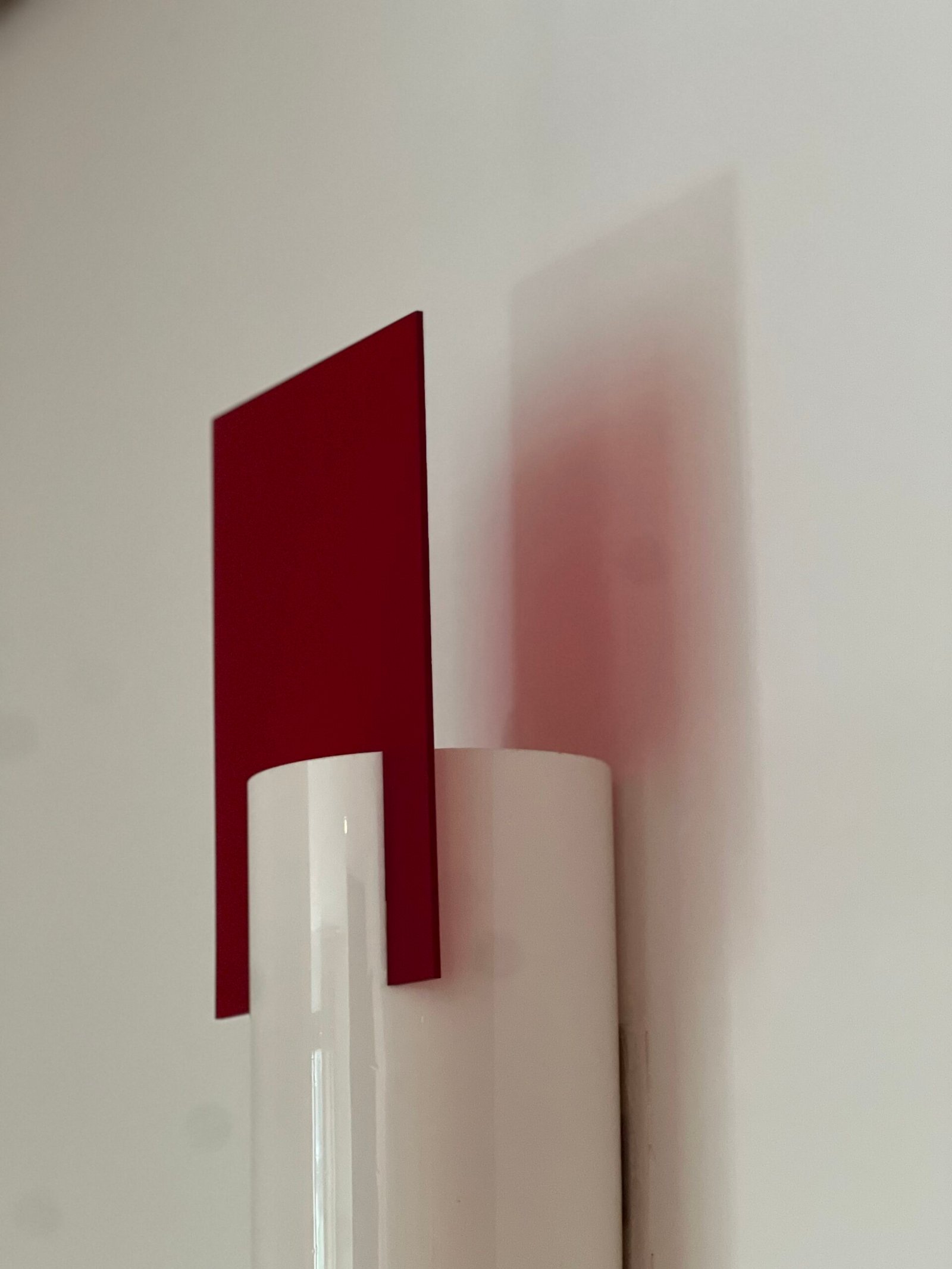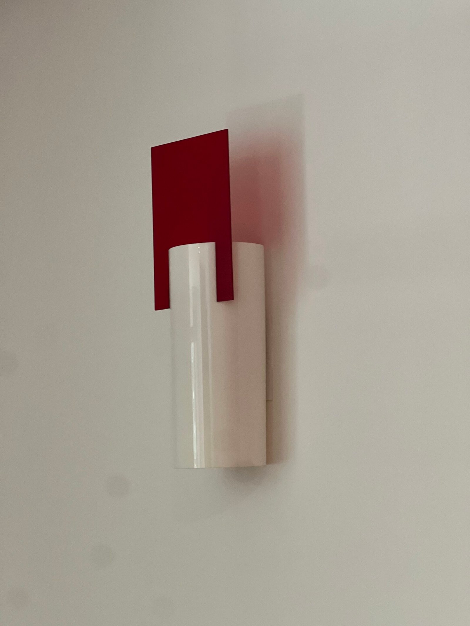 Cód: cemartsp47 DESCRIÇÃO: Arandela Ilium Cilindro Material: vidro serigrafado Cor: branco e vermelho 02 lâmpadas Voltagem: 110V
