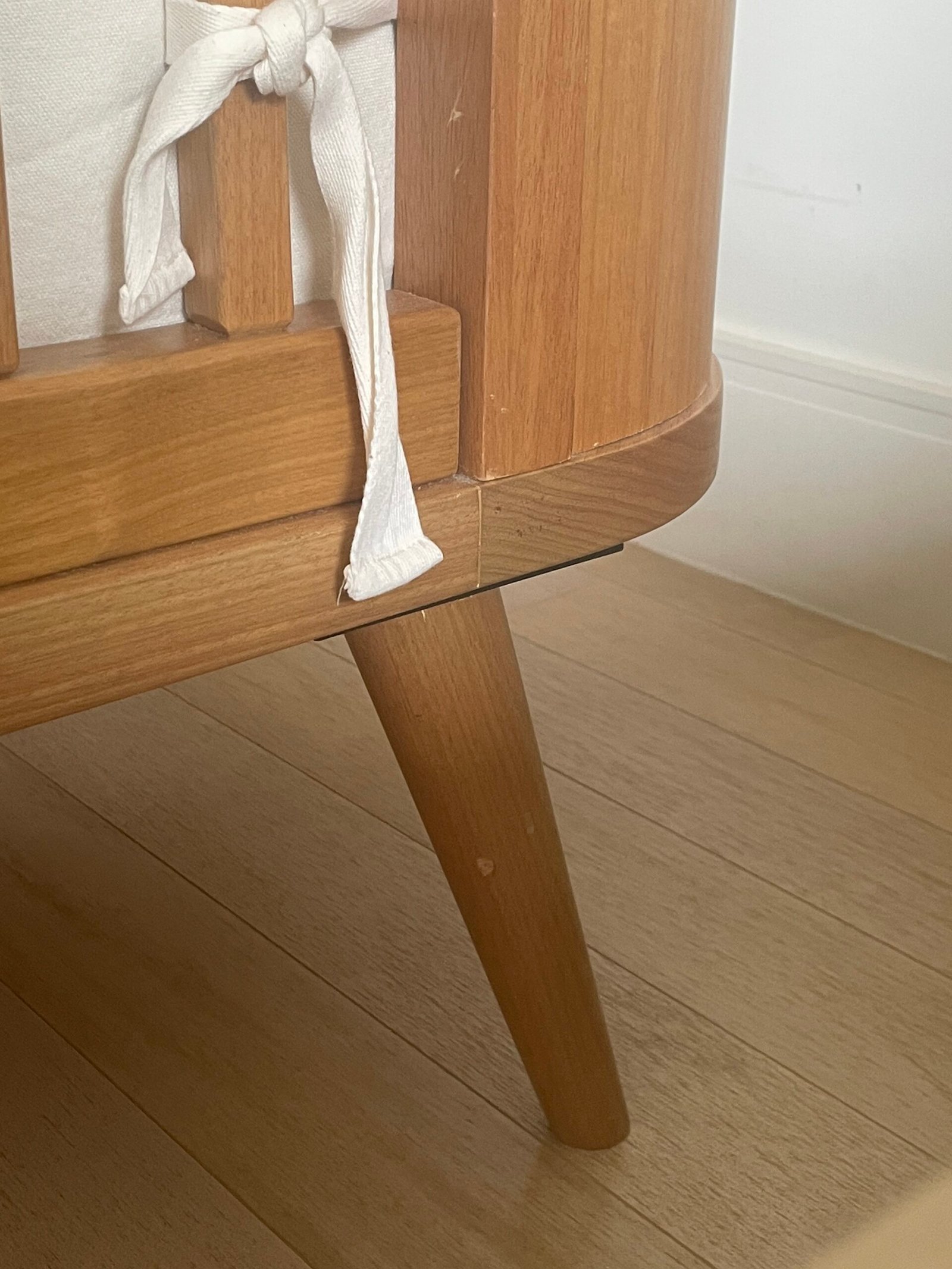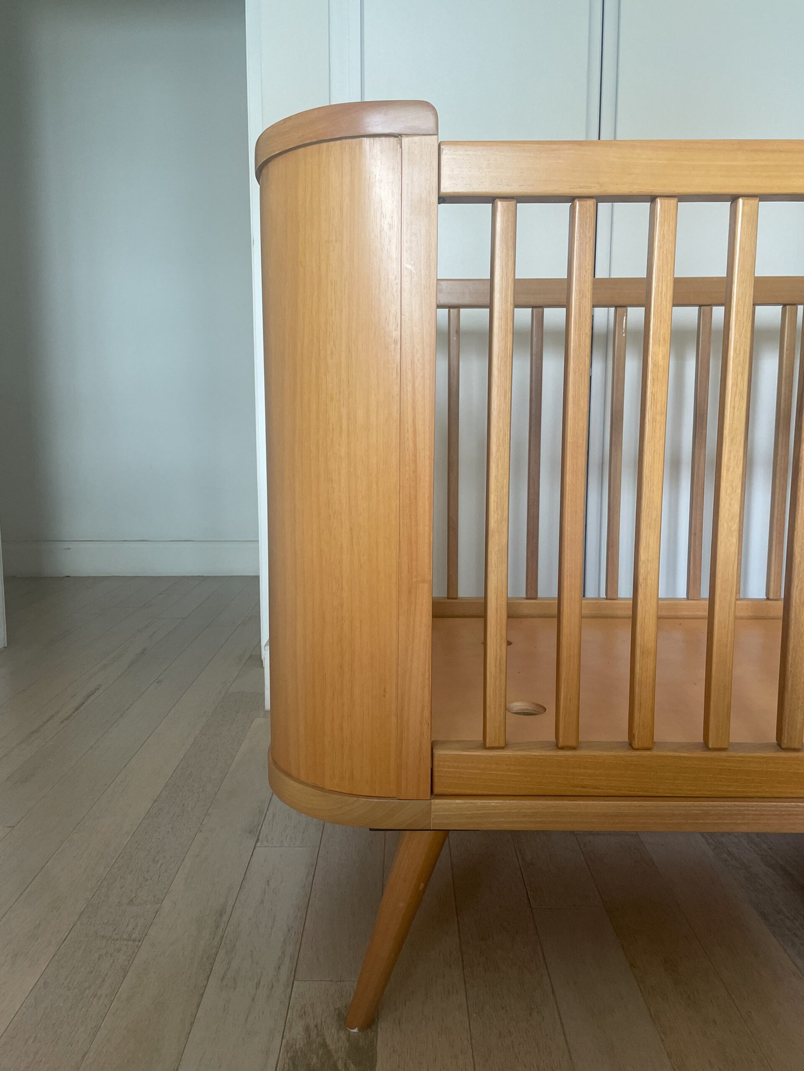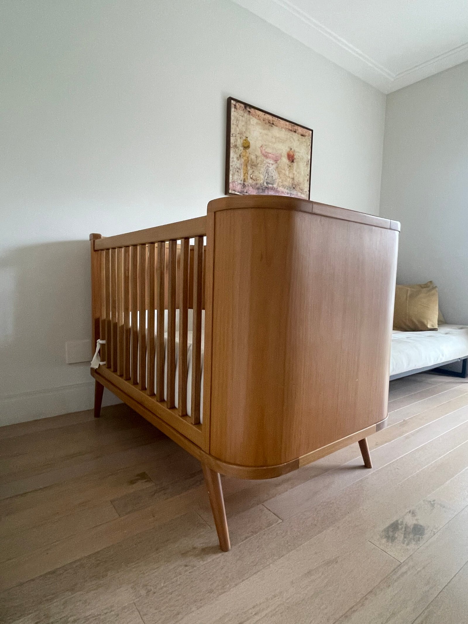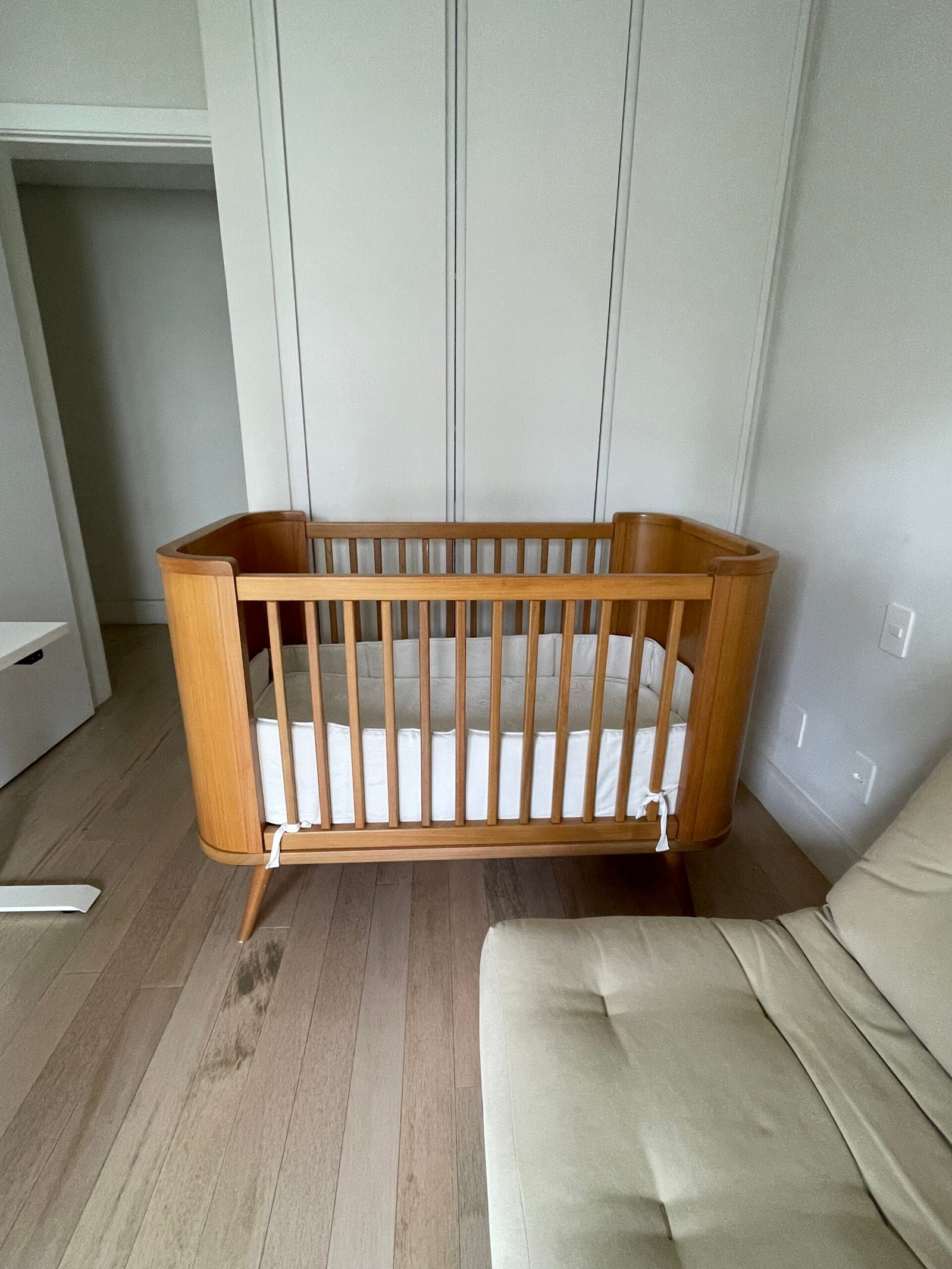Cód: neracsp01 DESCRIÇÃO: Berço 50’s – Berço – Mini cama 3 alturas internas do colchão Estrutura: madeira maciça jequitibá Cor: manteiga