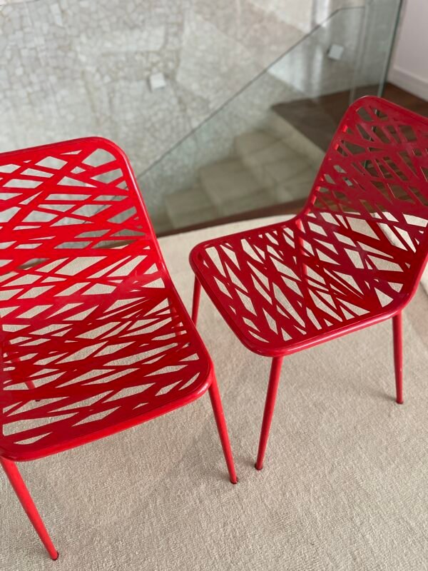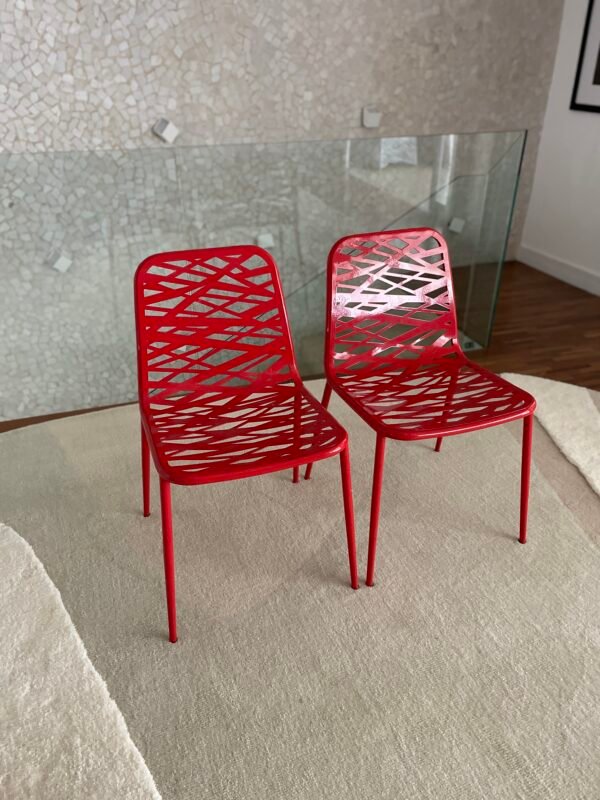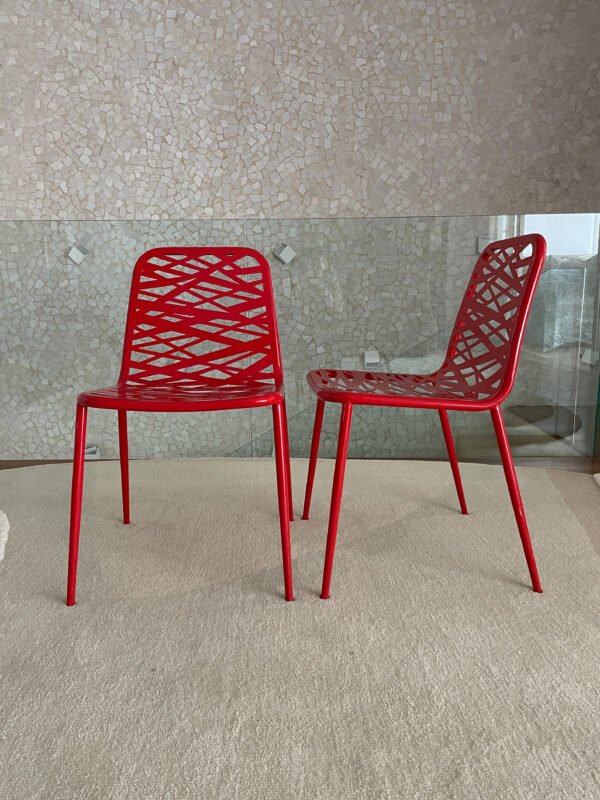 Cód: zaconsasp07 DESCRIÇÃO: 02 Cadeiras Caos Material: metal cortado a laser Cor: vermelho