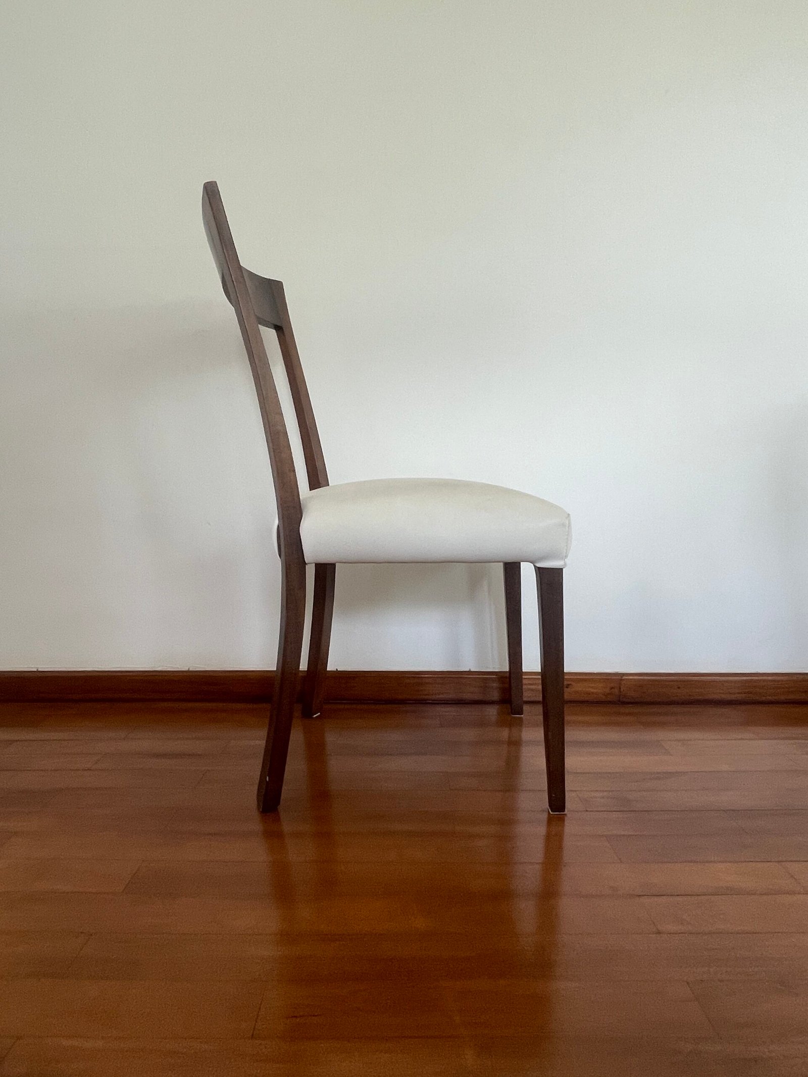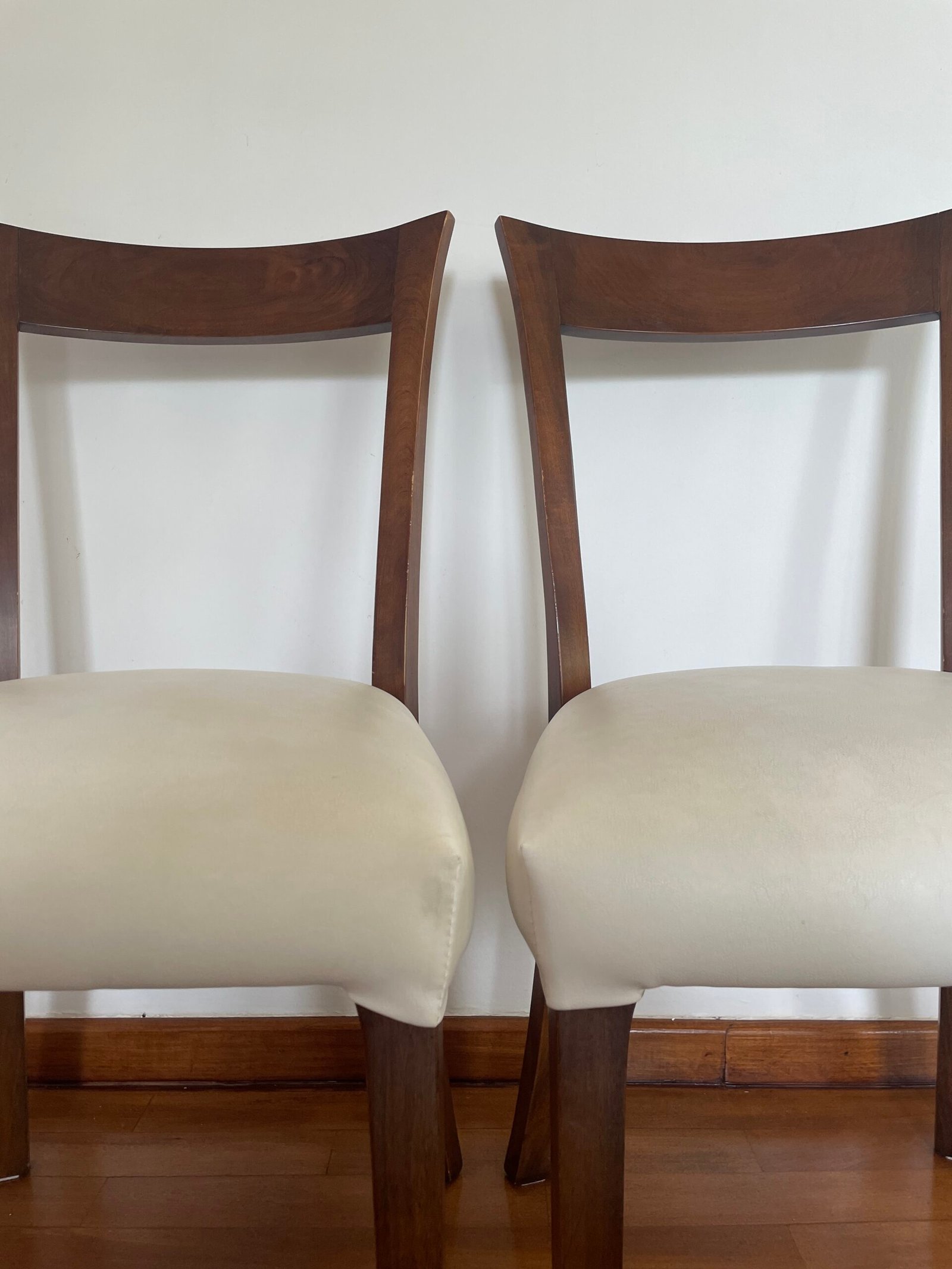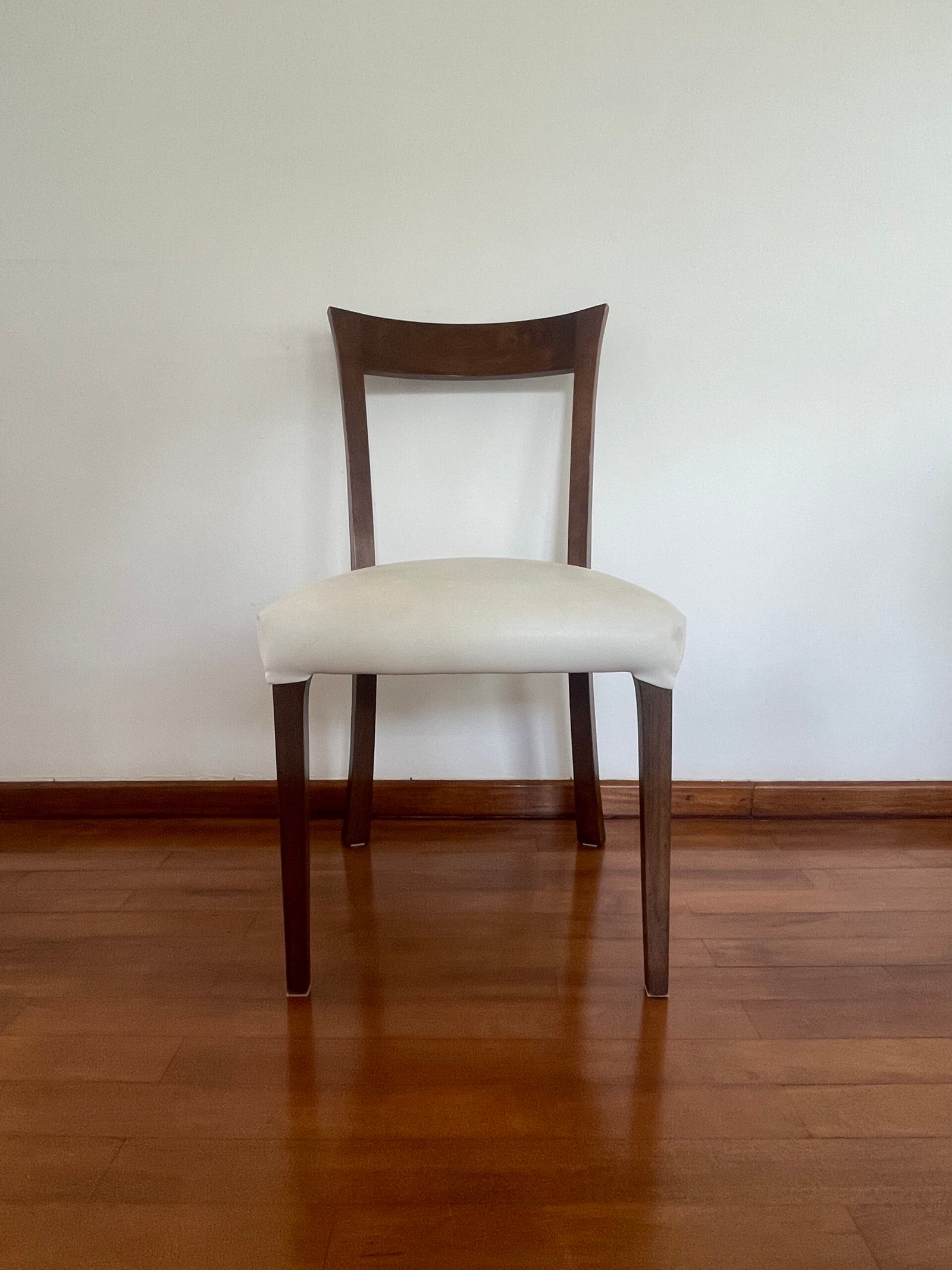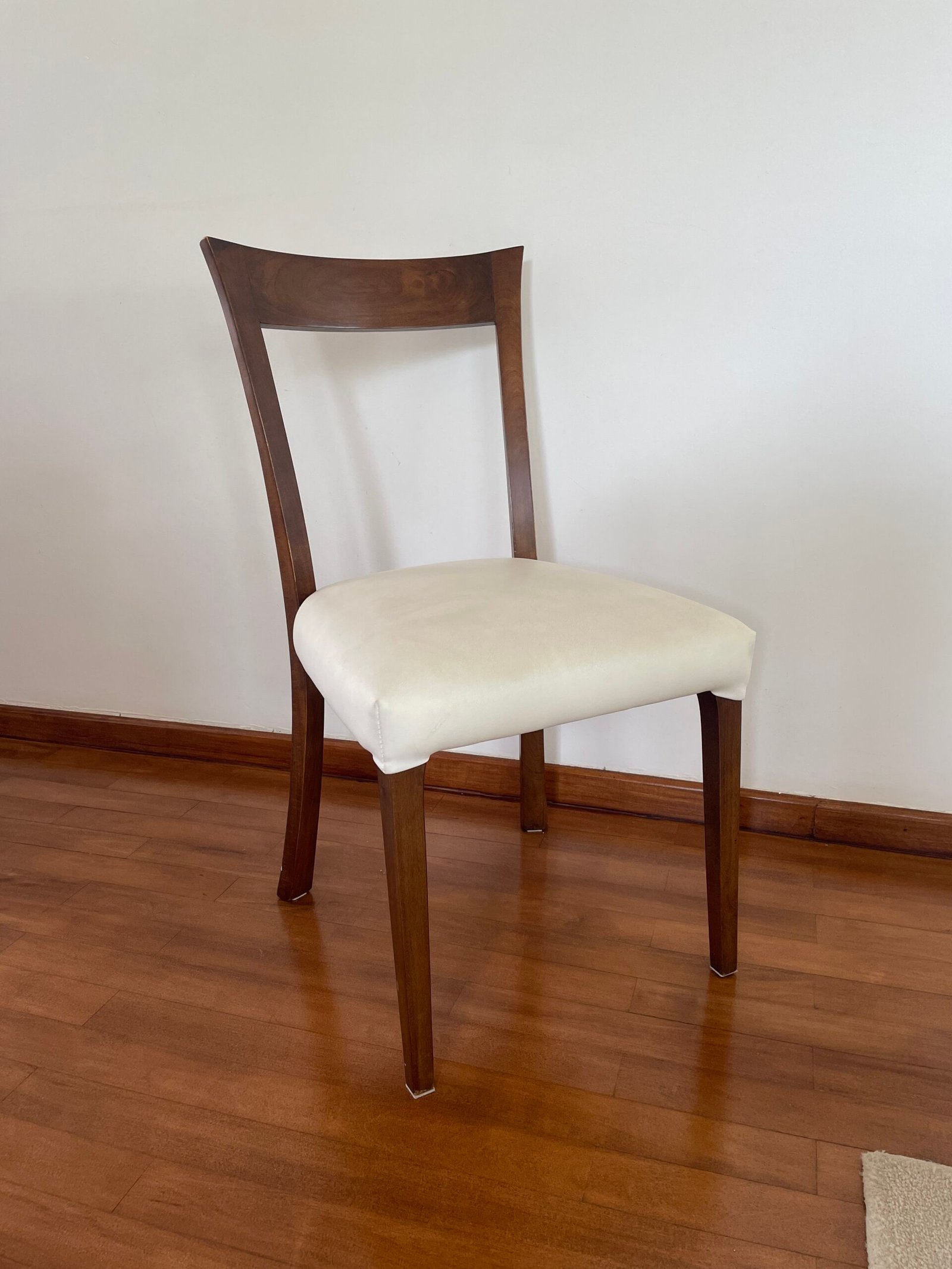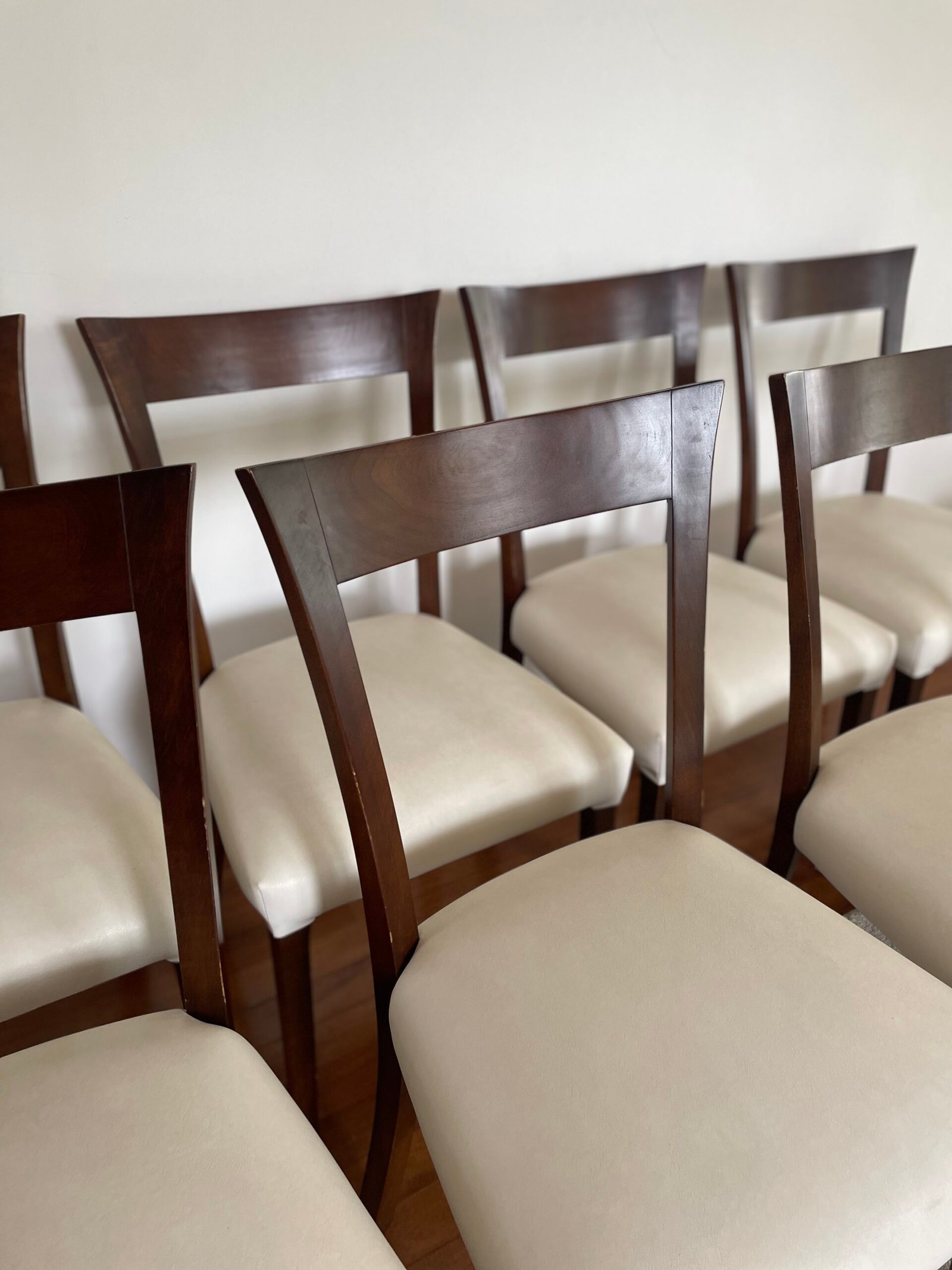 Cód: lhanonesp02 DESCRIÇÃO: 08 Cadeiras Designer: Francisco Calio Estrutura: madeira Tecido: couro sintético Cor: off white
