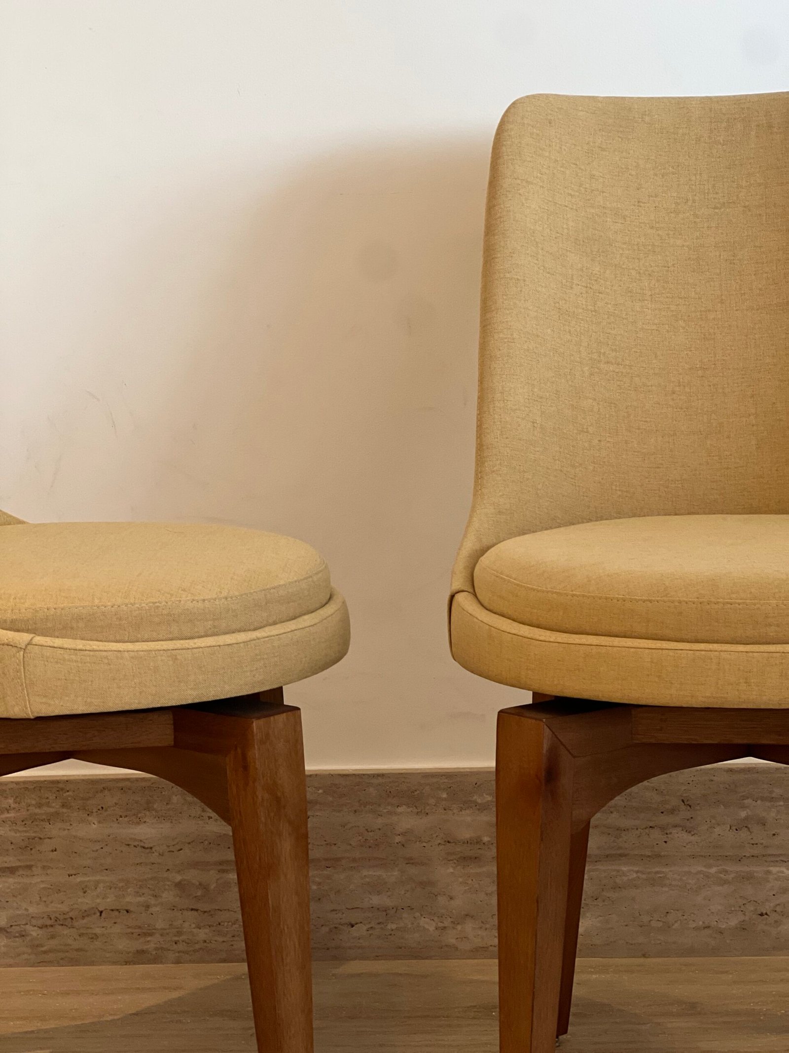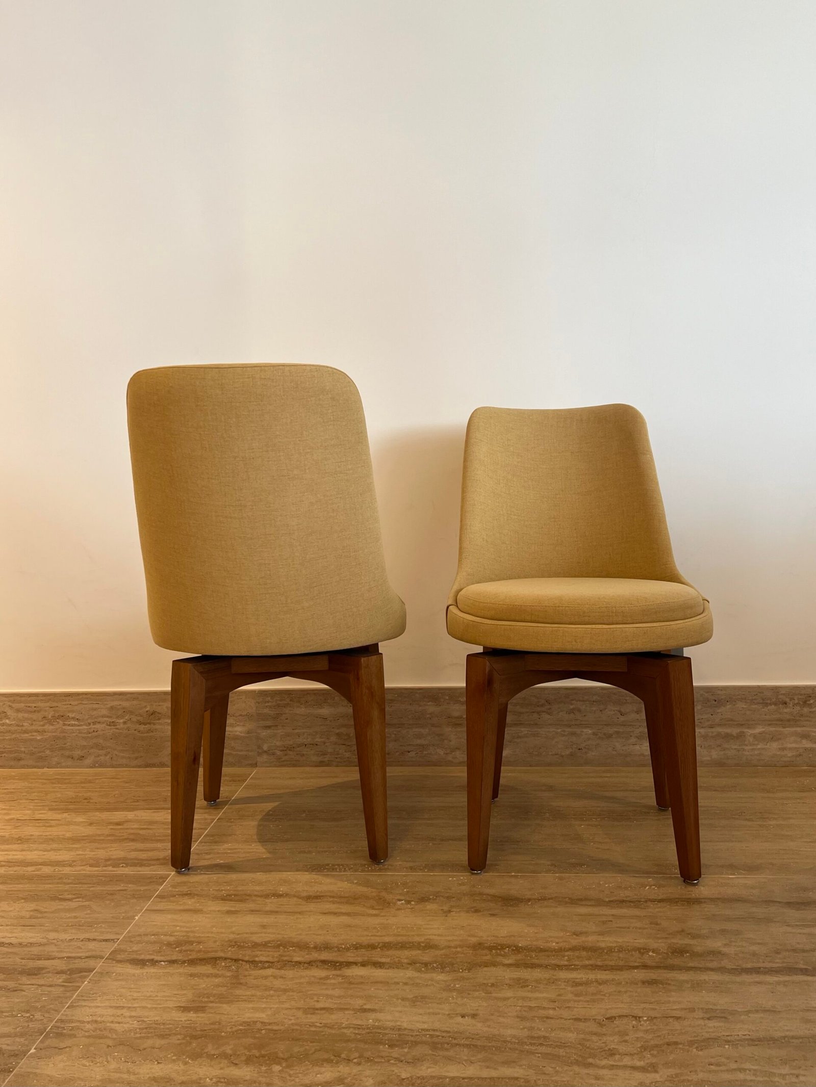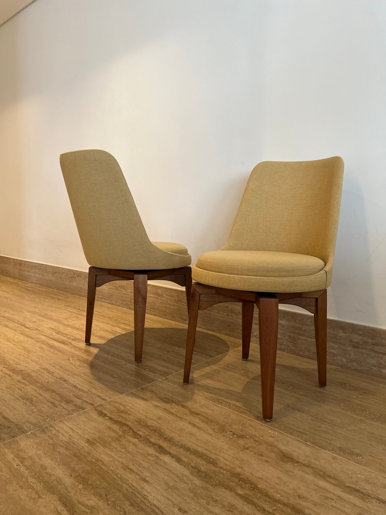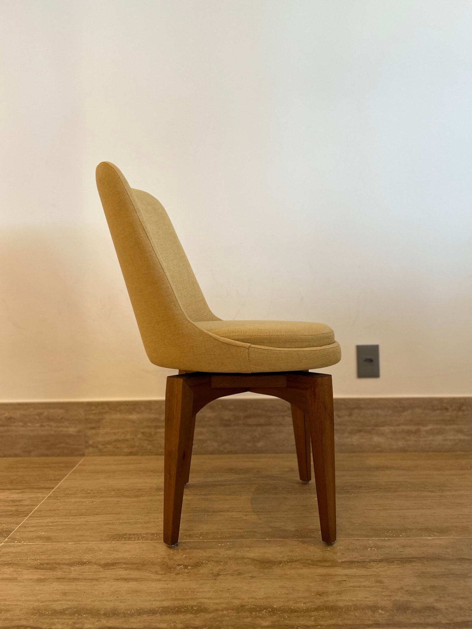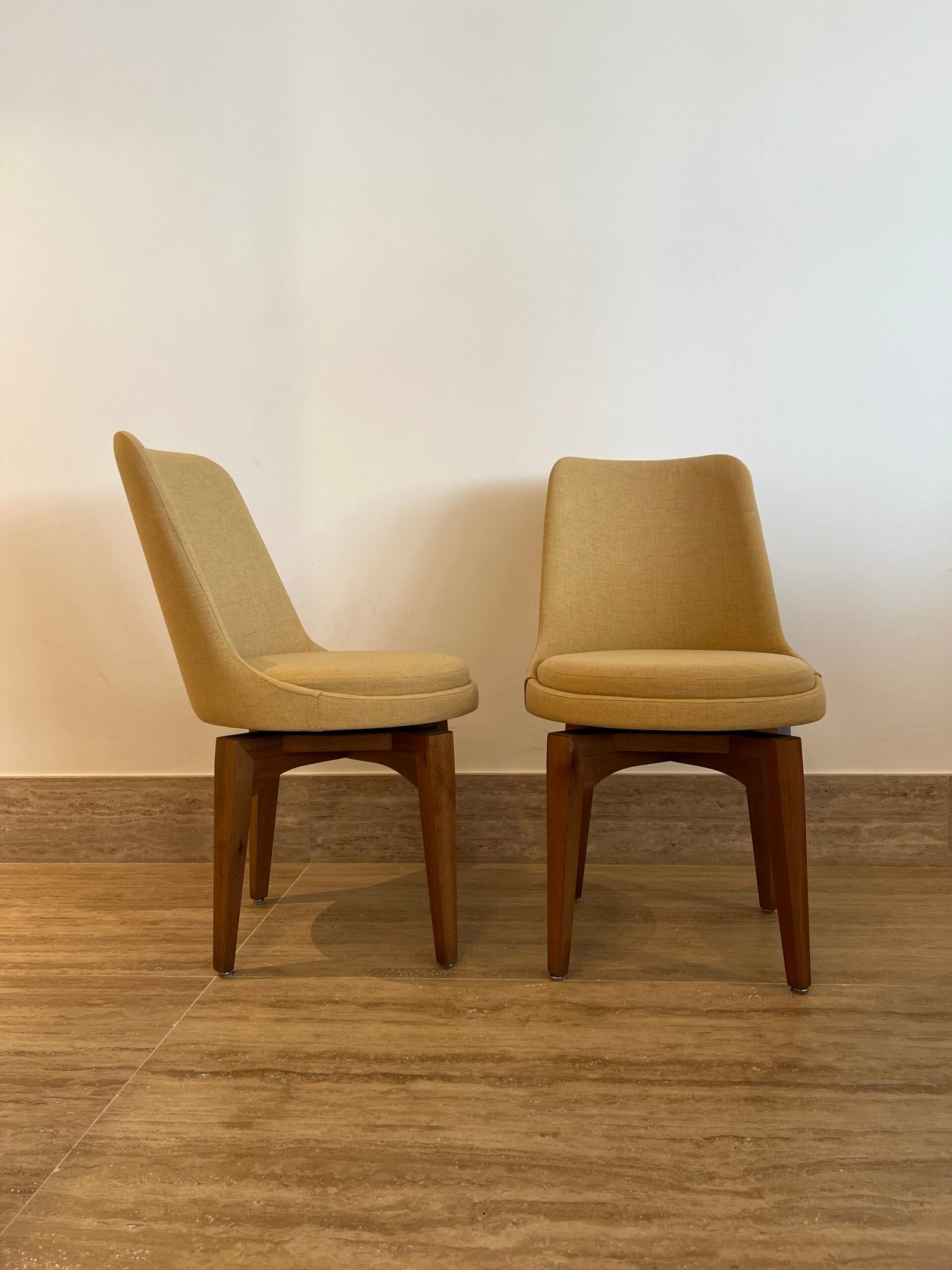 Cód: paixsp07 DESCRIÇÃO: 08 Cadeiras Viv Giratórias Pés em madeira Tecido: linho Cor: mostarda