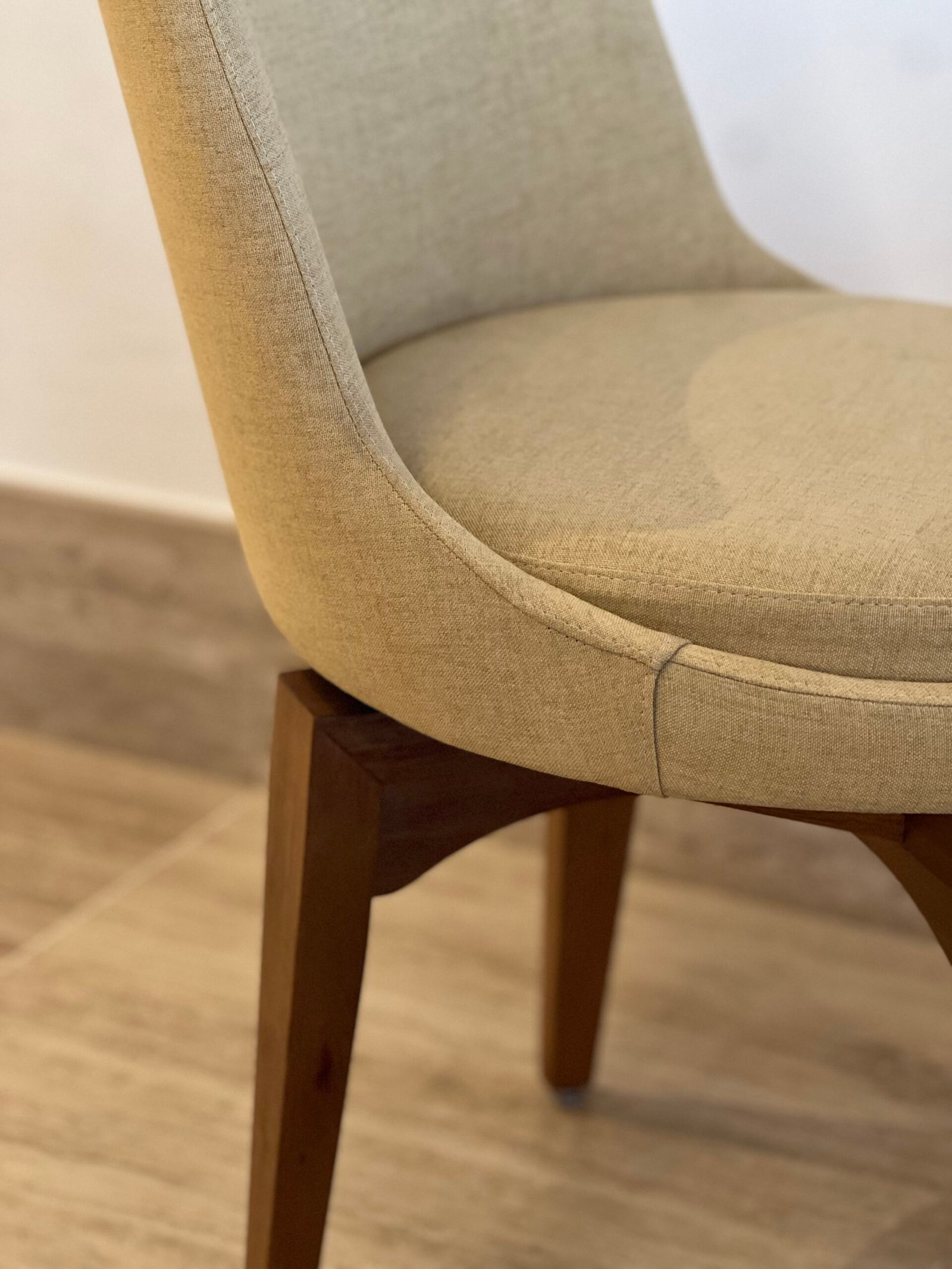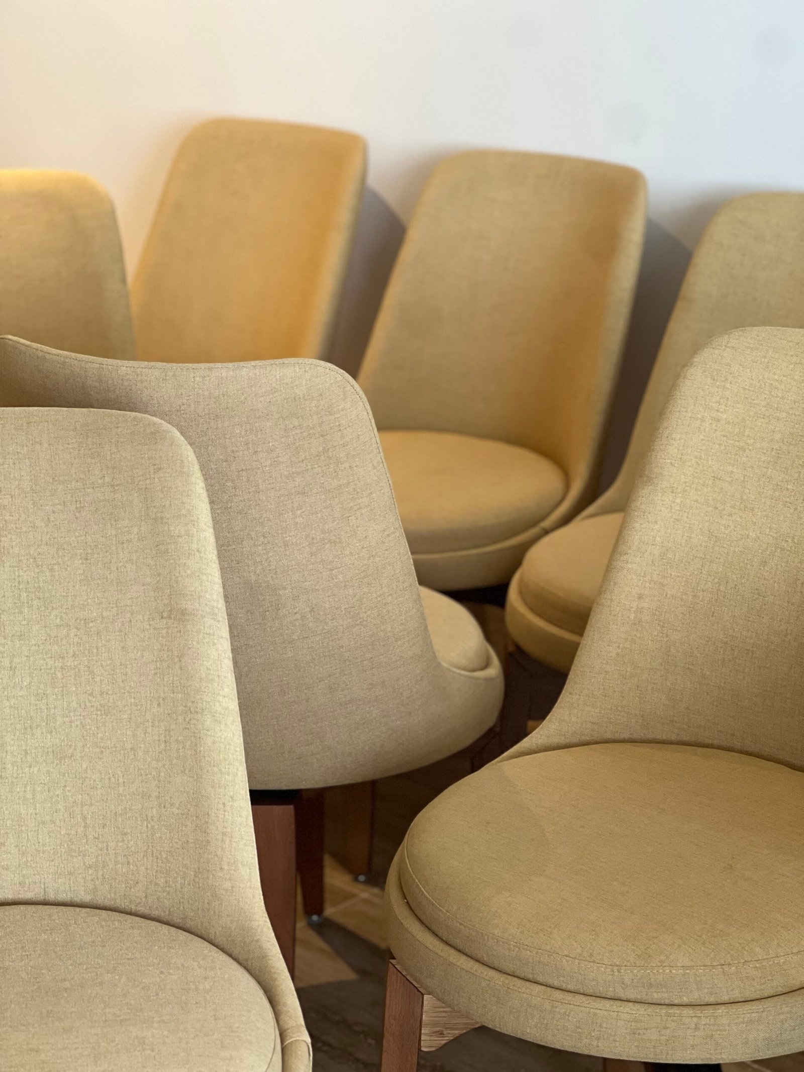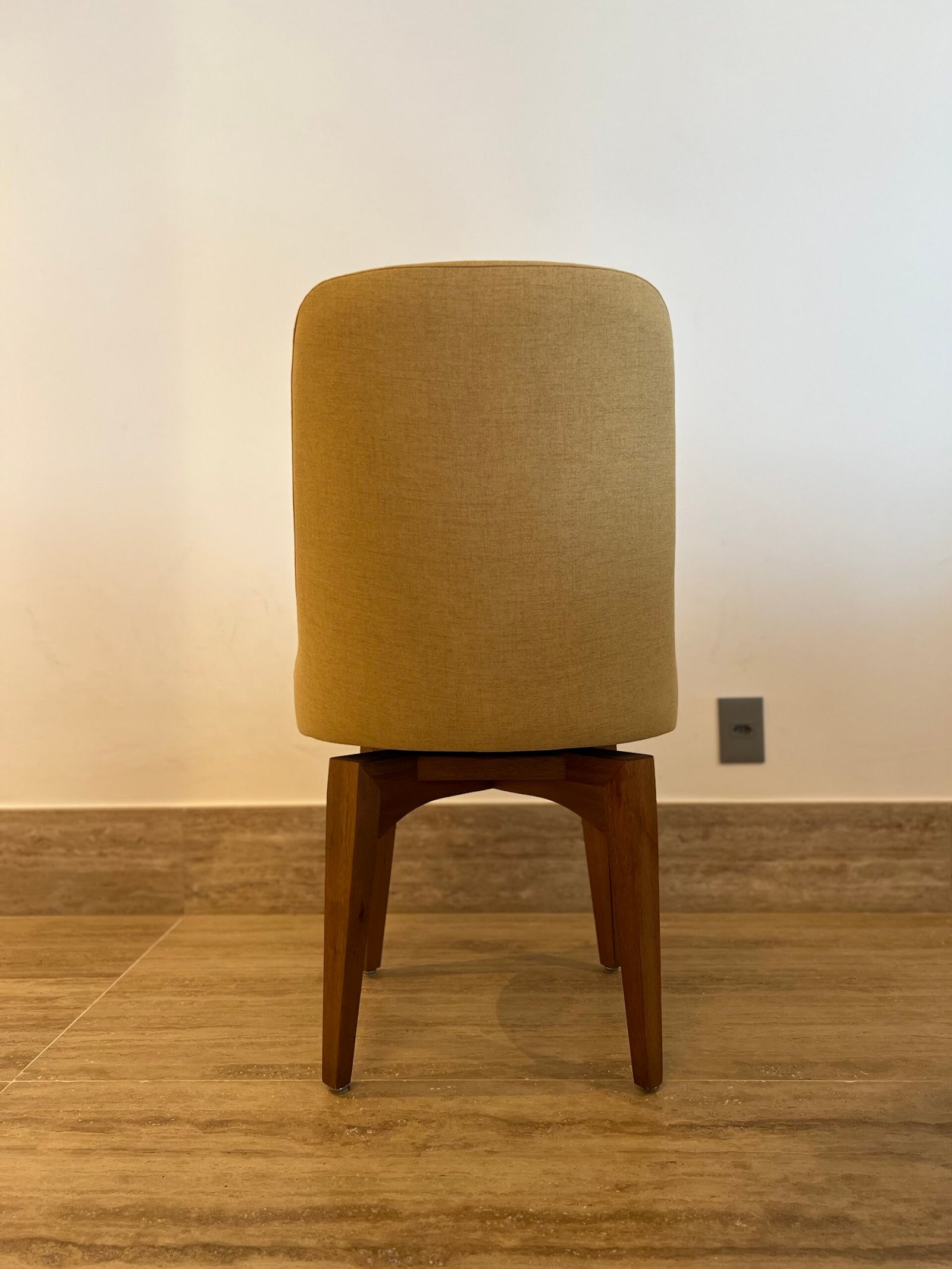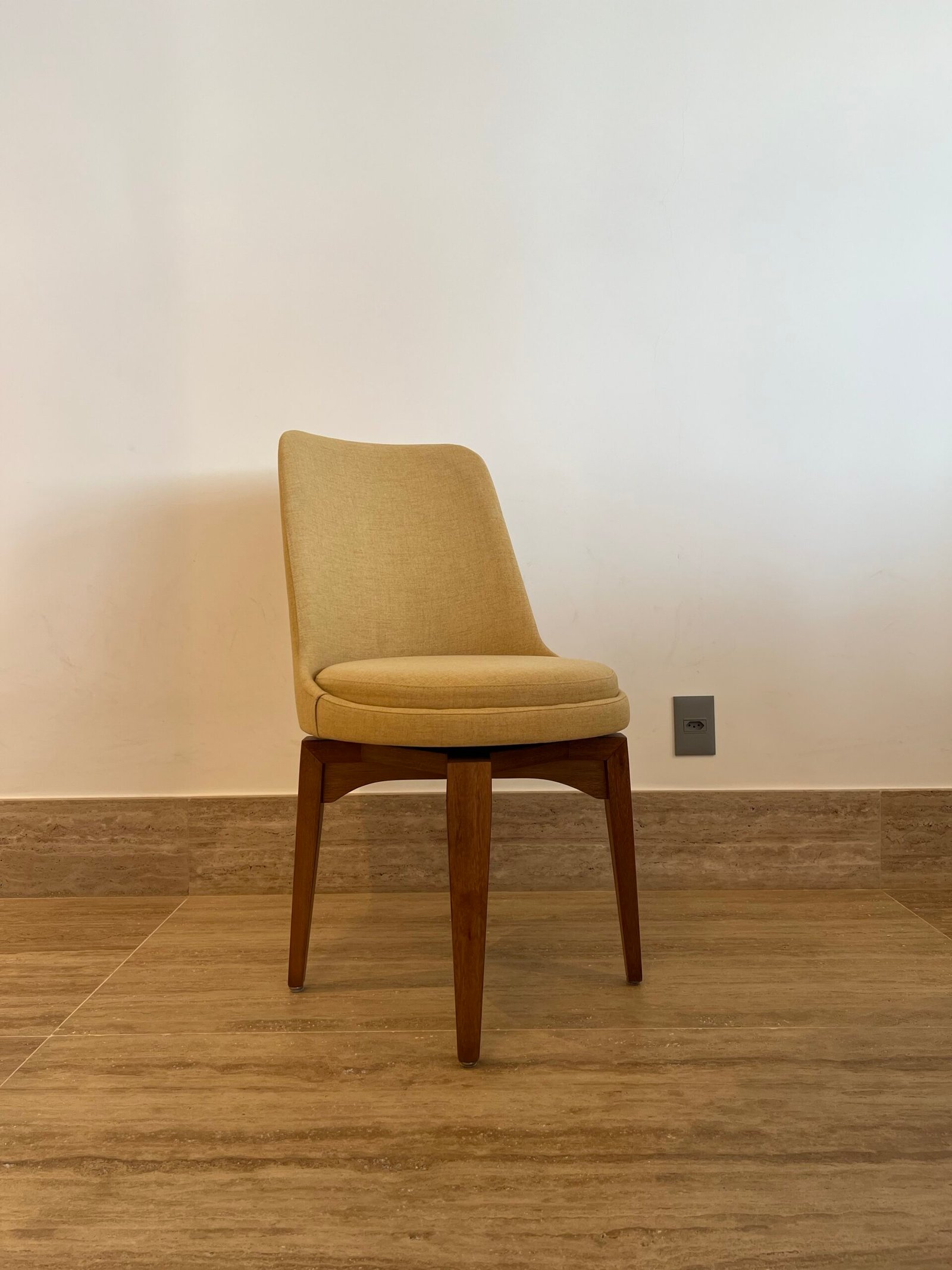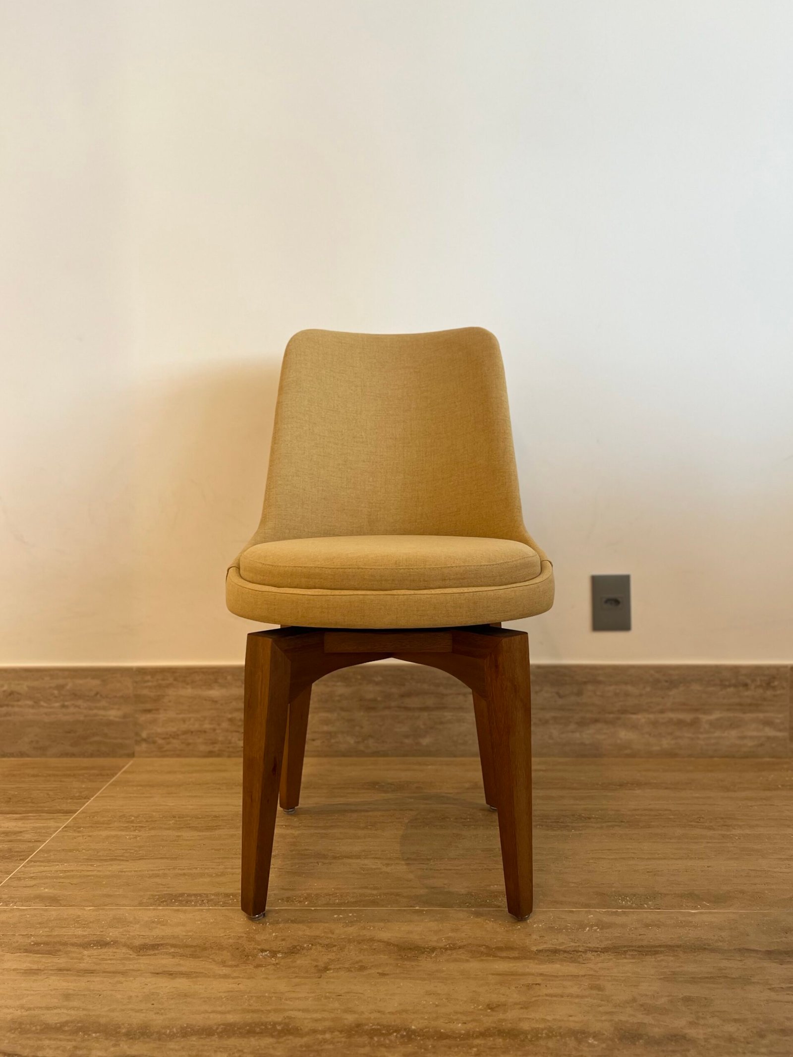 Cód: paixsp07 DESCRIÇÃO: 08 Cadeiras Viv Giratórias Pés em madeira Tecido: linho Cor: mostarda