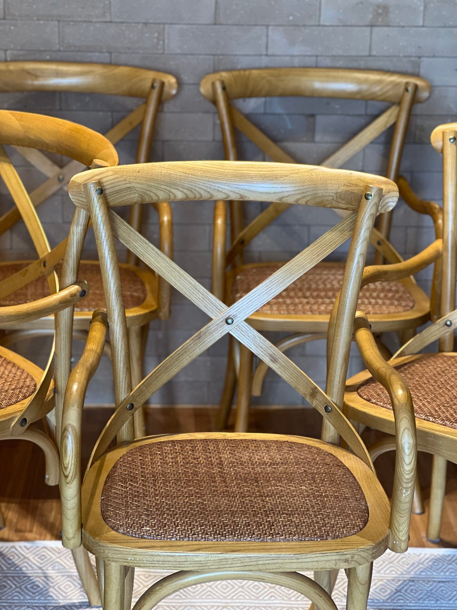 Cód: staresp01 DESCRIÇÃO: 05 Cadeiras Paris Assento em rattan Estrutura: madeira carvalho Procedência: Maria Pia Casa