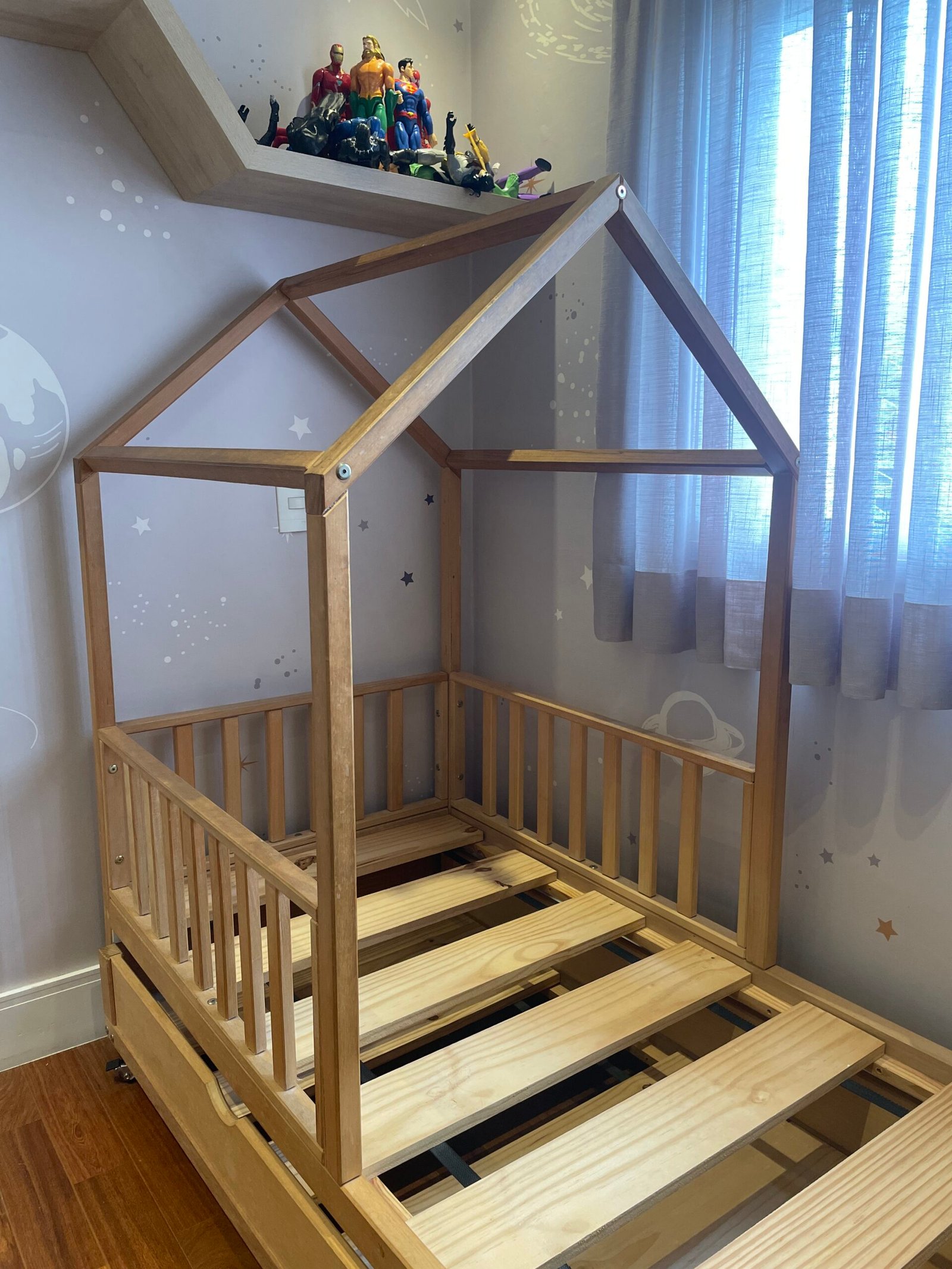 – Cama: 0.85 x 1.95 x 0.30 alt. barra x 0.65 alt. grade x 1.55 alt. total