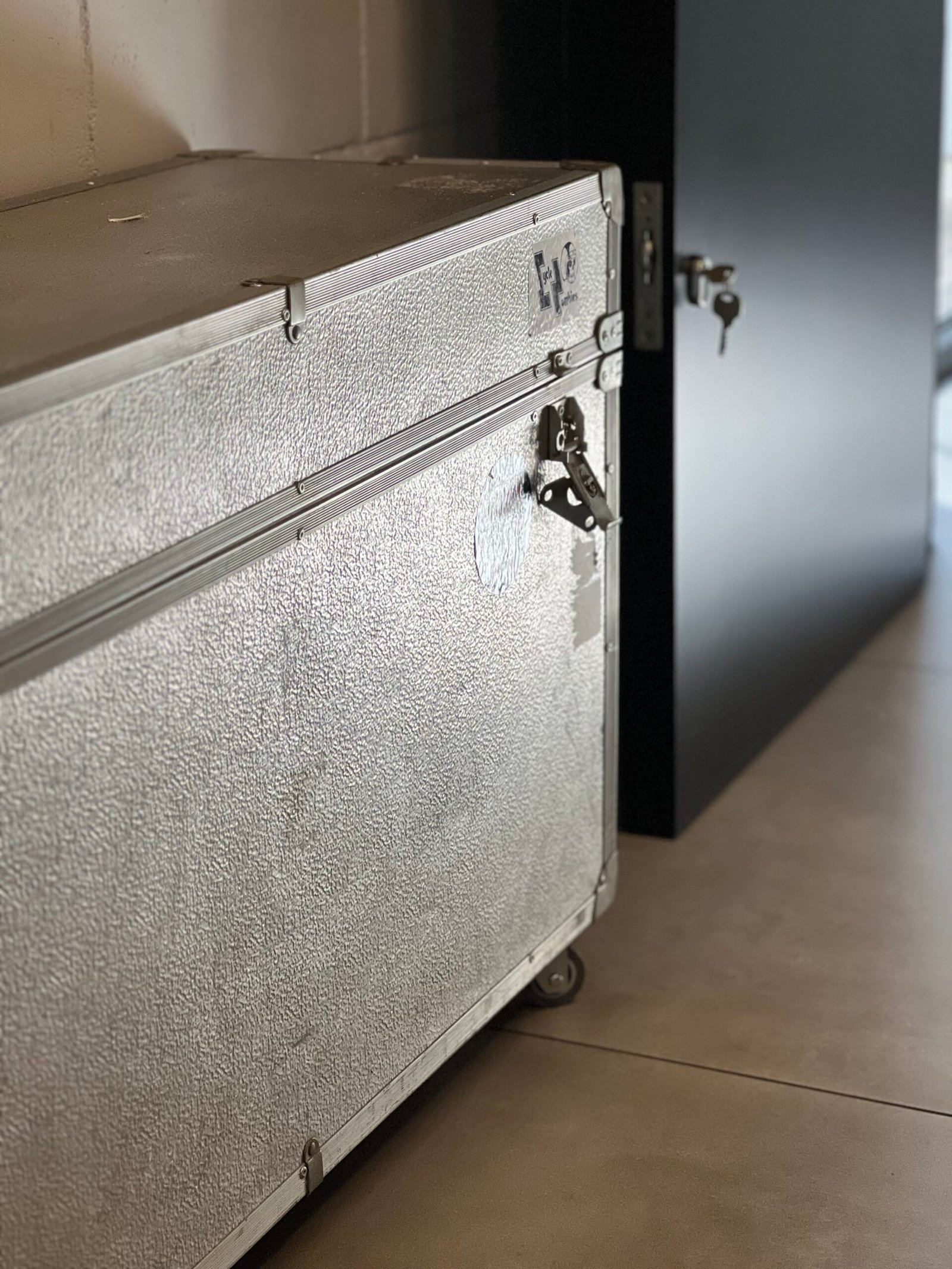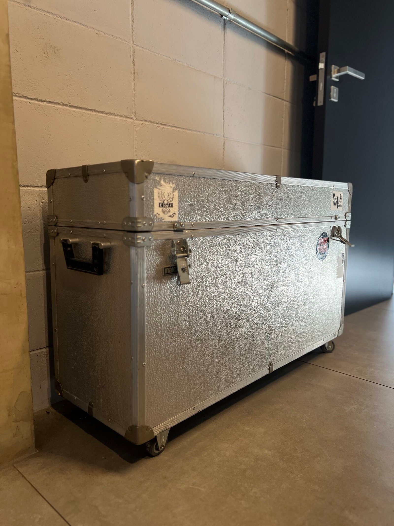 Cód: forniasp10 DESCRIÇÃO: Case Transporte Pés em rodízio Material: compensado Acabamento: alumínio stucco Cor: prata