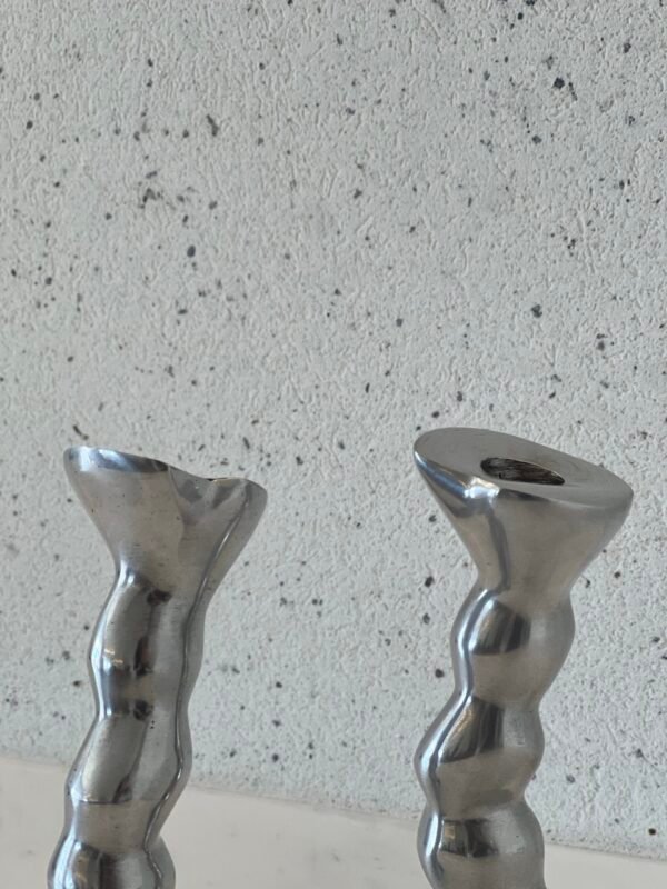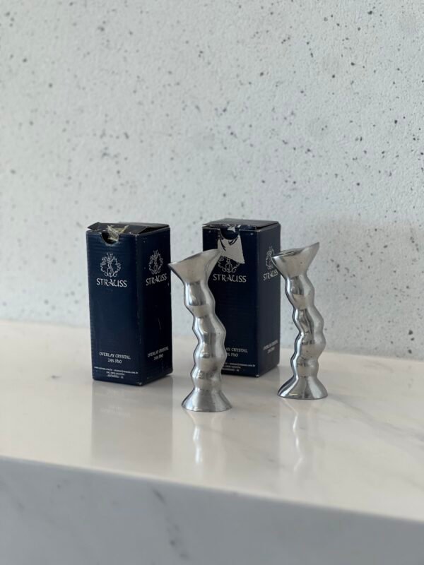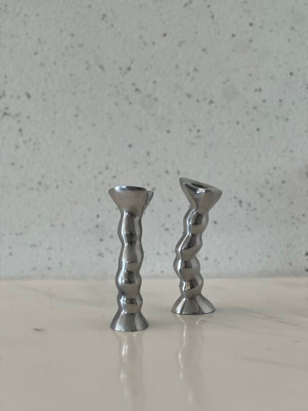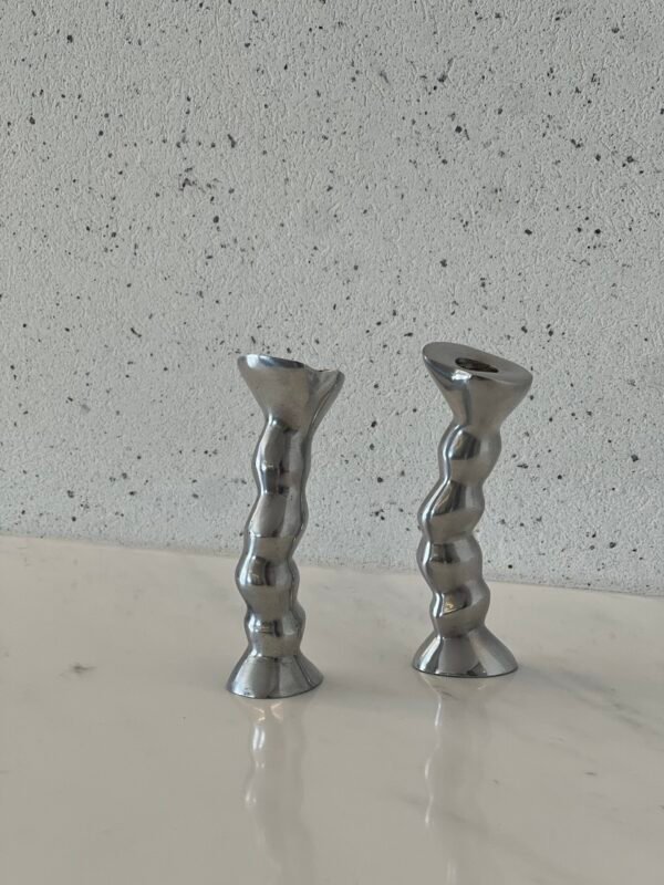 Cód: emezesp31 DESCRIÇÃO: 02 Castiçais Licor Lap Designer Sara Rosenberg Anete Ring Na caixa Material: alumínio