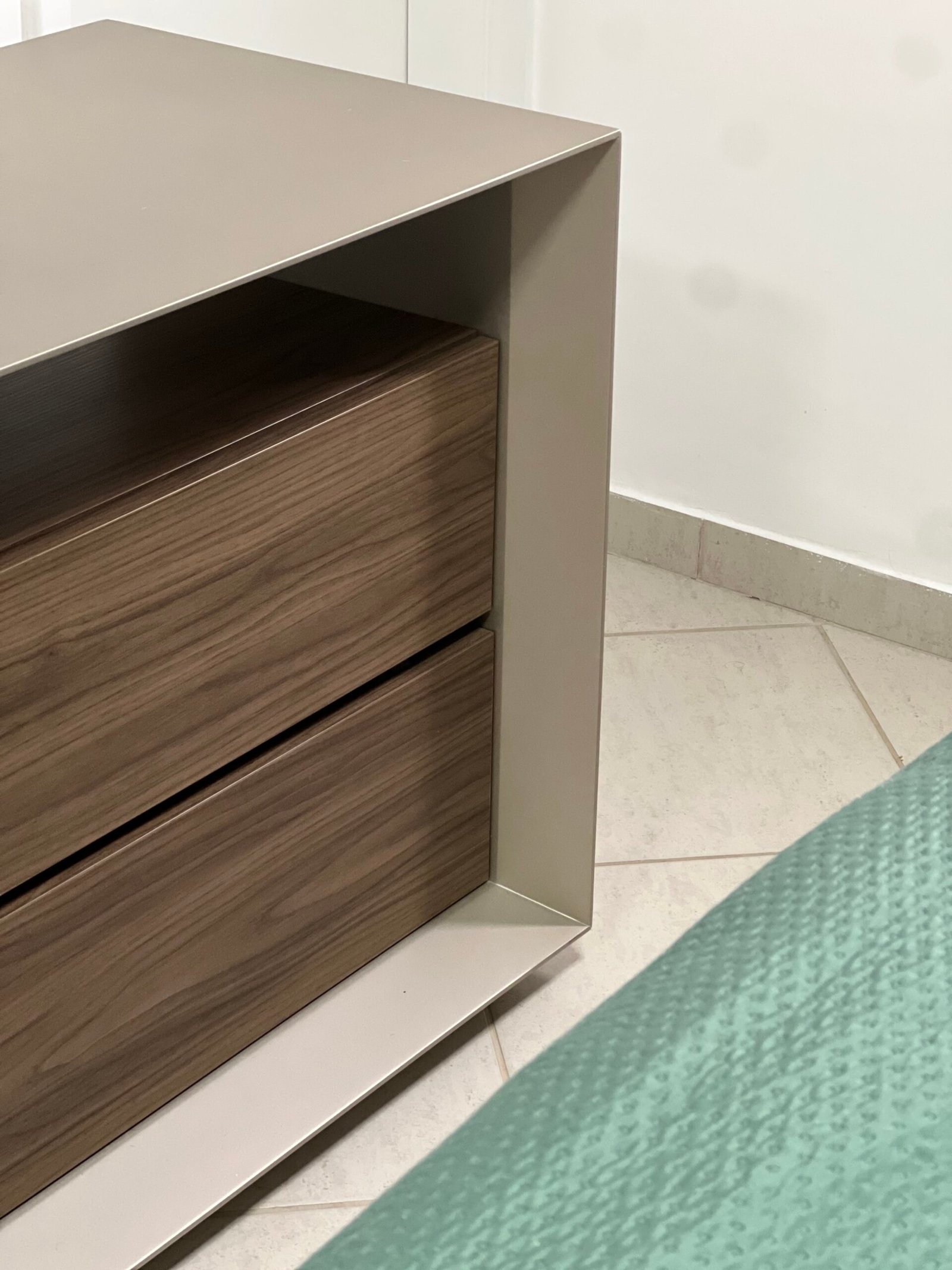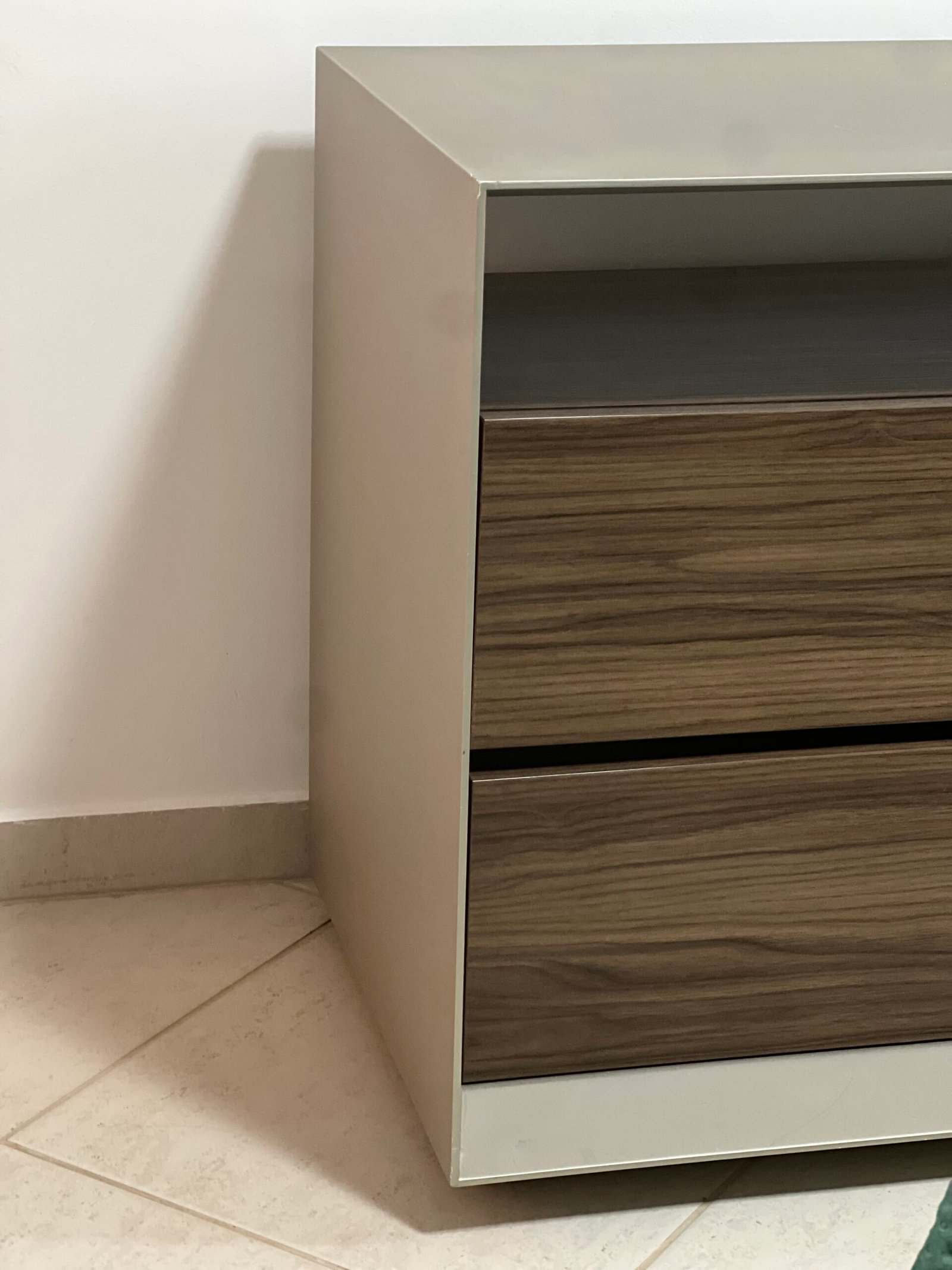 Cód: oazerj06 DESCRIÇÃO: Cômoda Cut 01 nicho 04 gaveta Acabamento: laca Cor: metalizado