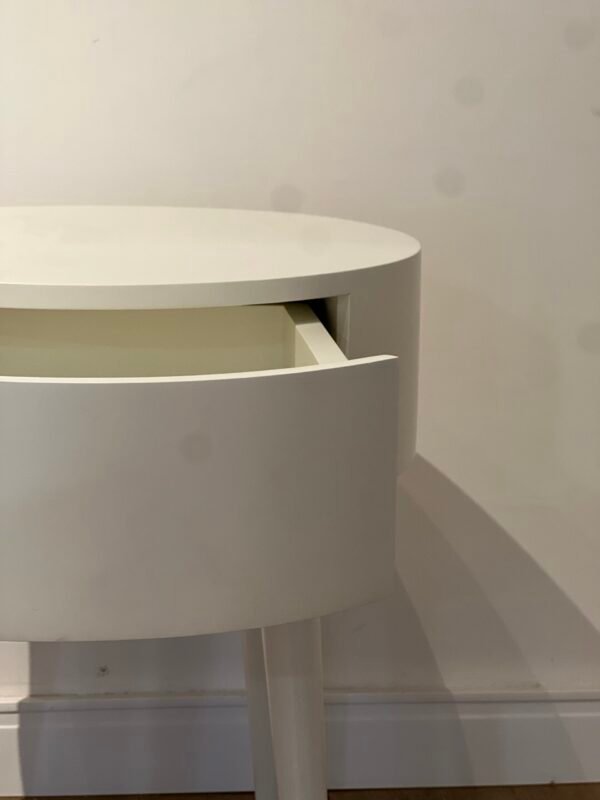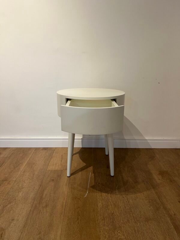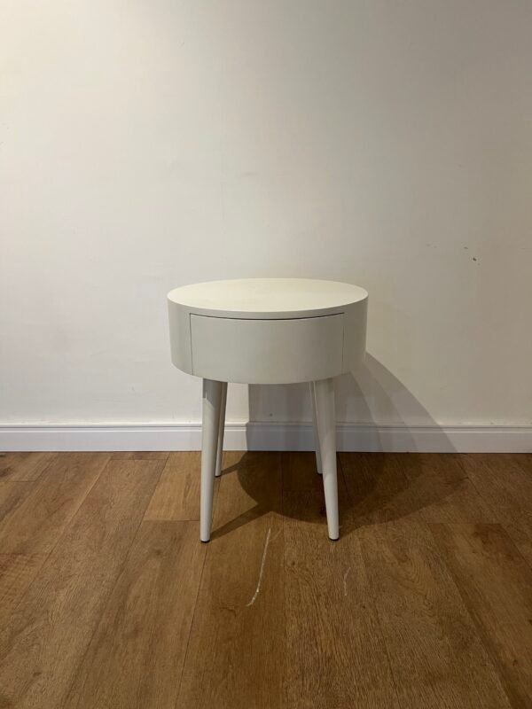 Cód: spacosp99 DESCRIÇÃO: Mesa de cabeceira Clau 01 gaveta Estrutura: madeira revestida em laca Cor: off white