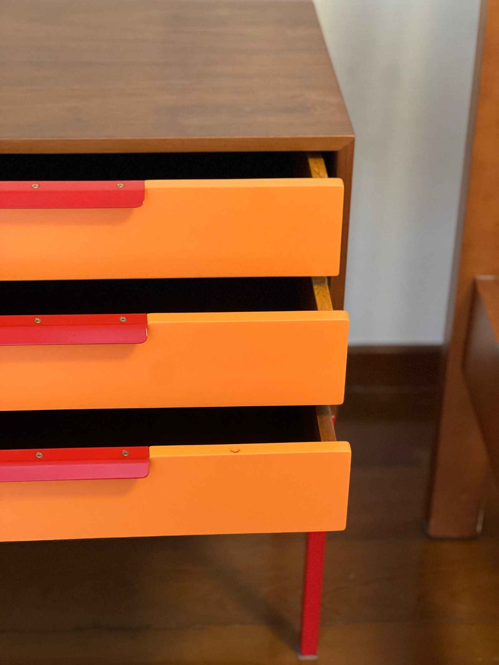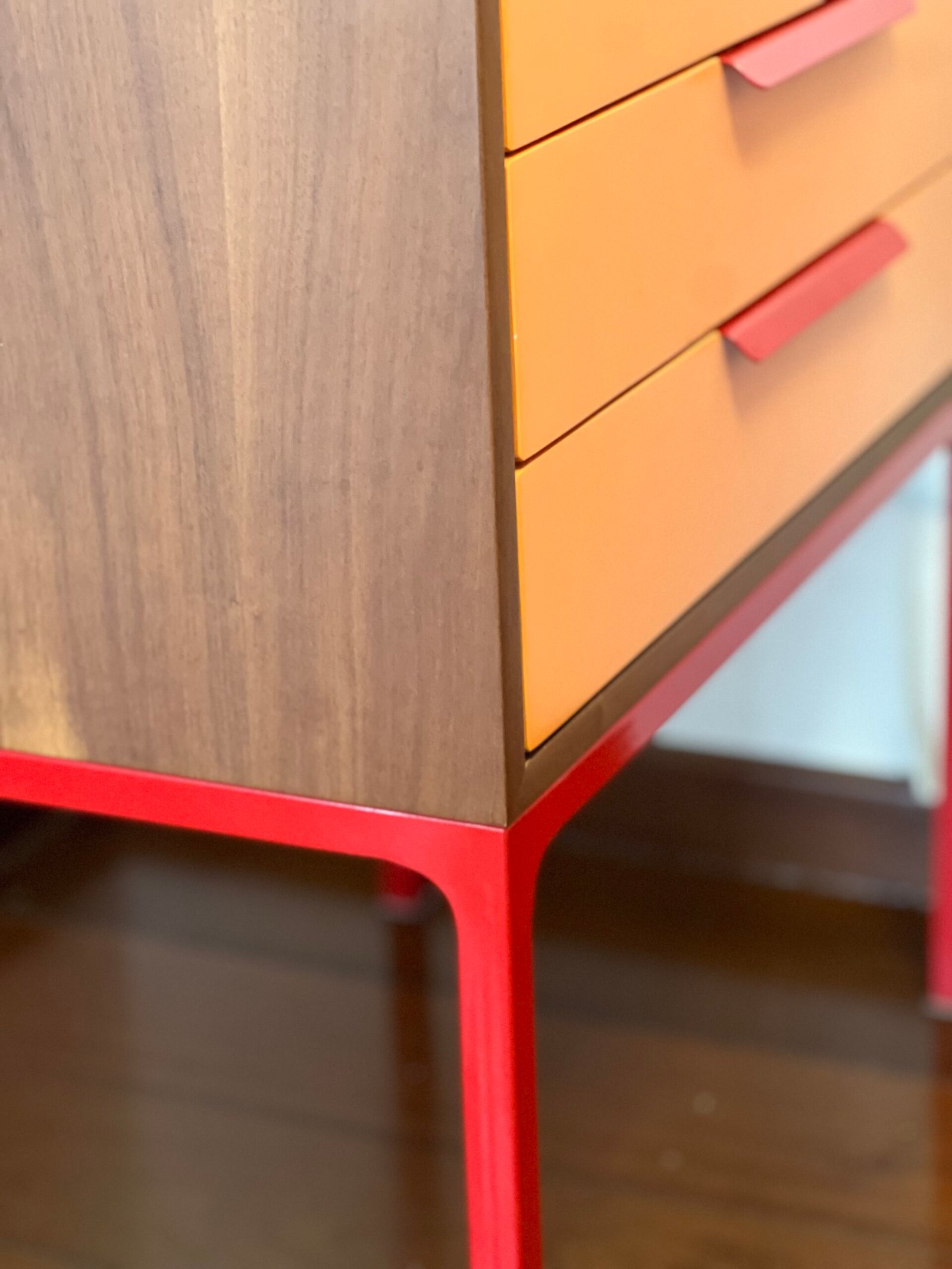 Pés em aço carbono com pintura eletrostática vermelha