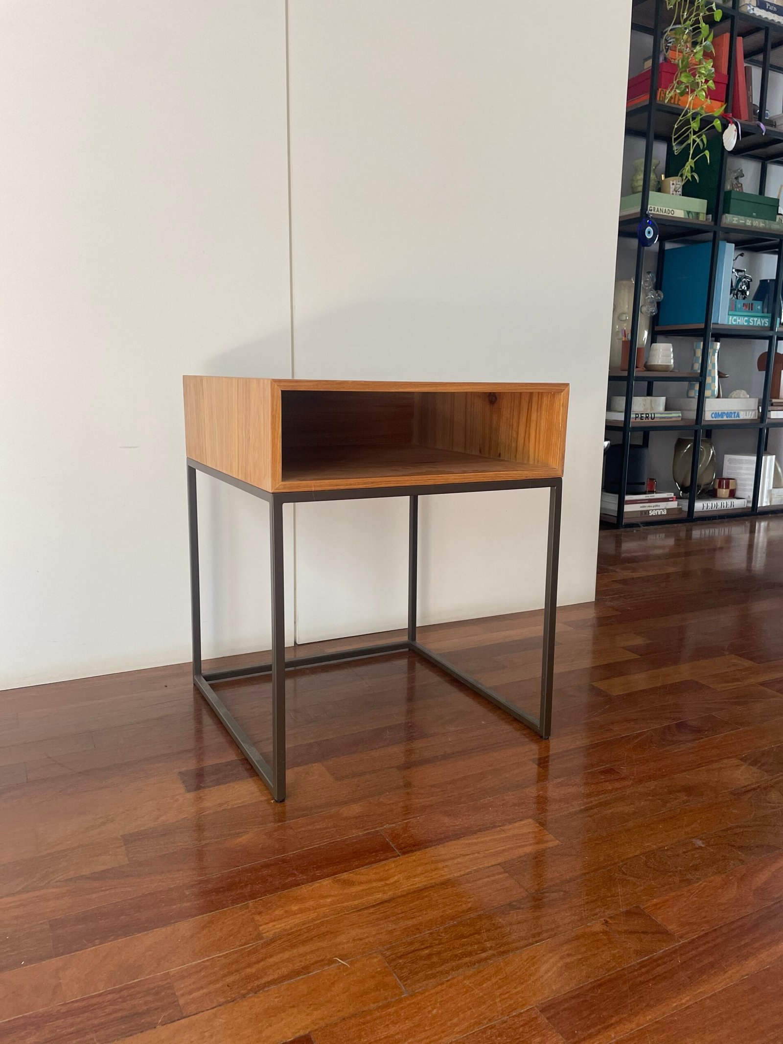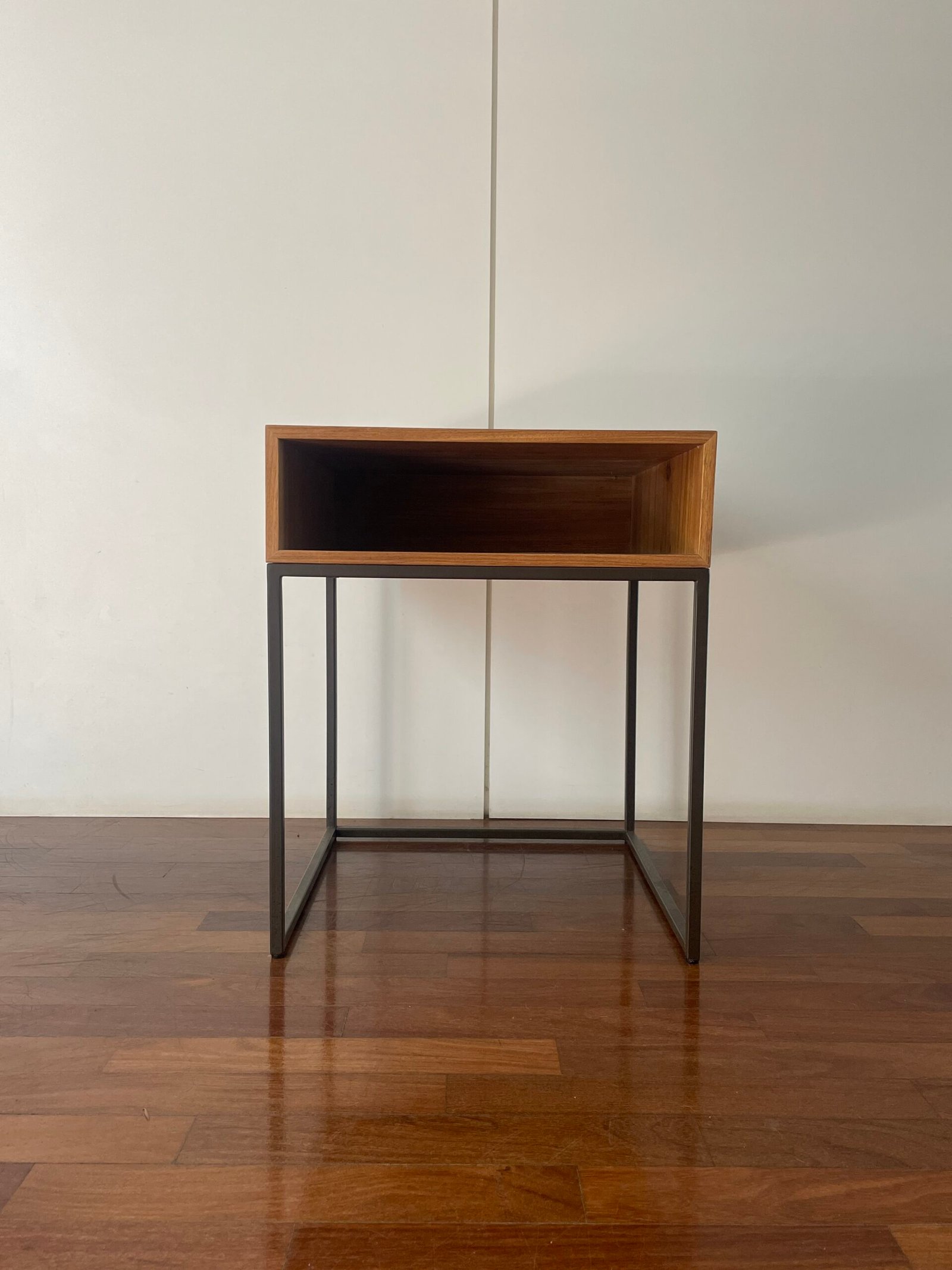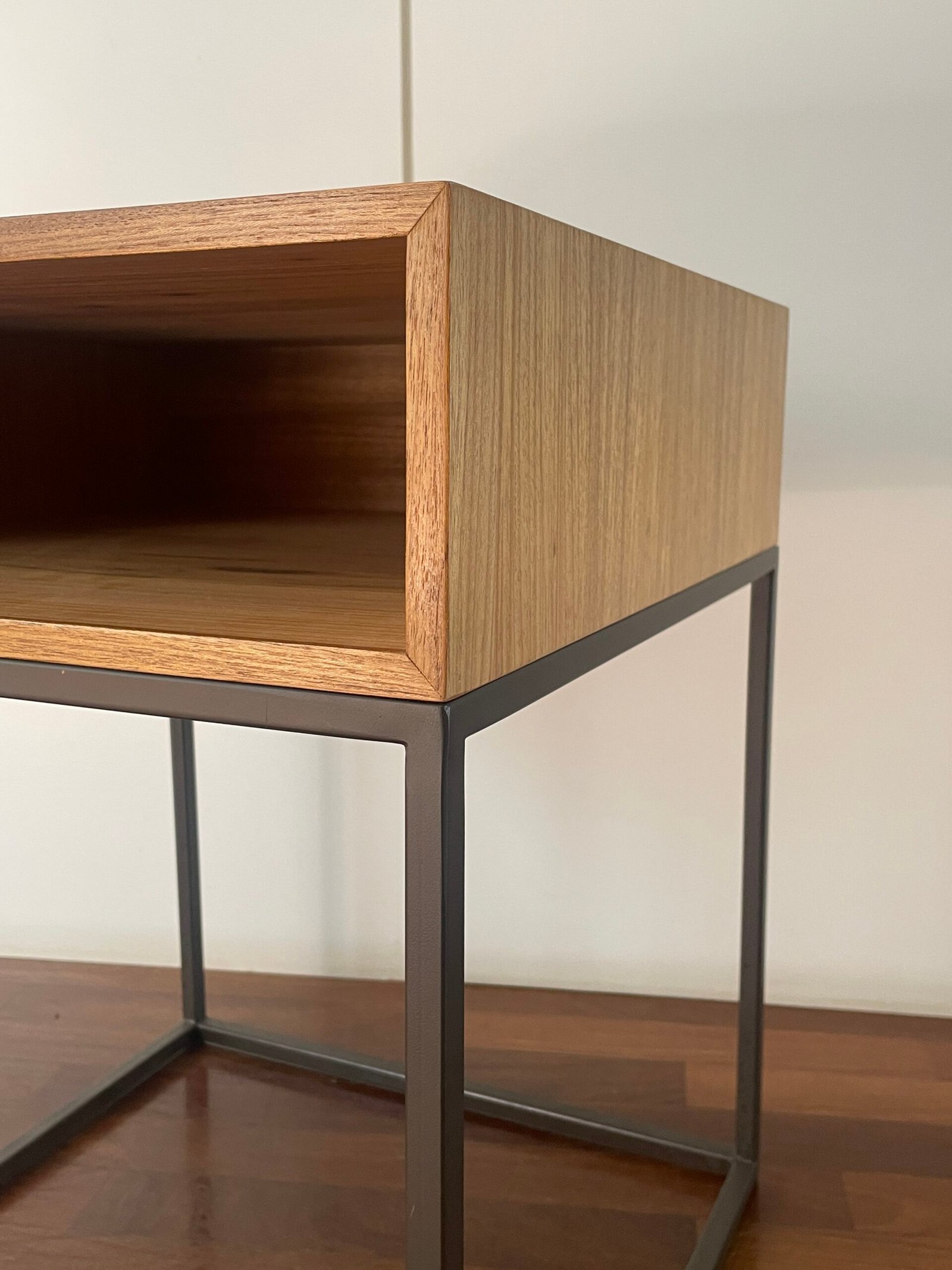 Cód: vilasasp13 DESCRIÇÃO: Mesa de cabeceira Mondesir Nicho Caixa em madeira Estrutura: aço carbono