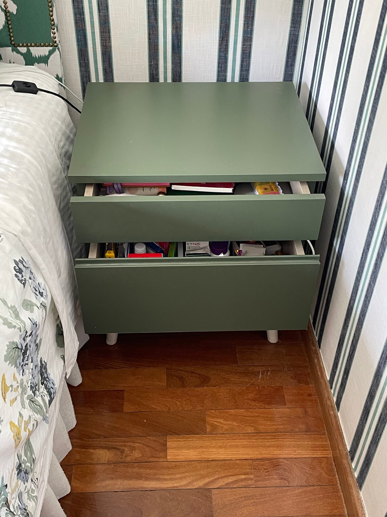 Cód: vilasasp08 DESCRIÇÃO: 02 Mesas de cabeceira Oslo 02 gavetas Estrutura: MDF Cor: verde militar