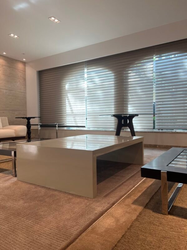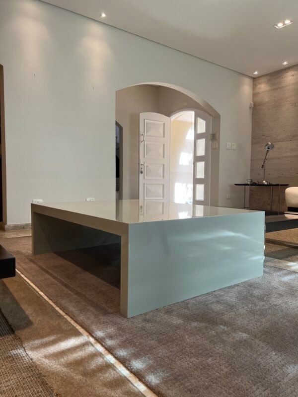 Cód: rathlosp18 DESCRIÇÃO: Mesa de centro retangular Estrutura: MDF Acabamento: laca Cor: cinza claro