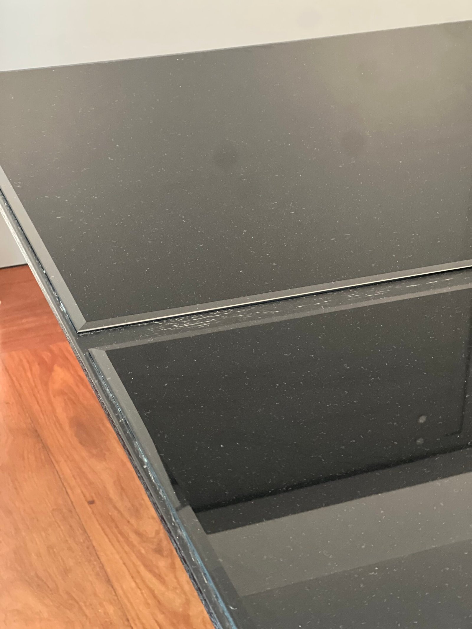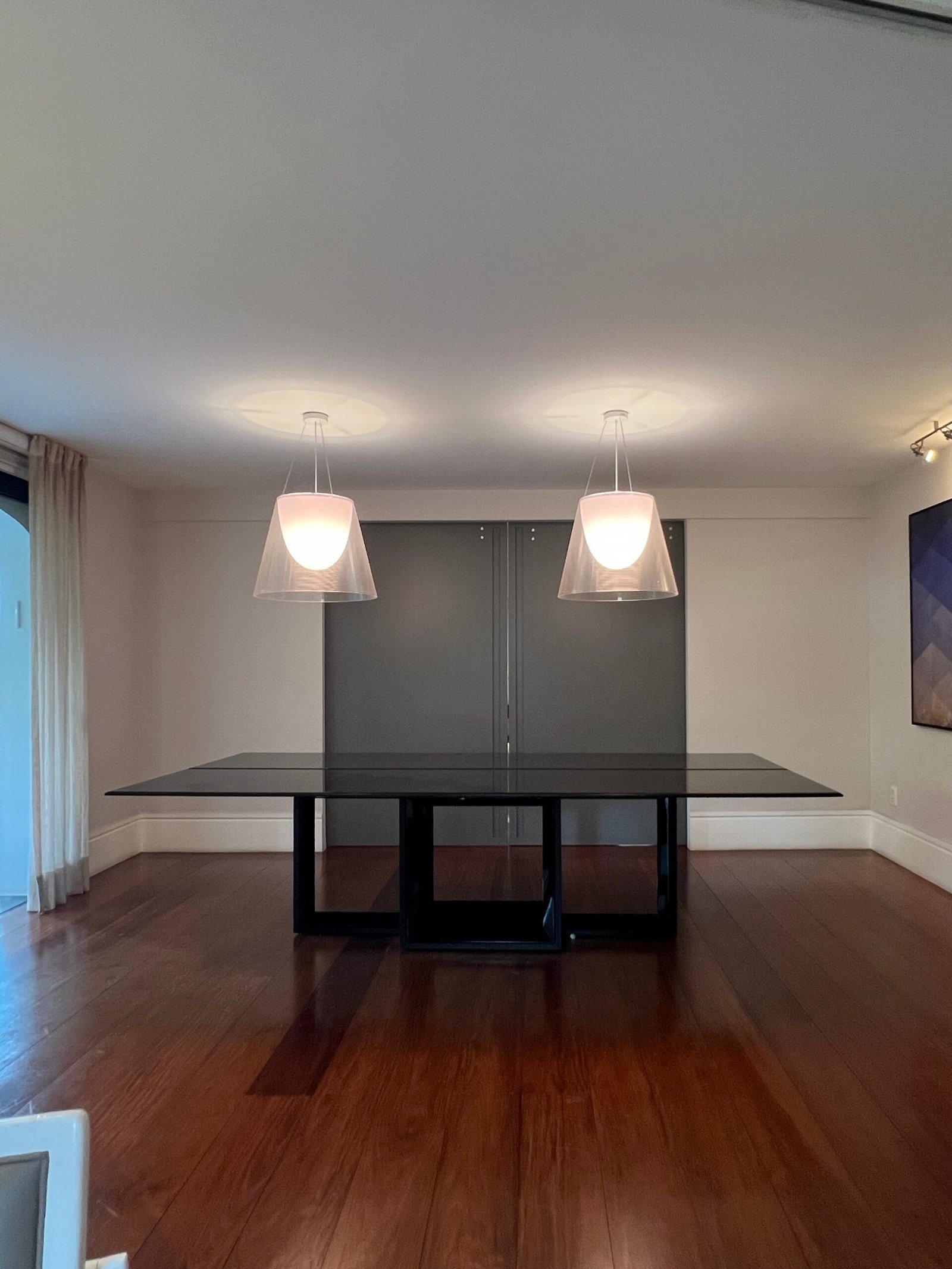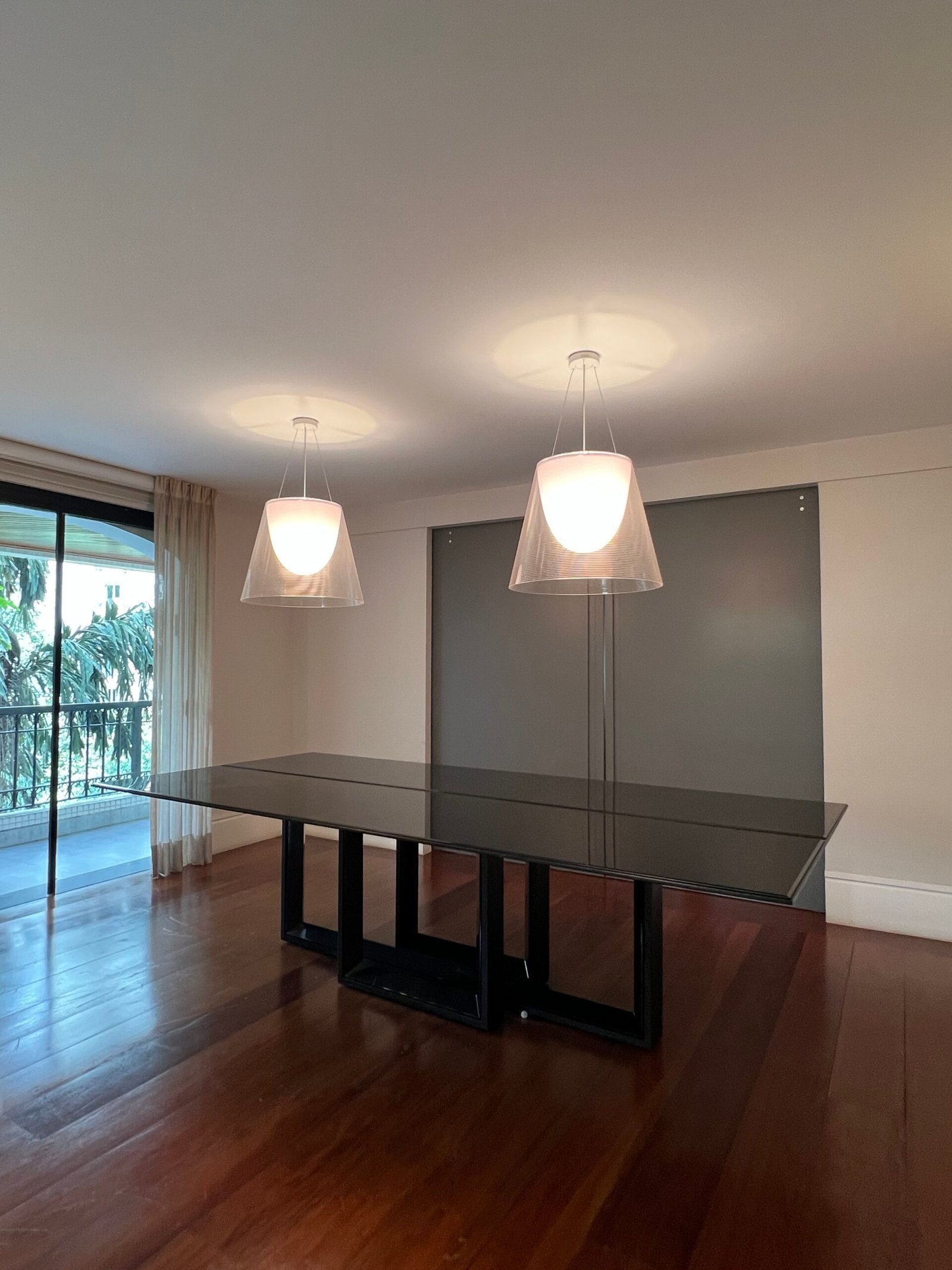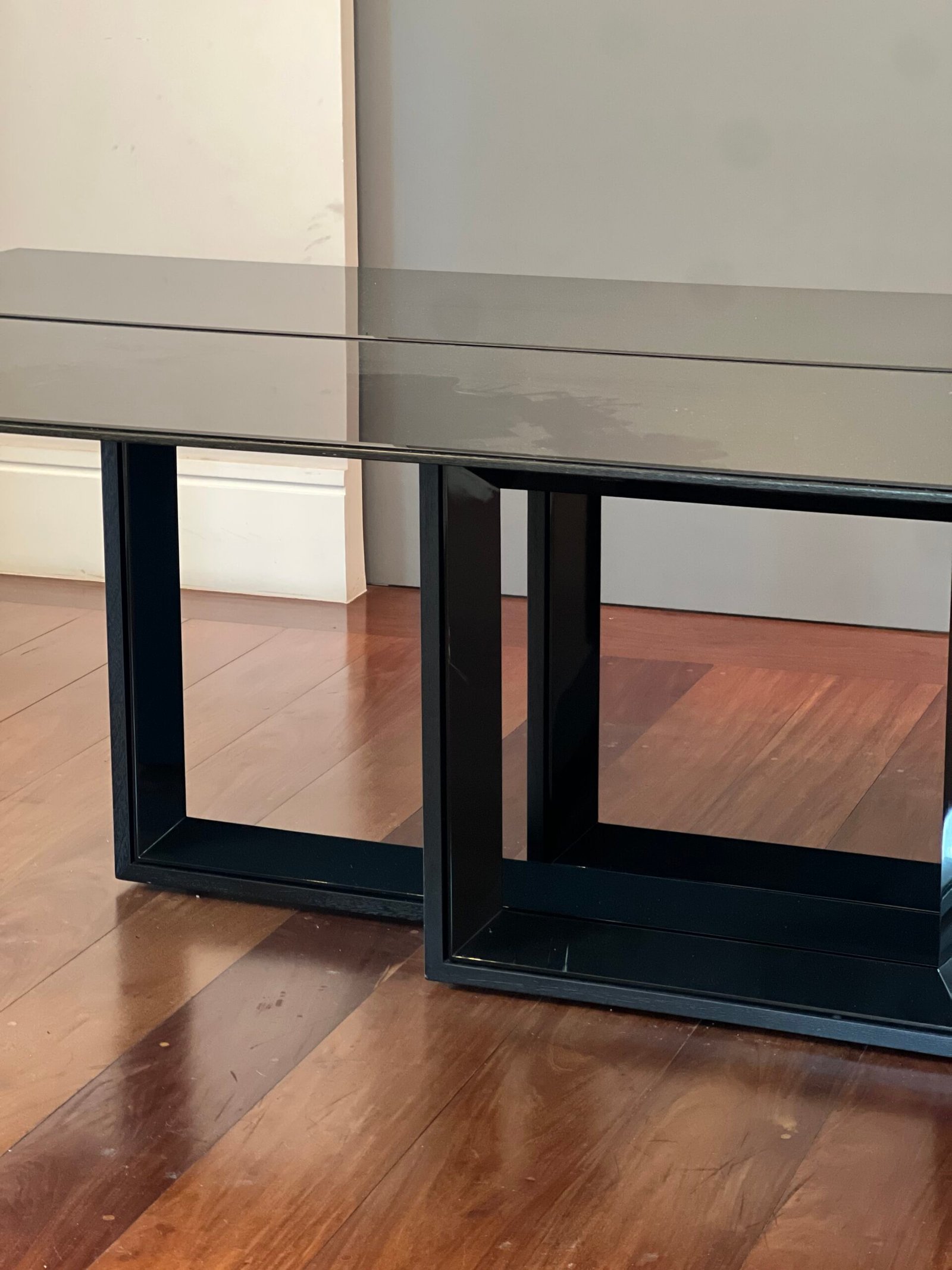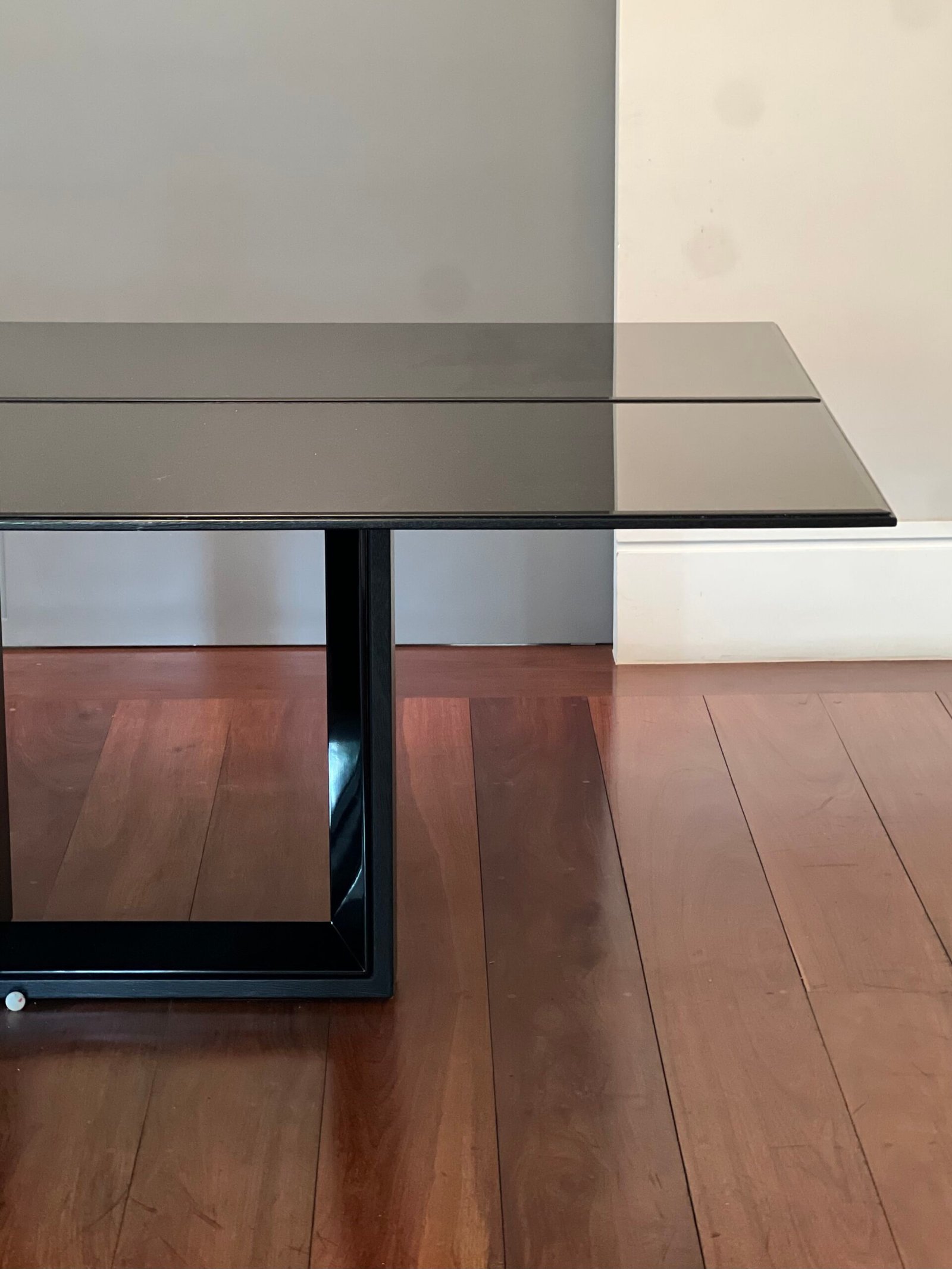 Cód: tiucasp11 DESCRIÇÃO: Mesa de jantar Tampo em lâmina de madeira e vidro Pés em MDF e acabamento em lâmina de madeira Cor: preto