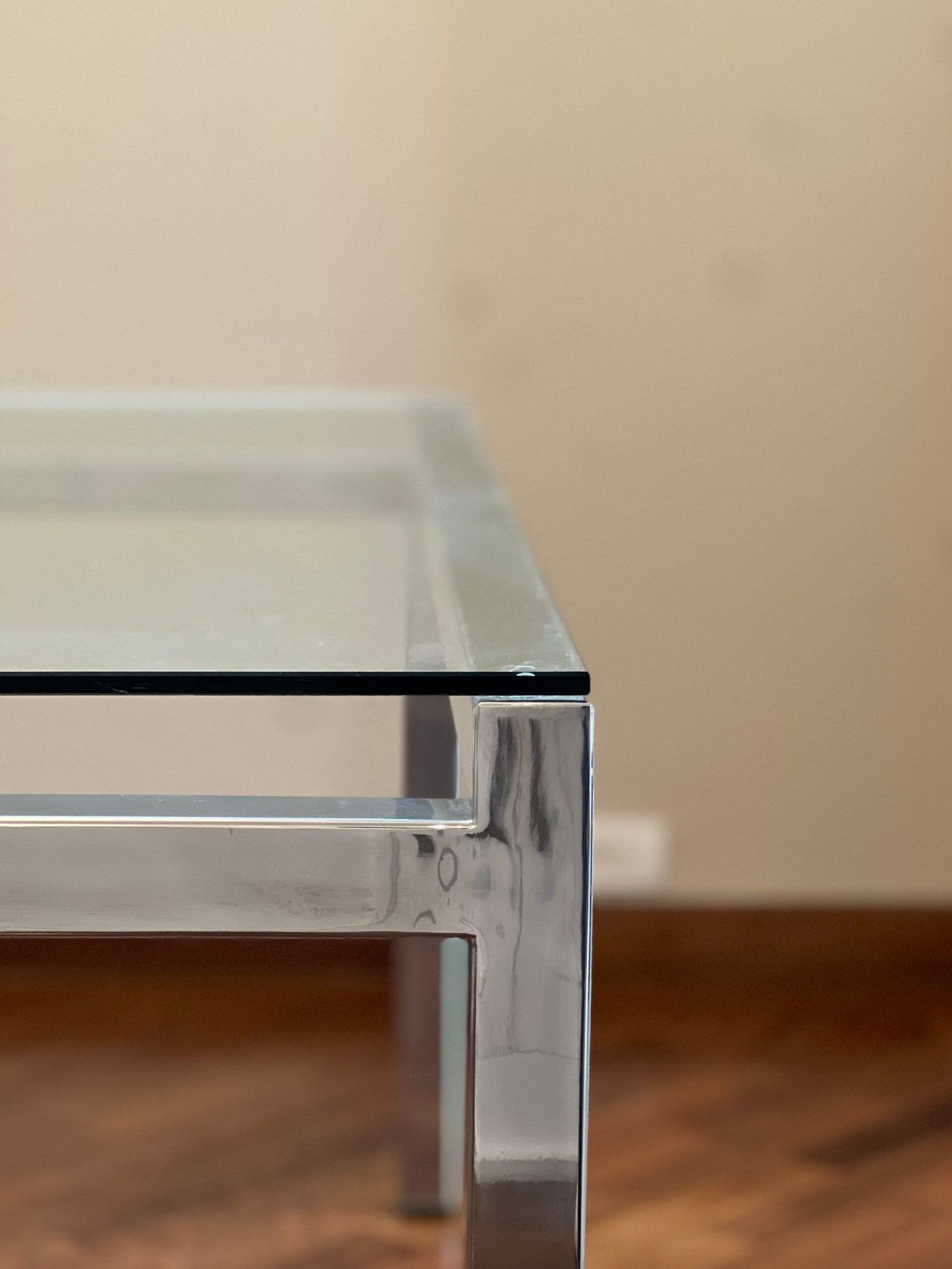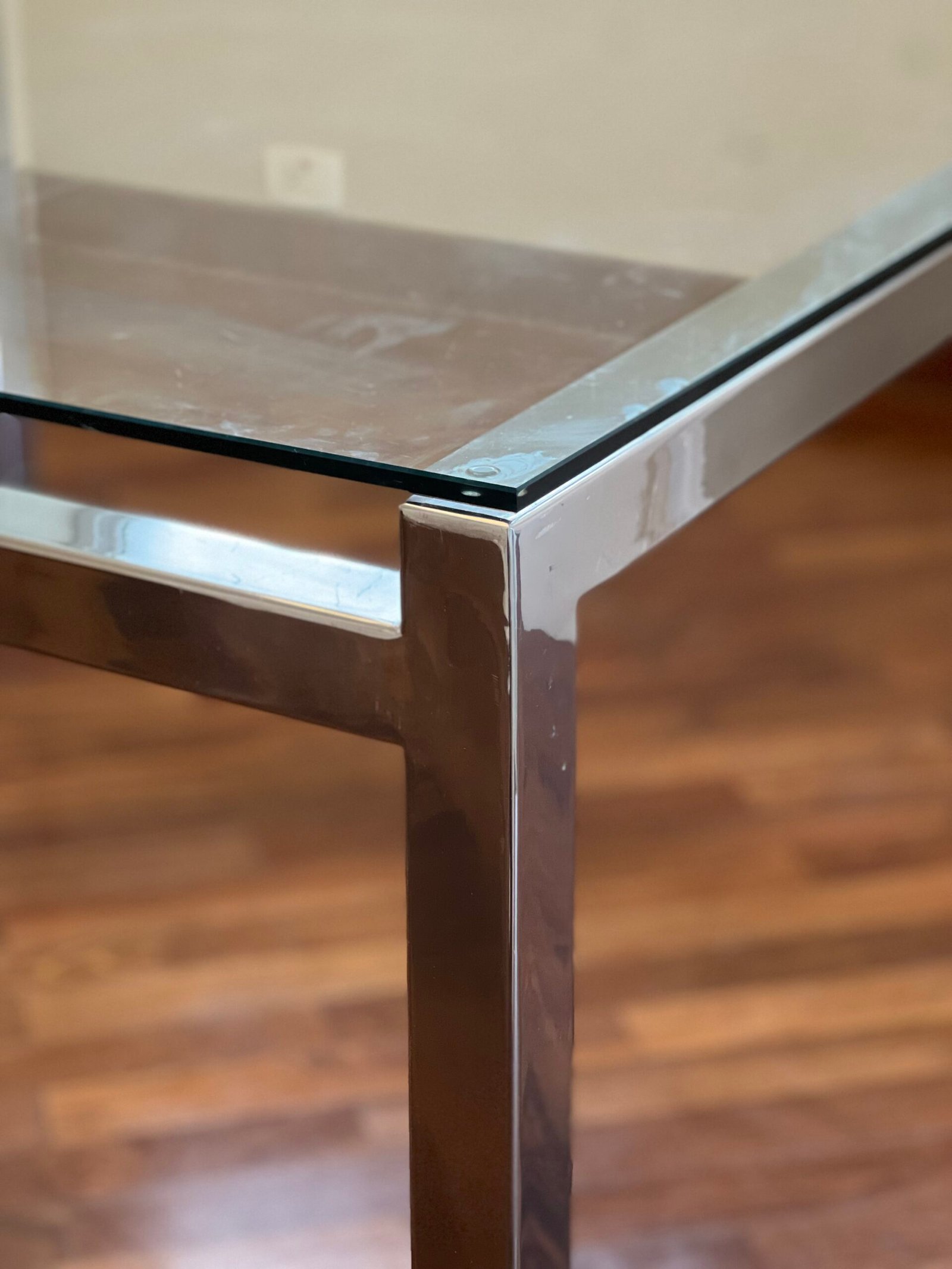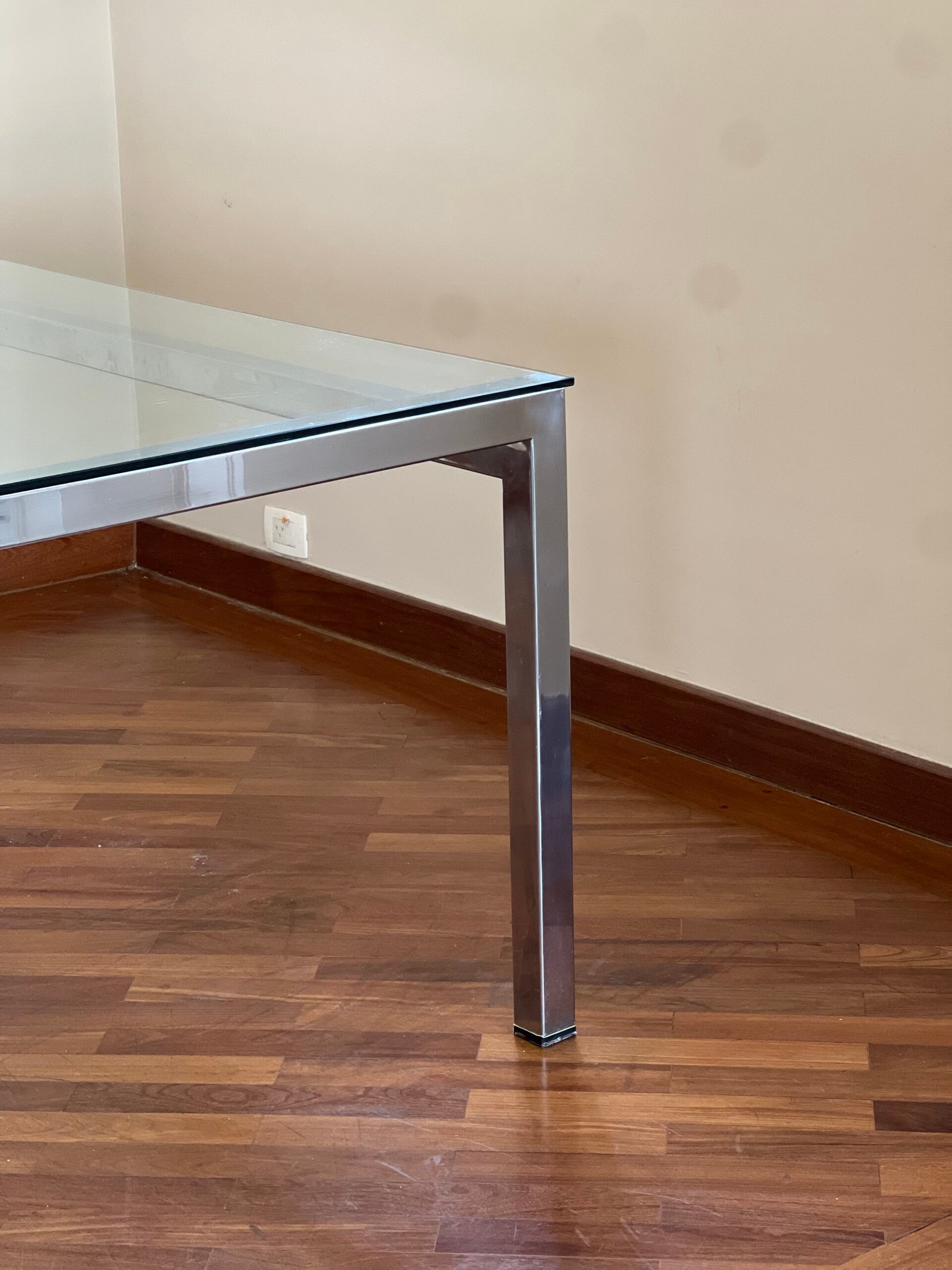 Cód: gibralsp01 DESCRIÇÃO: Mesa de jantar Tampo em vidro Estrutura: aço inox
