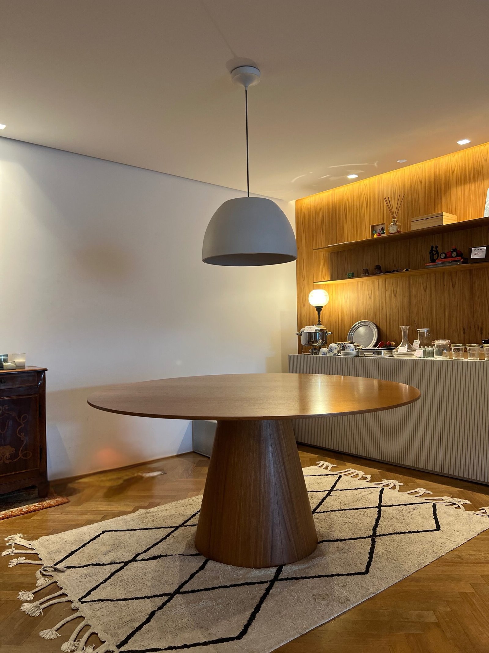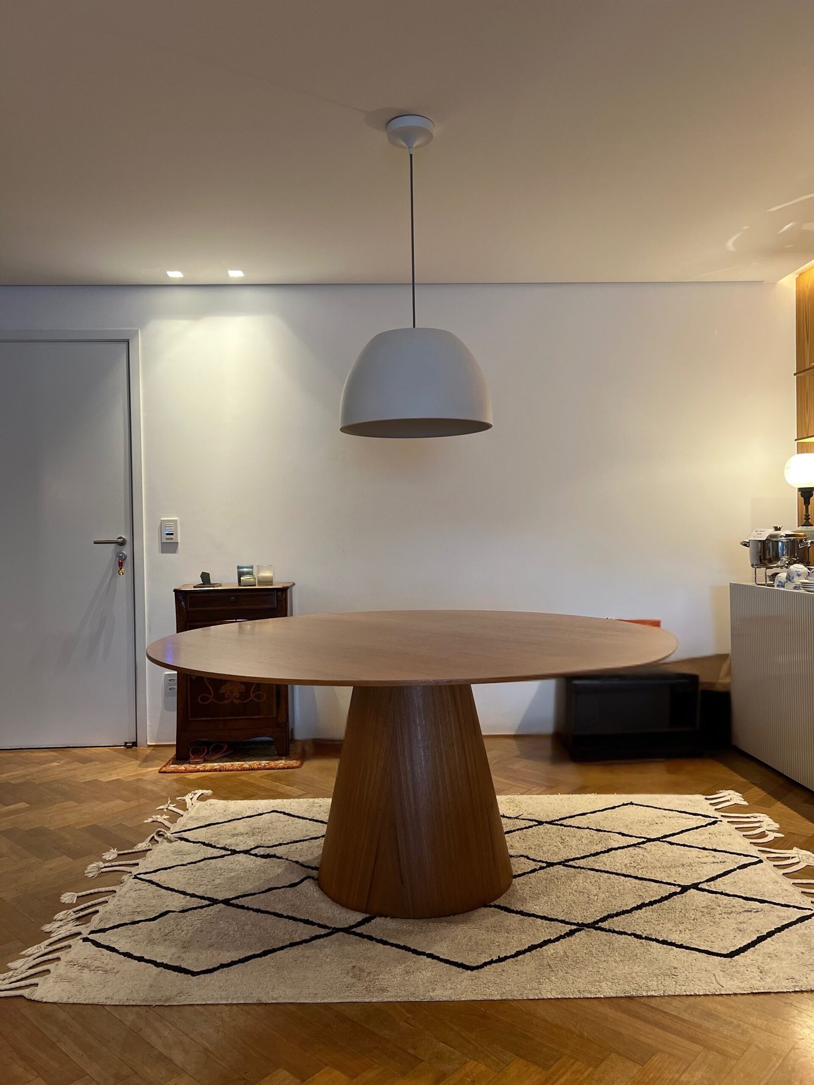 Cód: aruasp11 DESCRIÇÃO: Mesa de jantar Barcelona Acabamento: madeira laminada Procedência: Clami