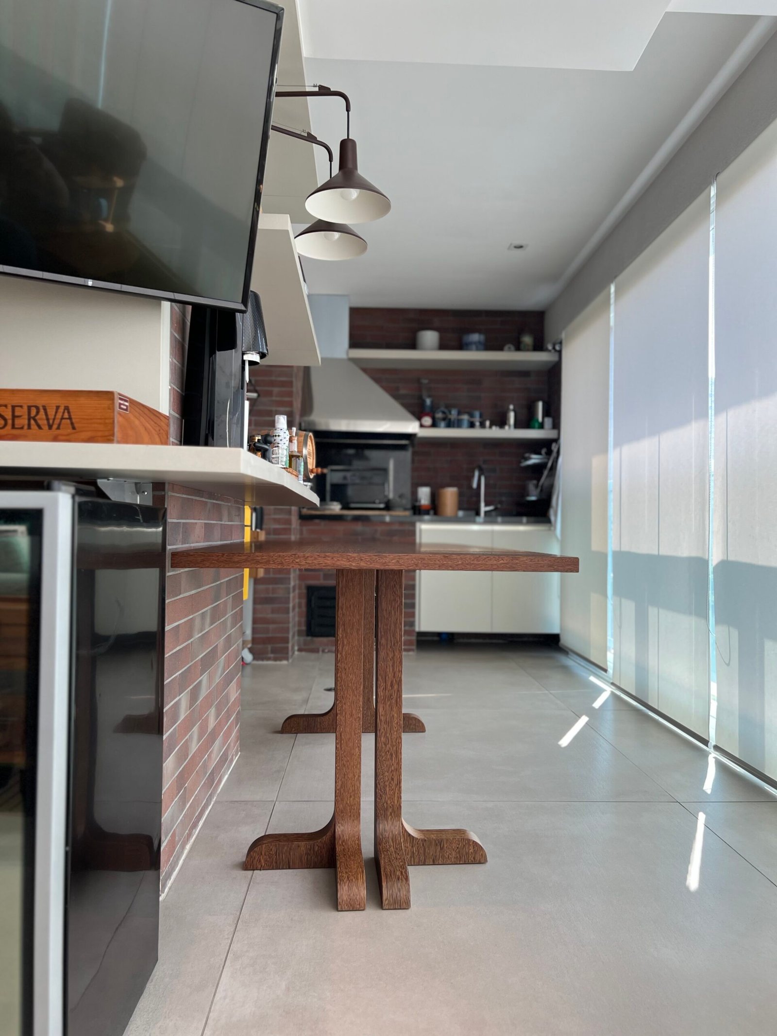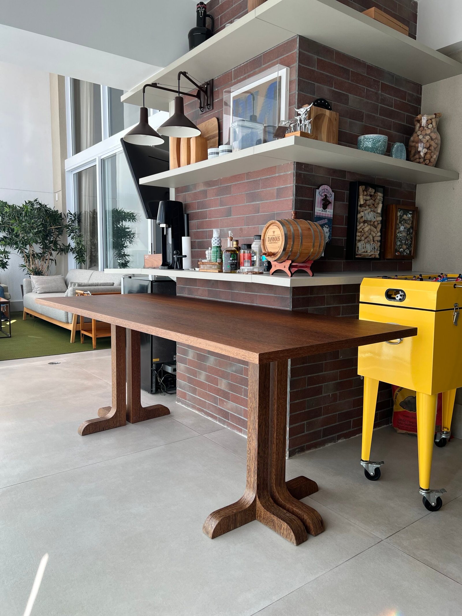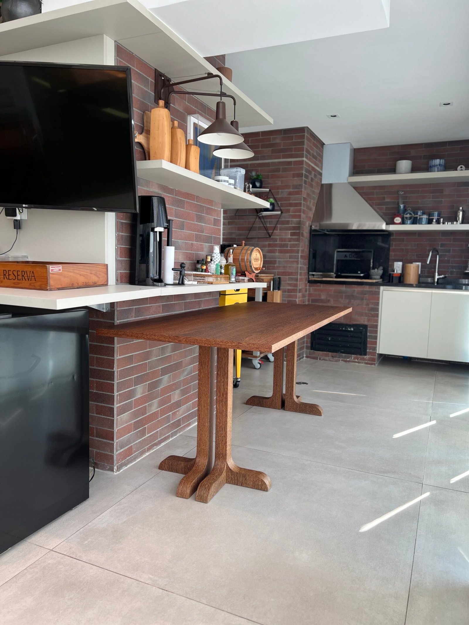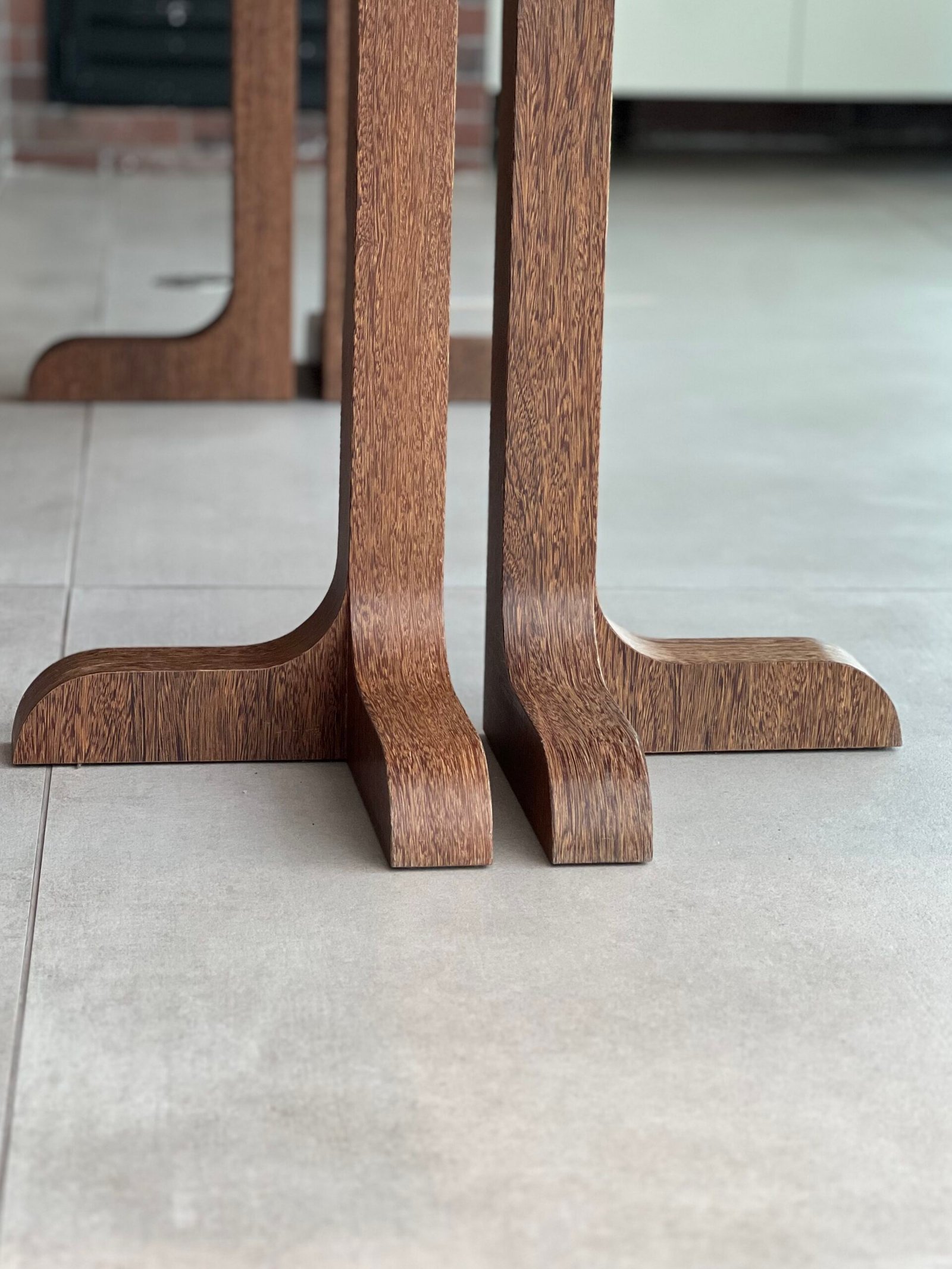 Cód: delusp07 DESCRIÇÃO: Mesa de jantar Recortes Material: madeira Acabamento: lâmina de madeira sucupira