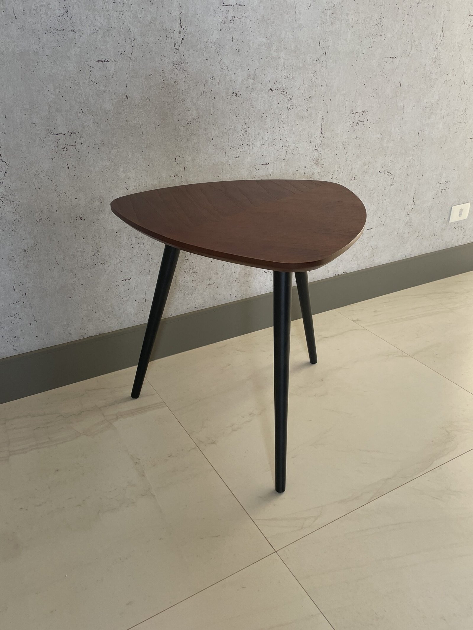 Cód: goyasp15 DESCRIÇÃO: Mesa lateral Tampo em MDF revestido em lâmina de madeira Pés em madeira