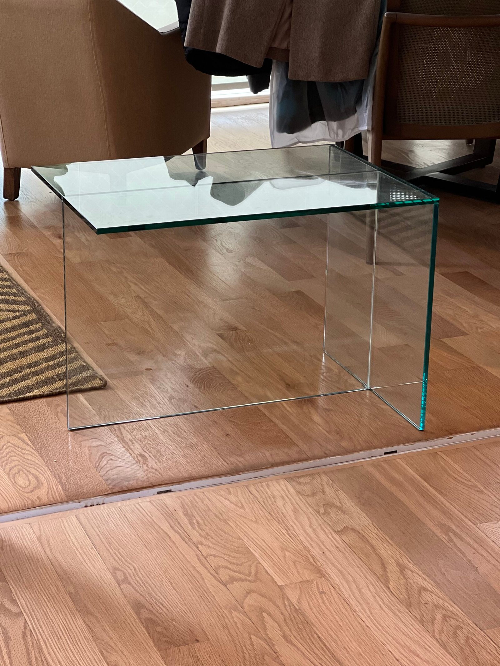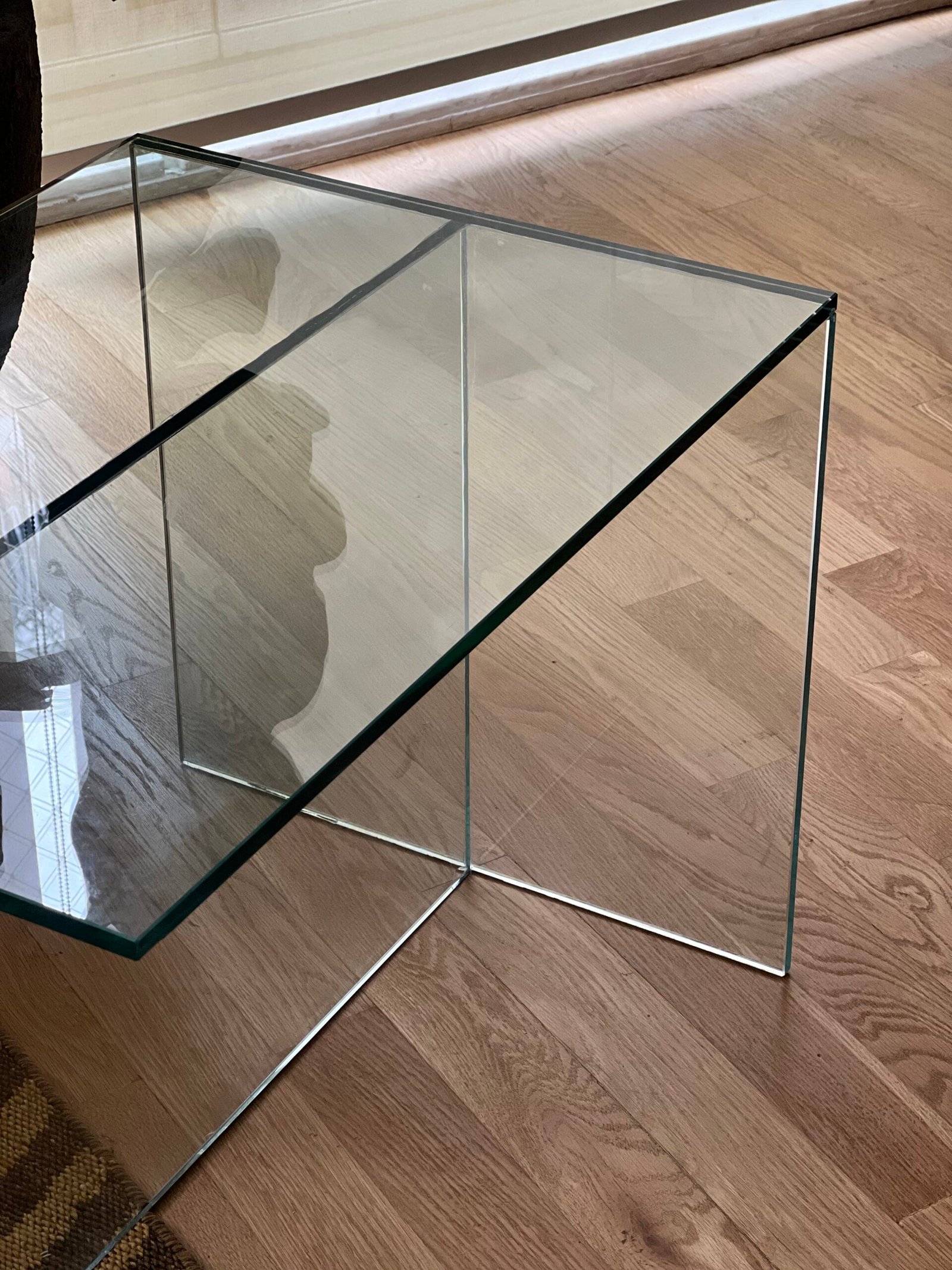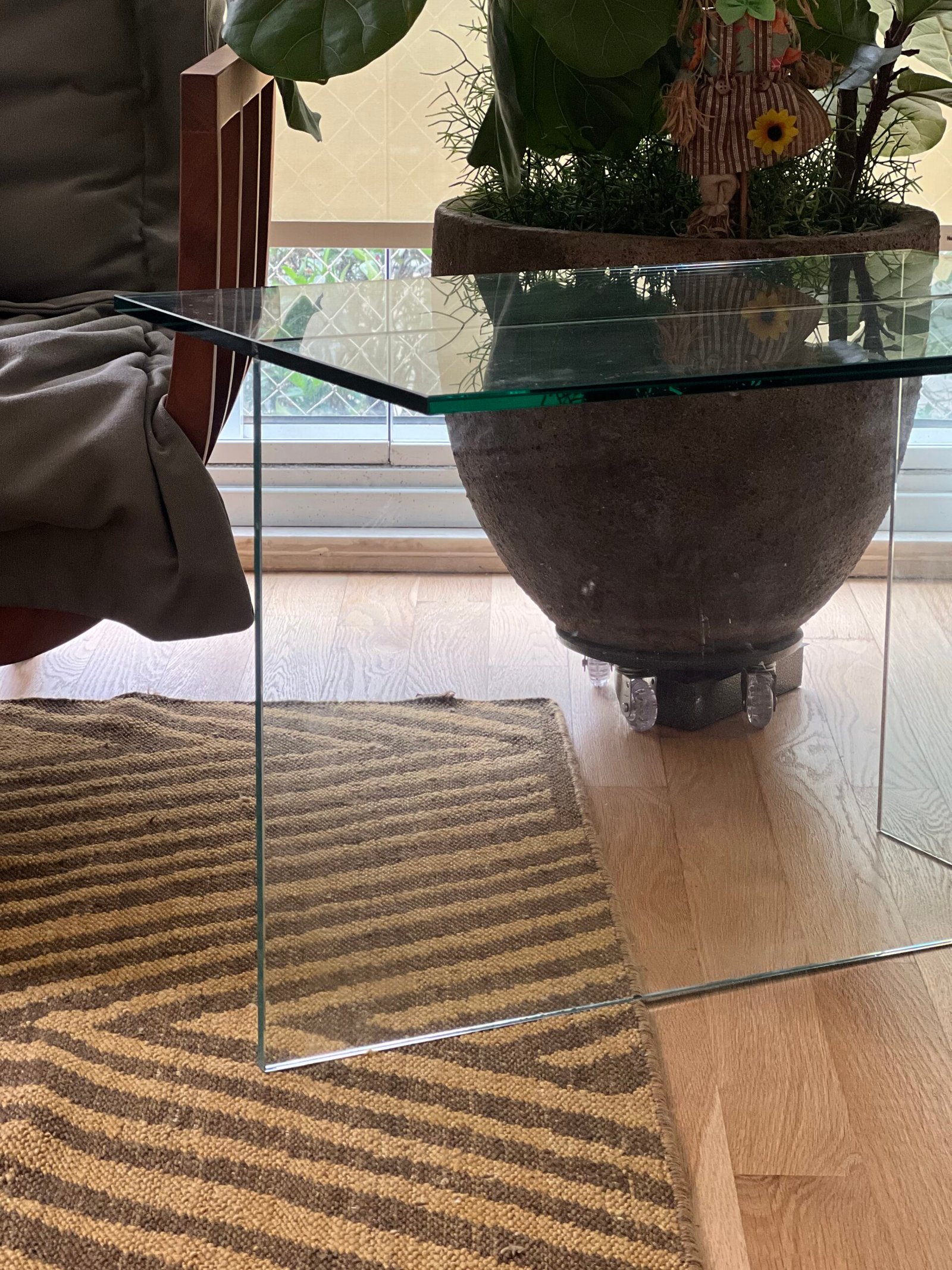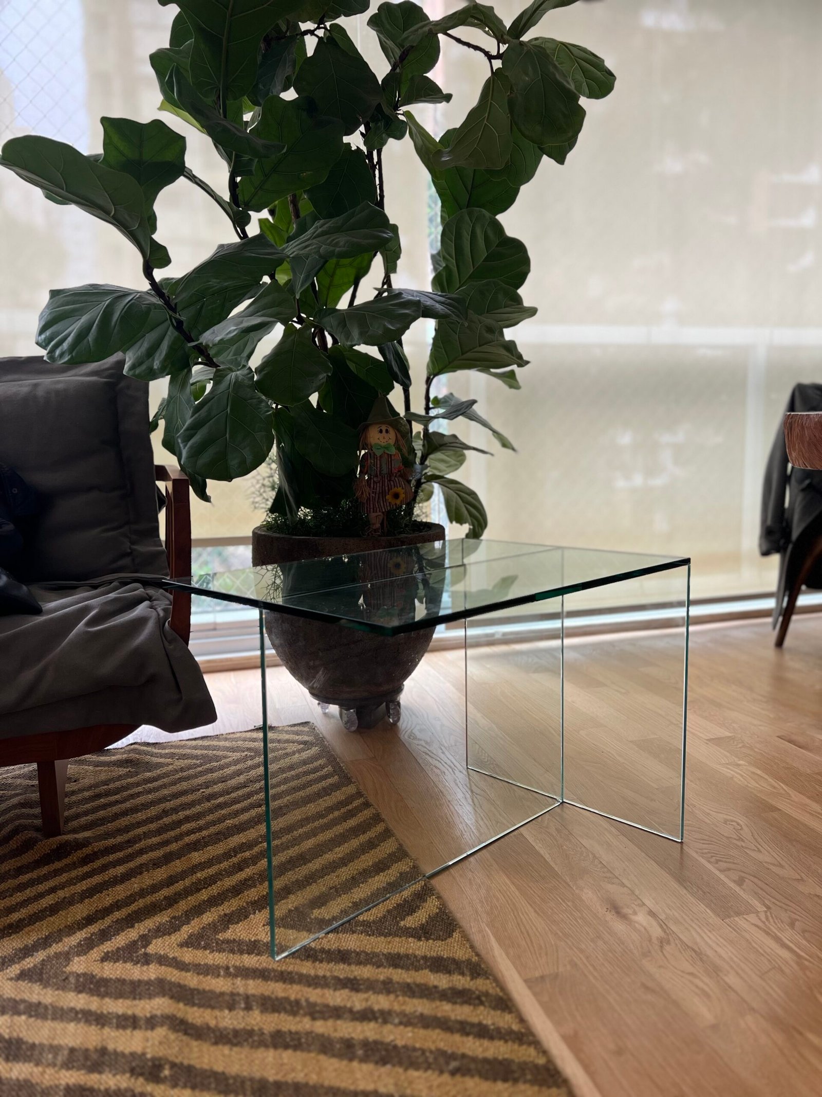 Cód: aquasp03 DESCRIÇÃO: Mesa lateral Pi Material: vidro plano