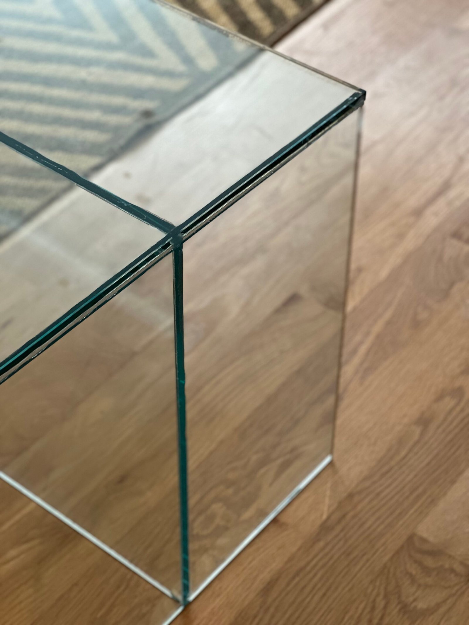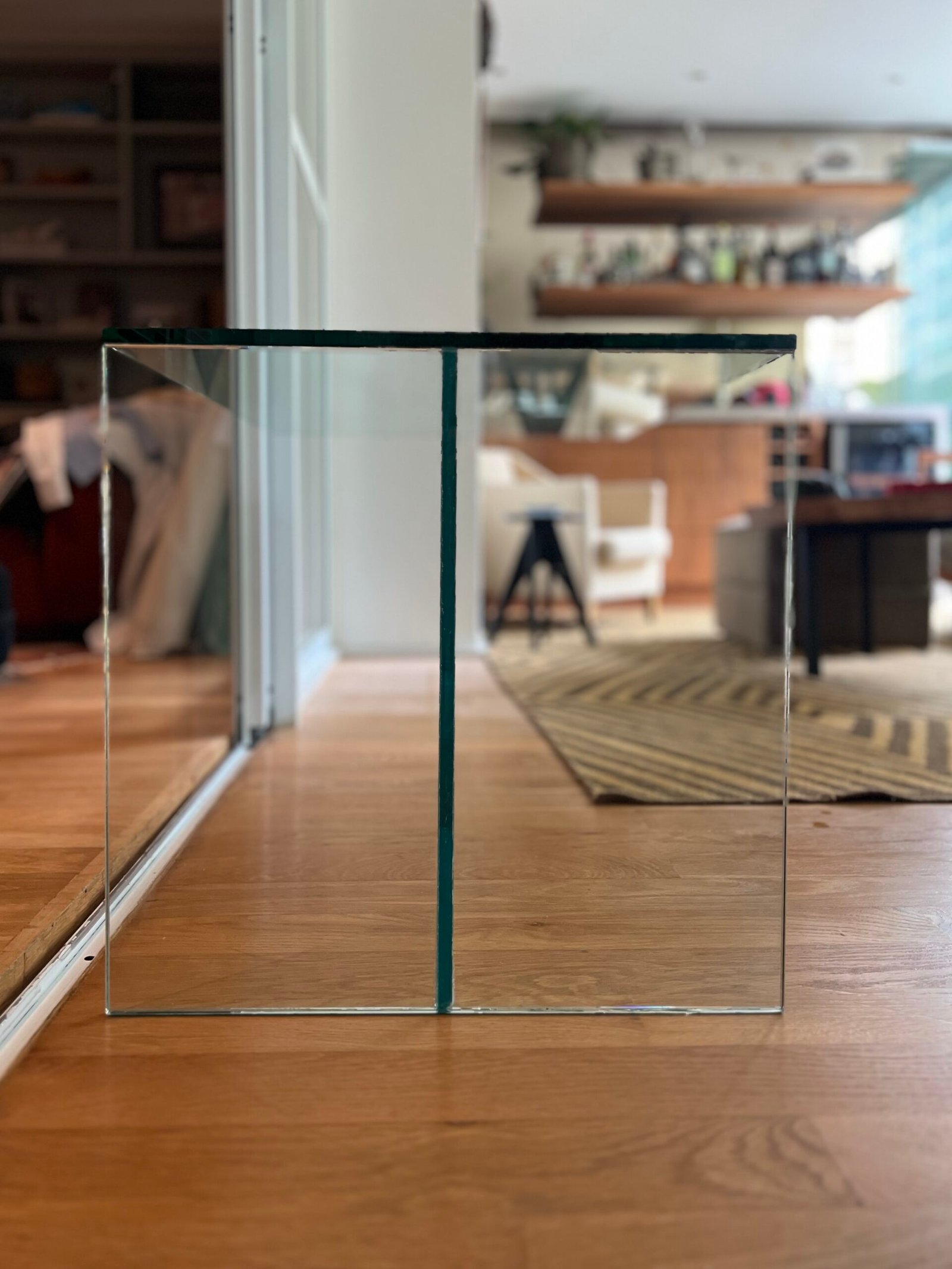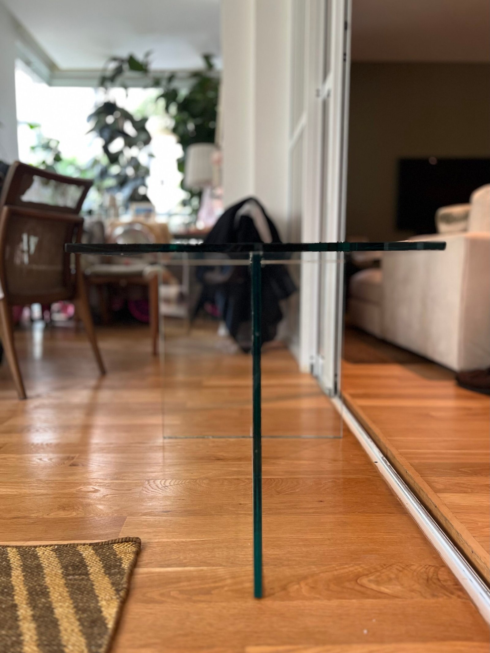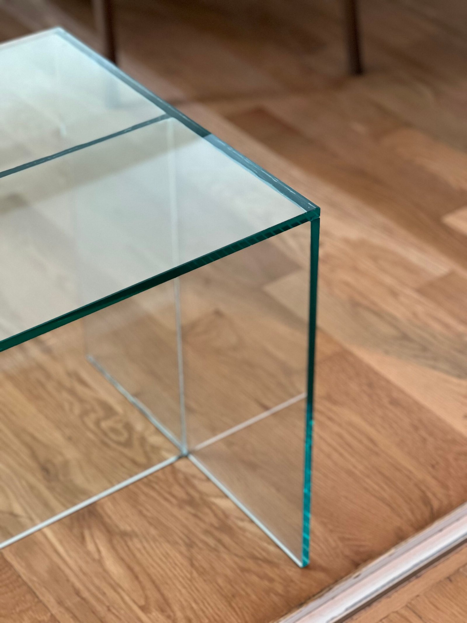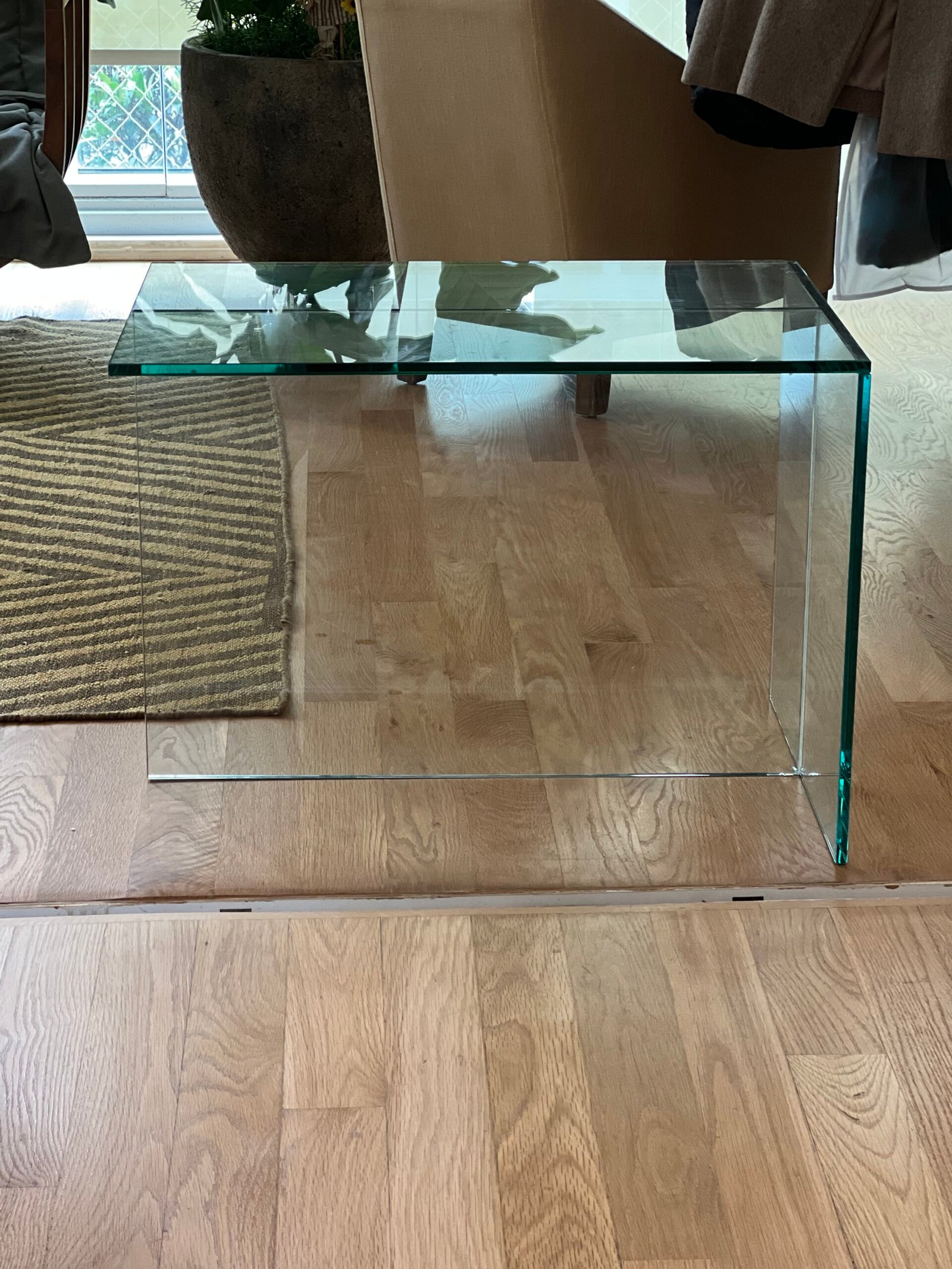 Cód: aquasp03 DESCRIÇÃO: Mesa lateral Pi Material: vidro plano