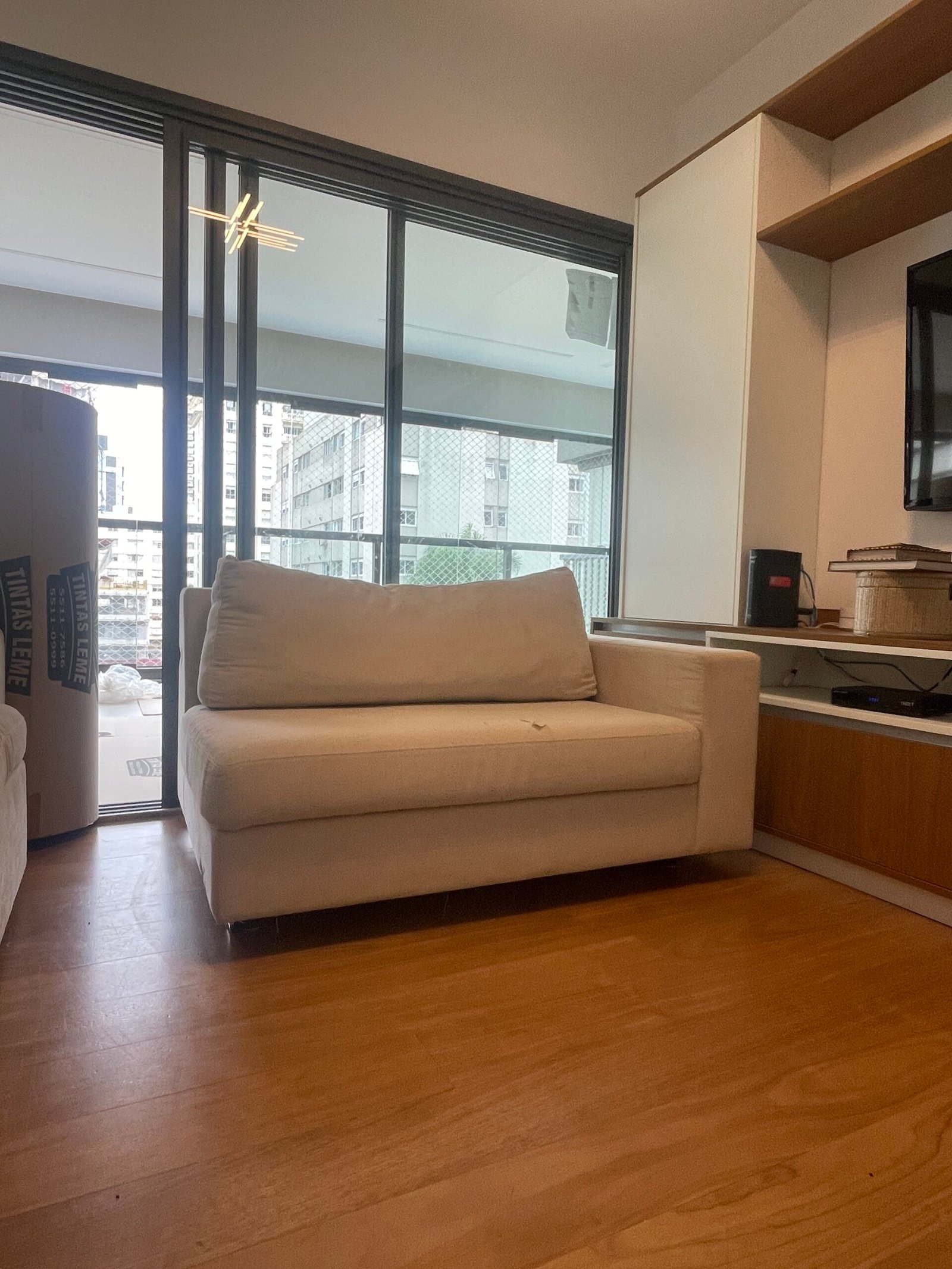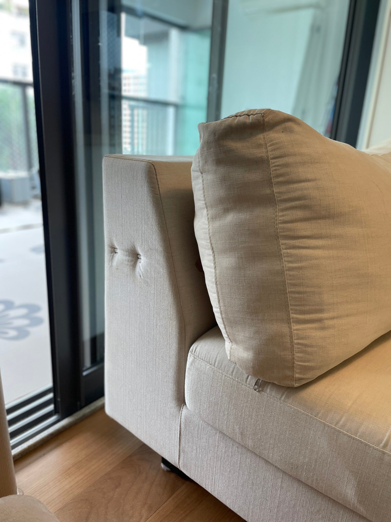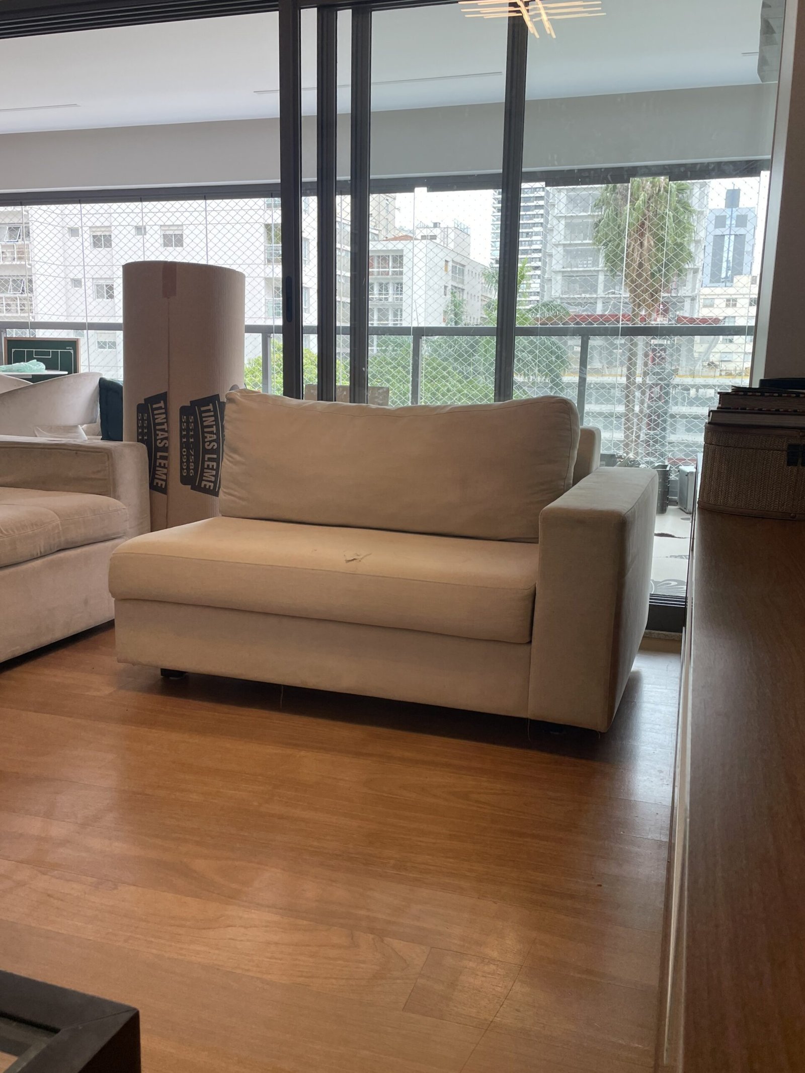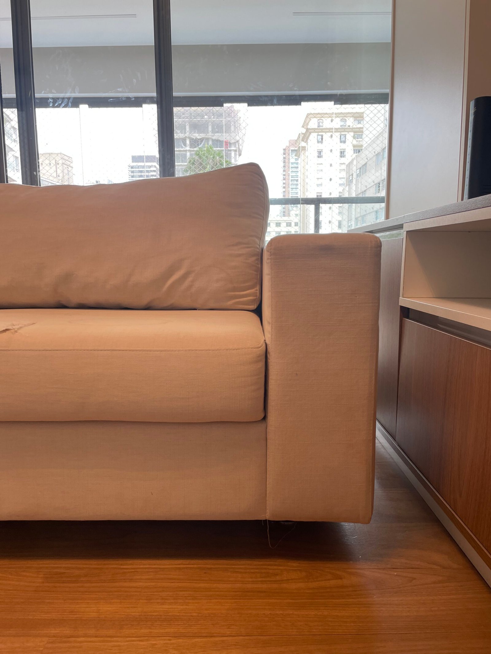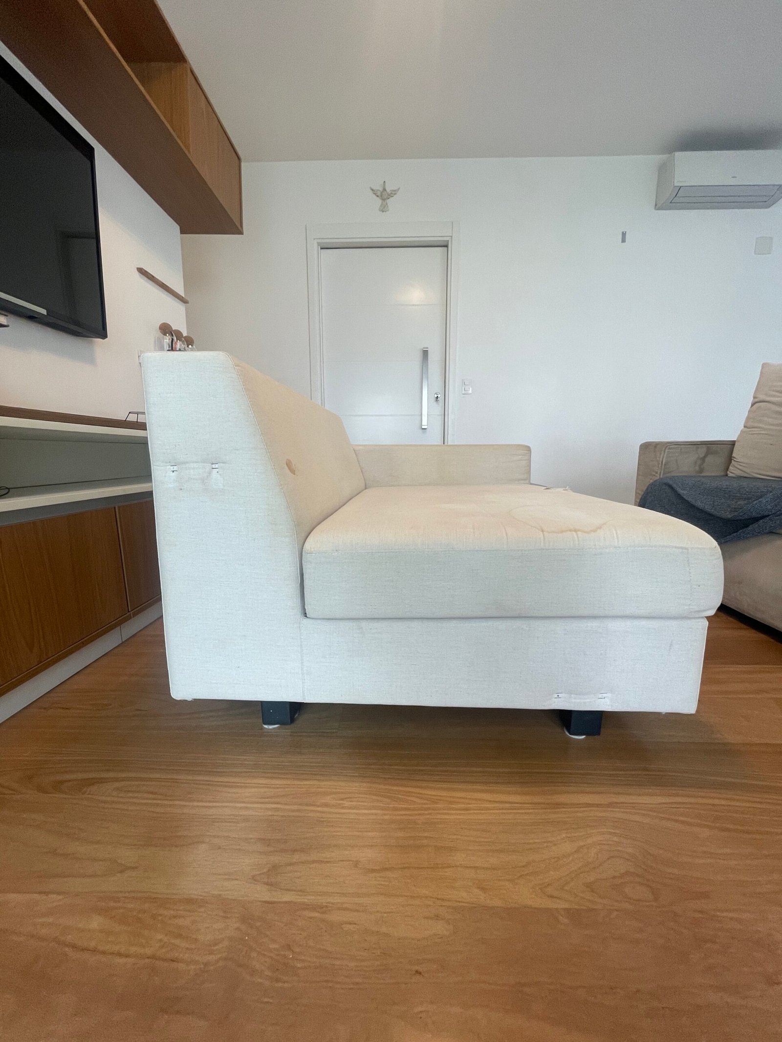 Cód: siupdesp02 DESCRIÇÃO: Módulo de sofá Módulo braço esquerdo Pés em madeira Tecido: linho Cor: cru