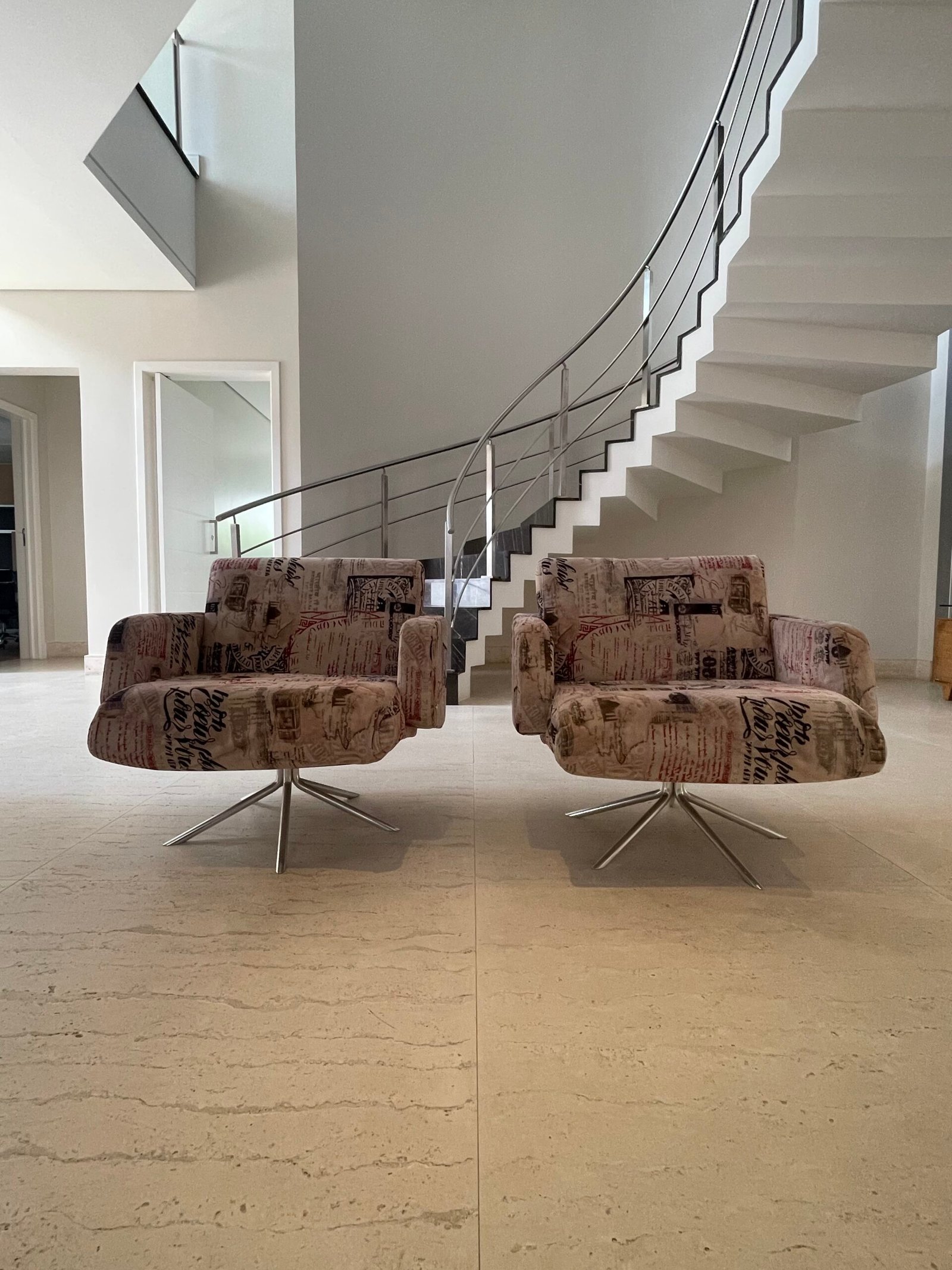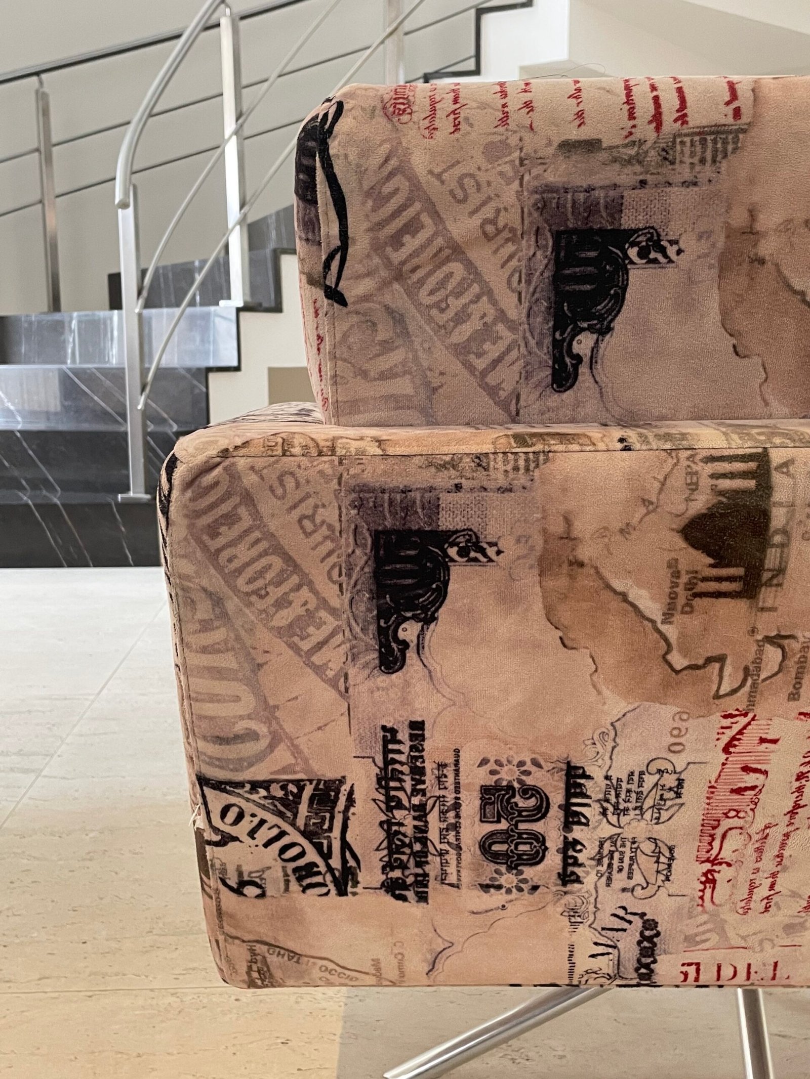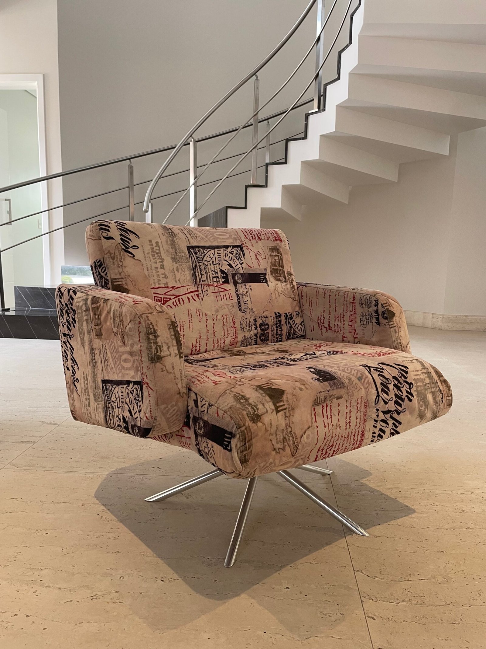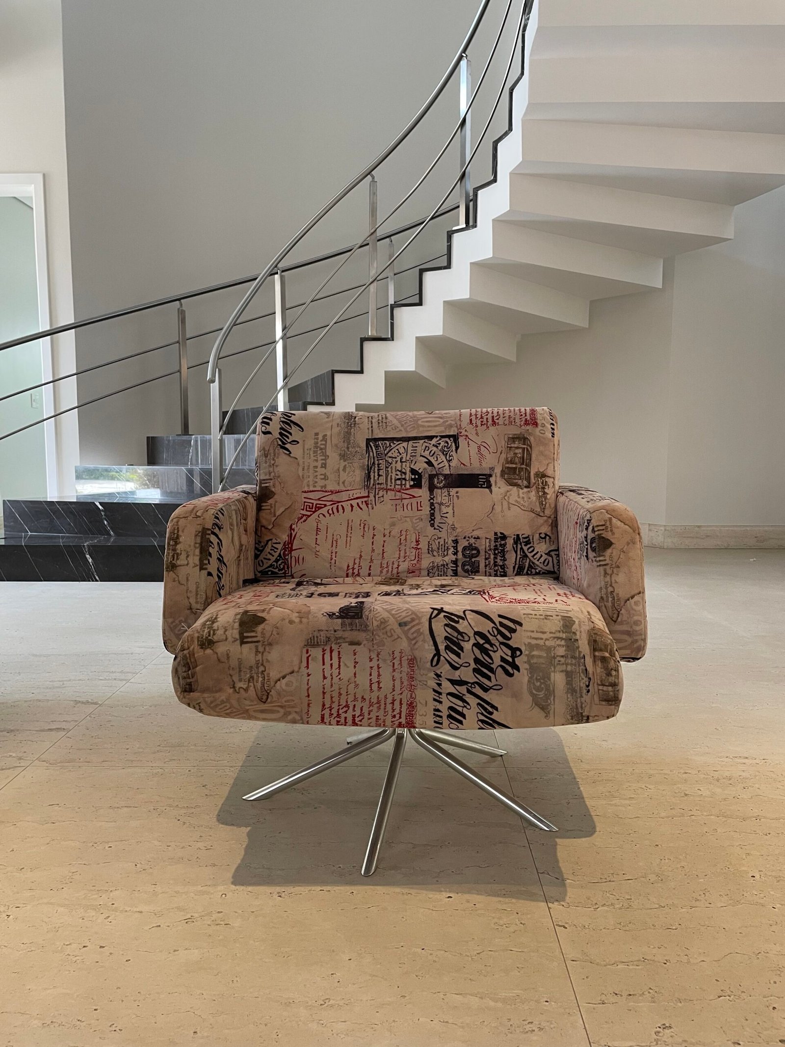 Cód: neysiav01 DESCRIÇÃO: 02 Poltronas Pés em aço inox Tecido: suede estampado Cor: bege