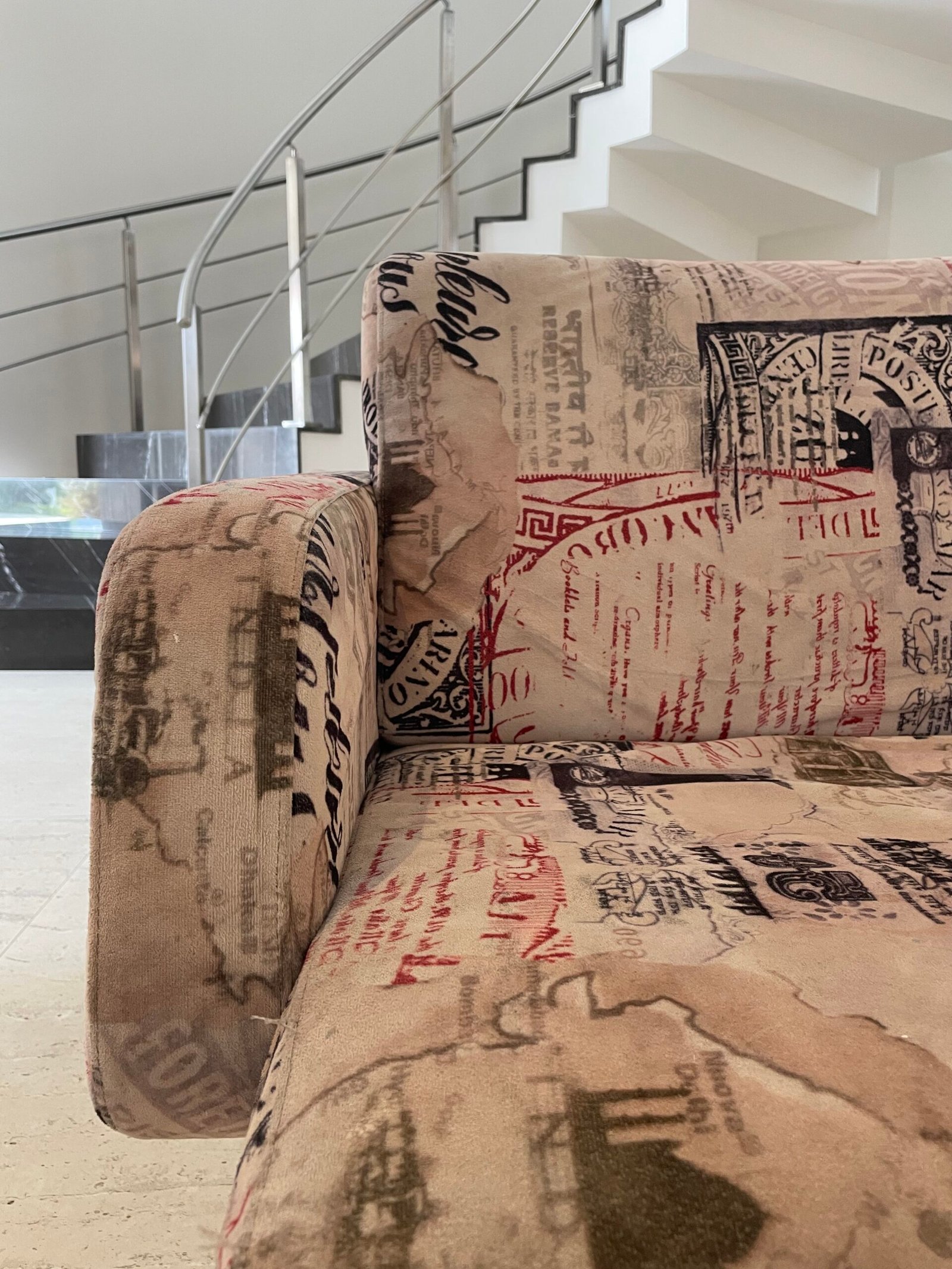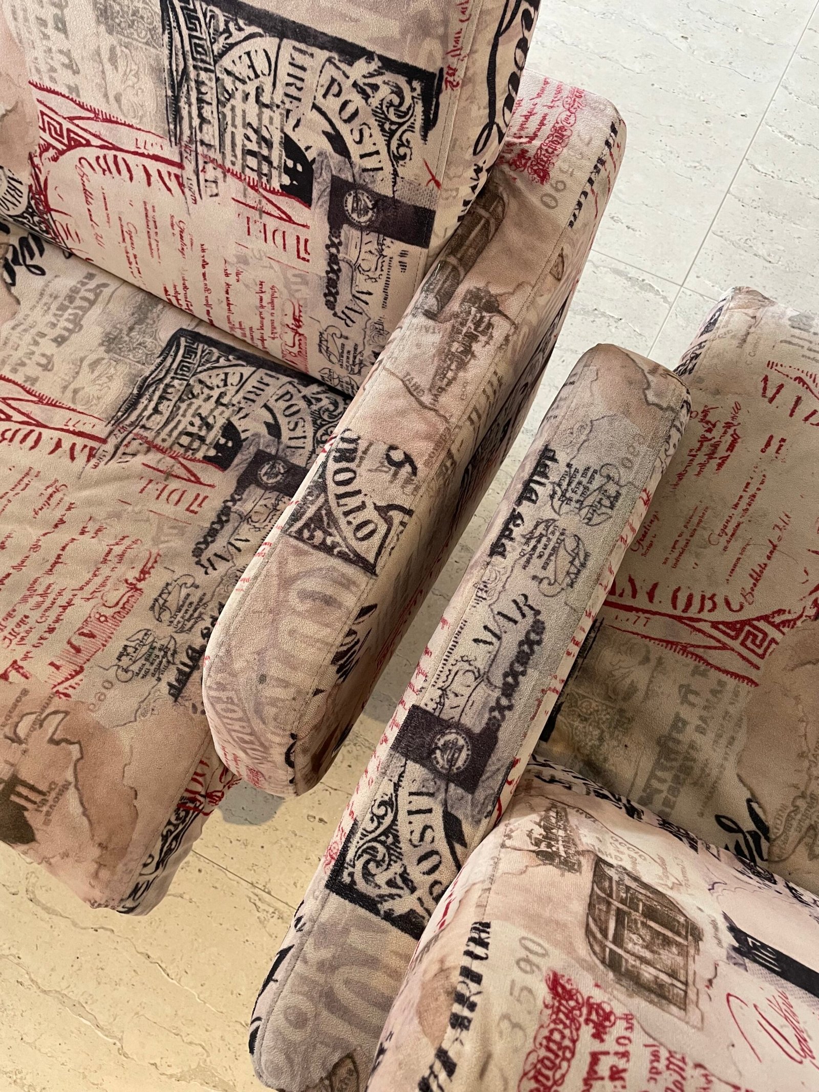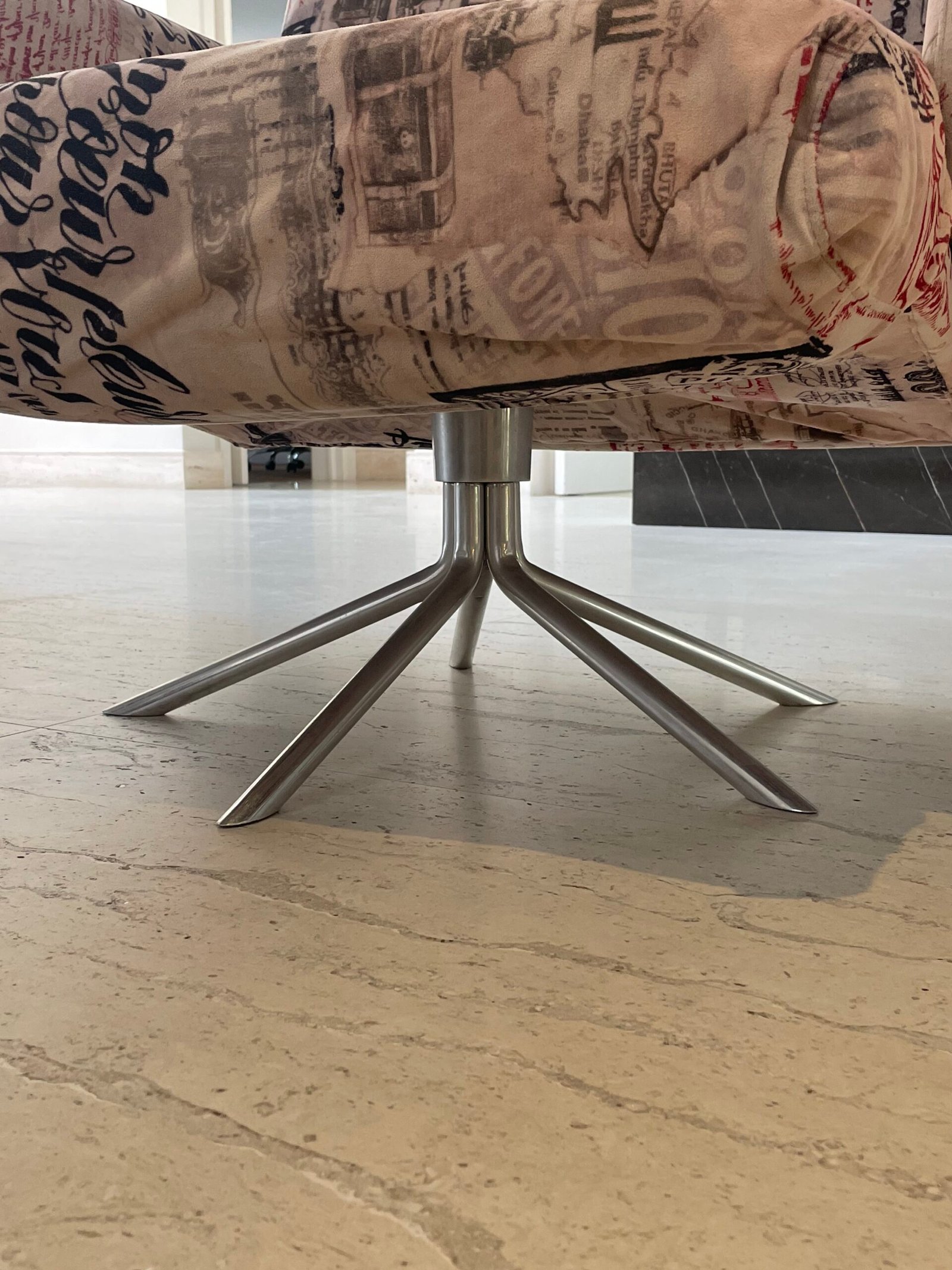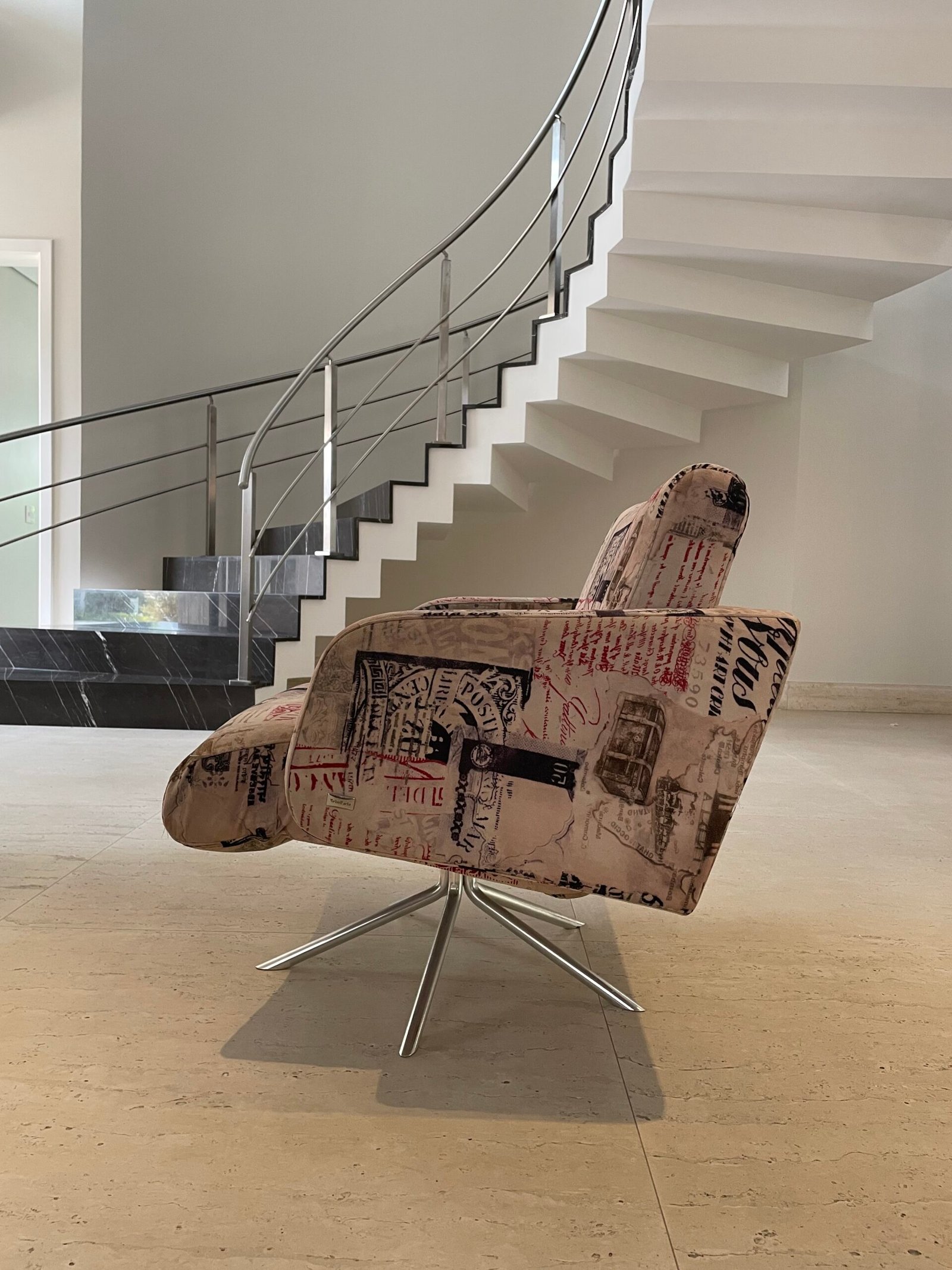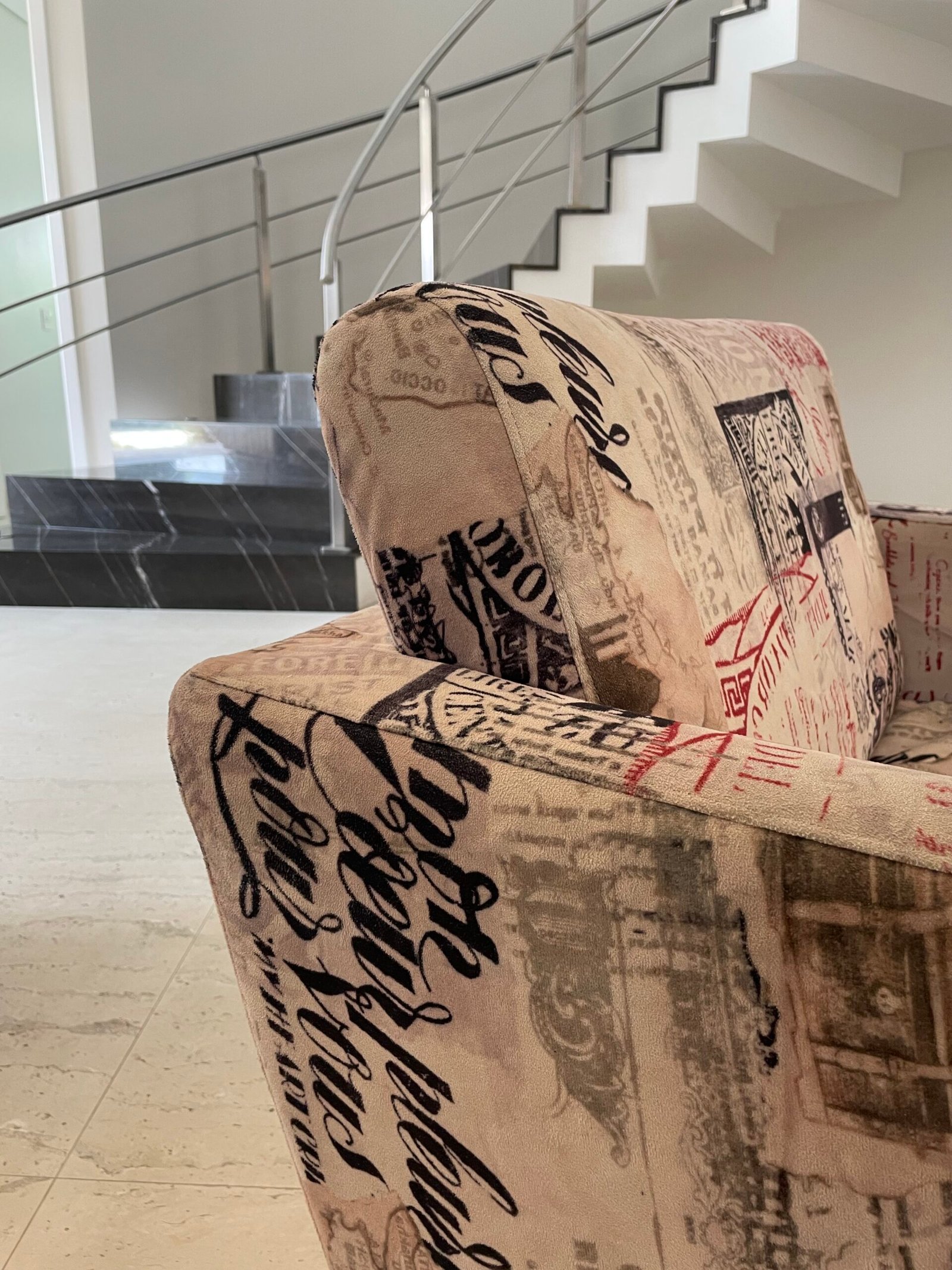 Cód: neysiav01 DESCRIÇÃO: 02 Poltronas Pés em aço inox Tecido: suede estampado Cor: bege