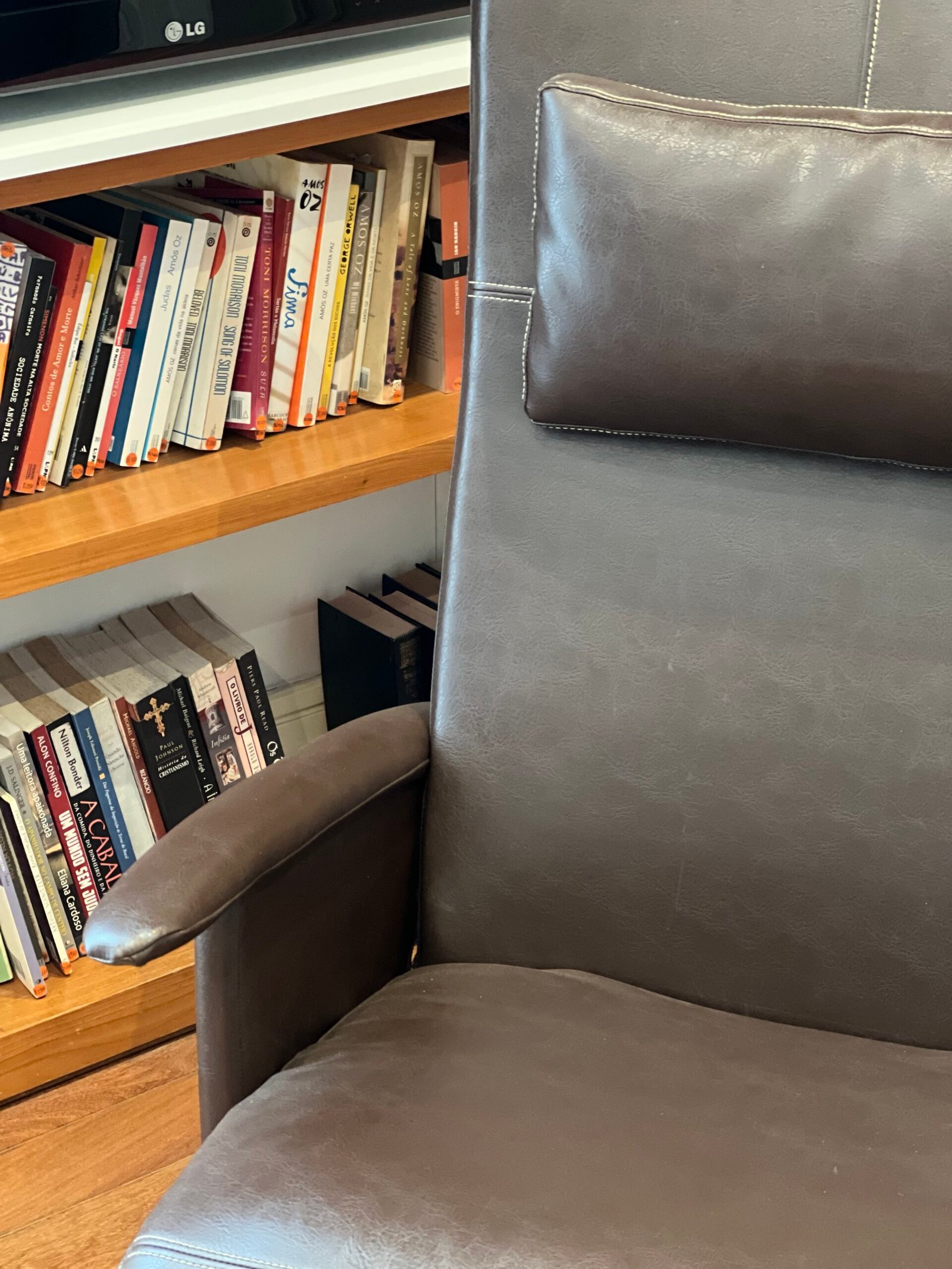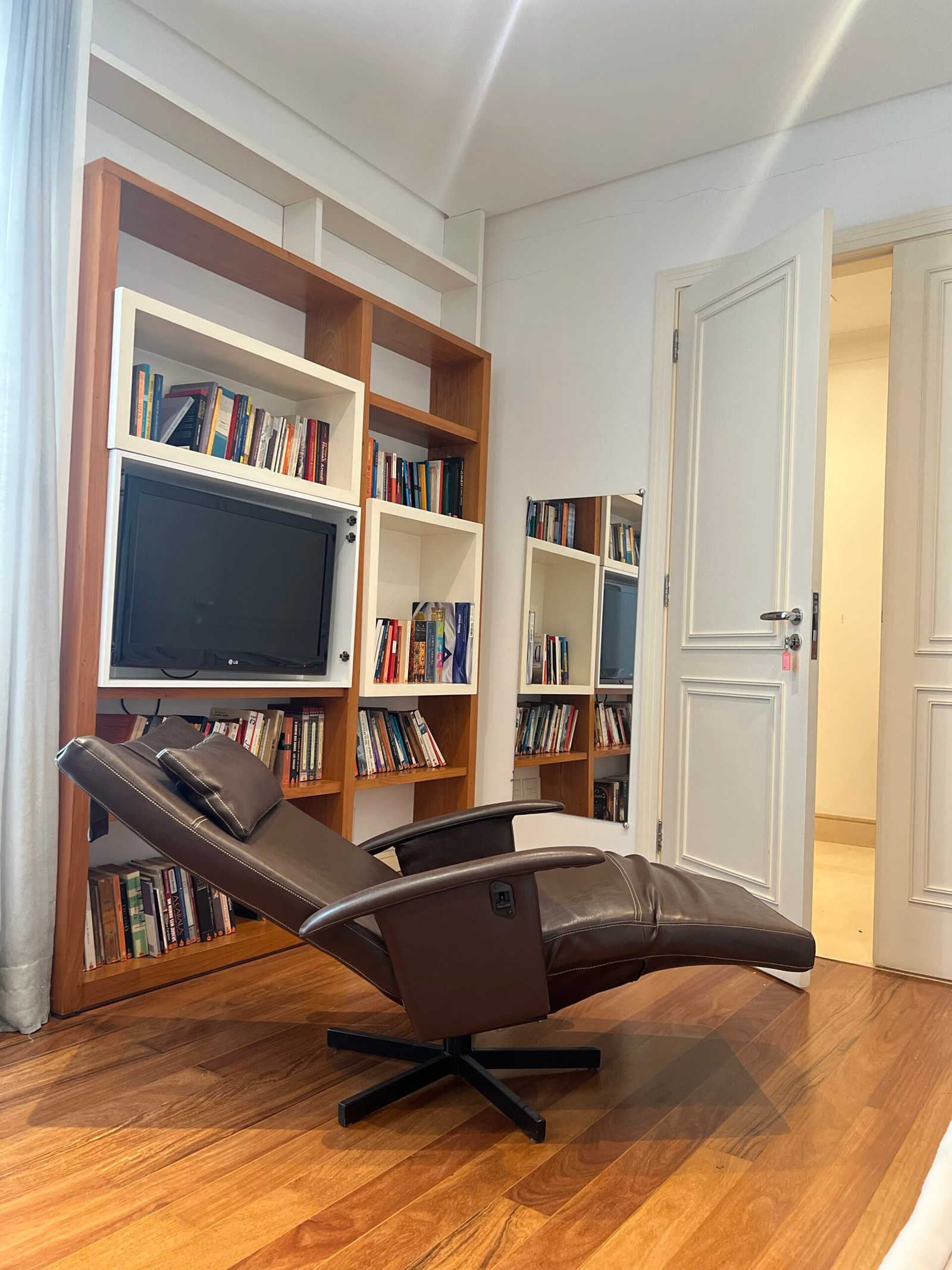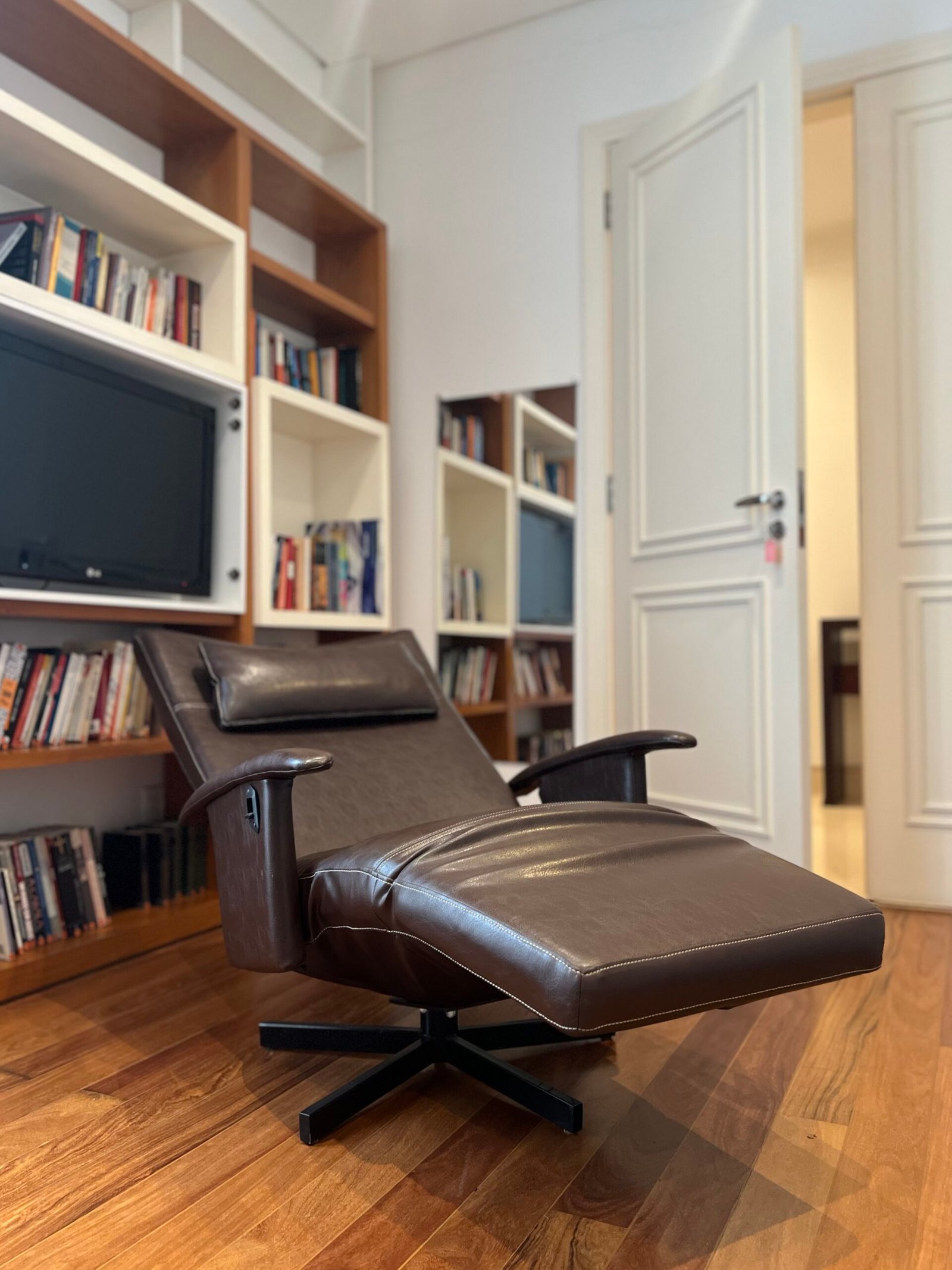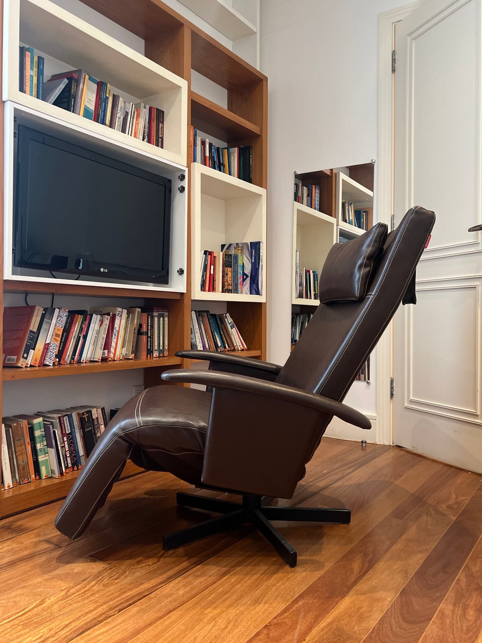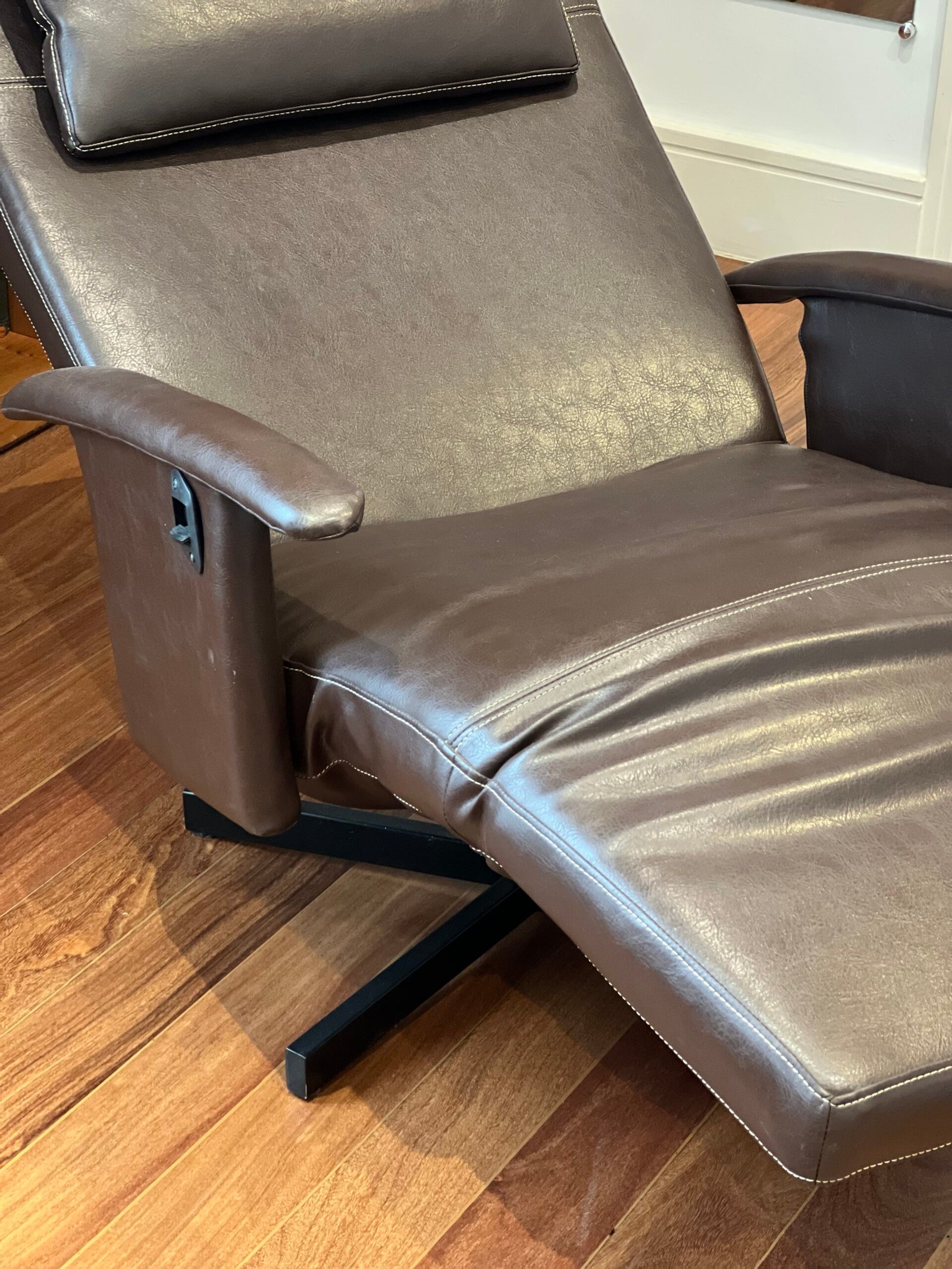 Cód: chelsansp03 DESCRIÇÃO: Poltrona reclinável Giratória Pés em metal Tecido: couro sintético Cor: marrom