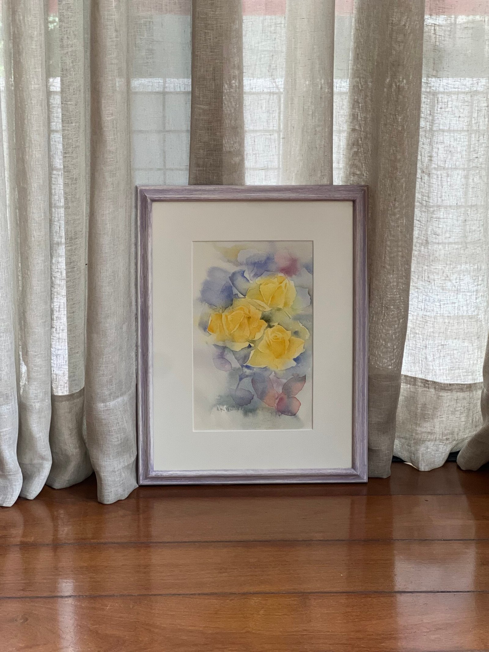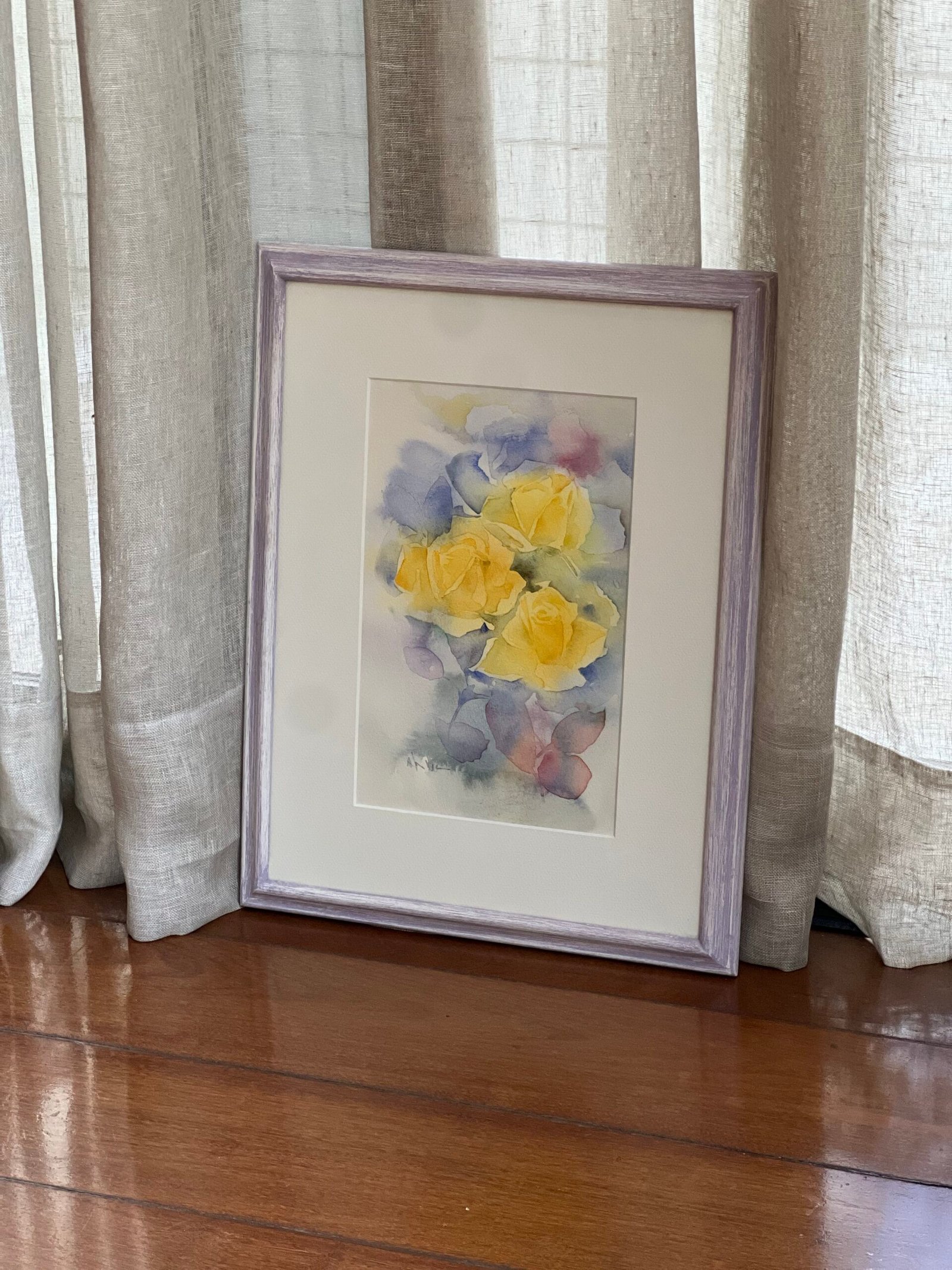 Moldura em madeira na cor lilás