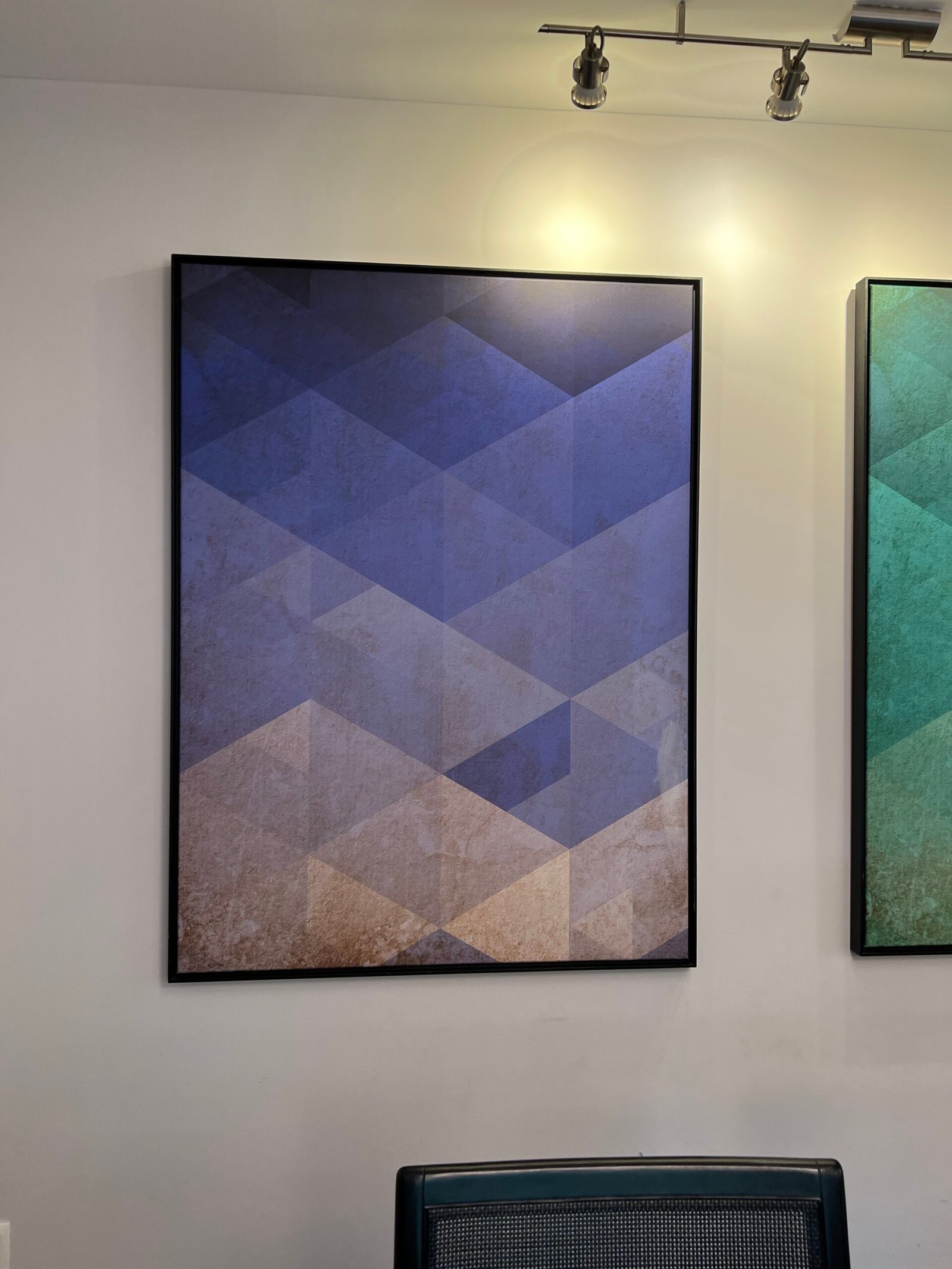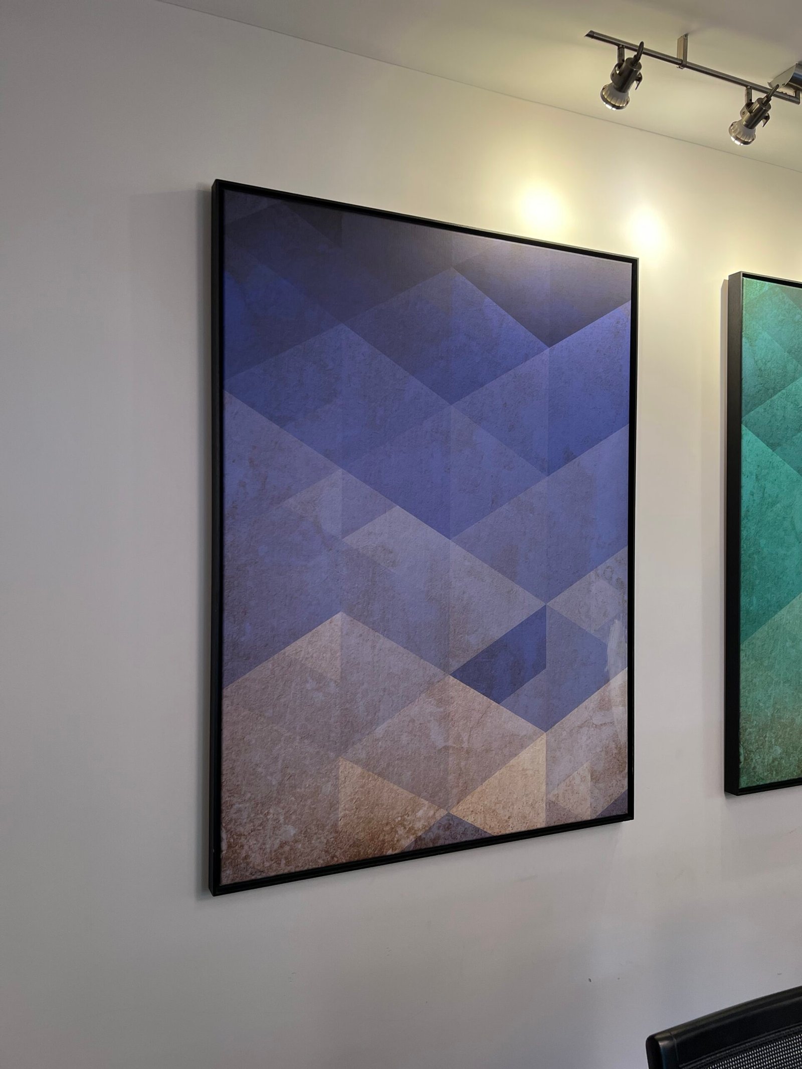 Cód: tiucasp17 DESCRIÇÃO: Quadro Material / técnica: canva Moldura: madeira preta Cor: azul
