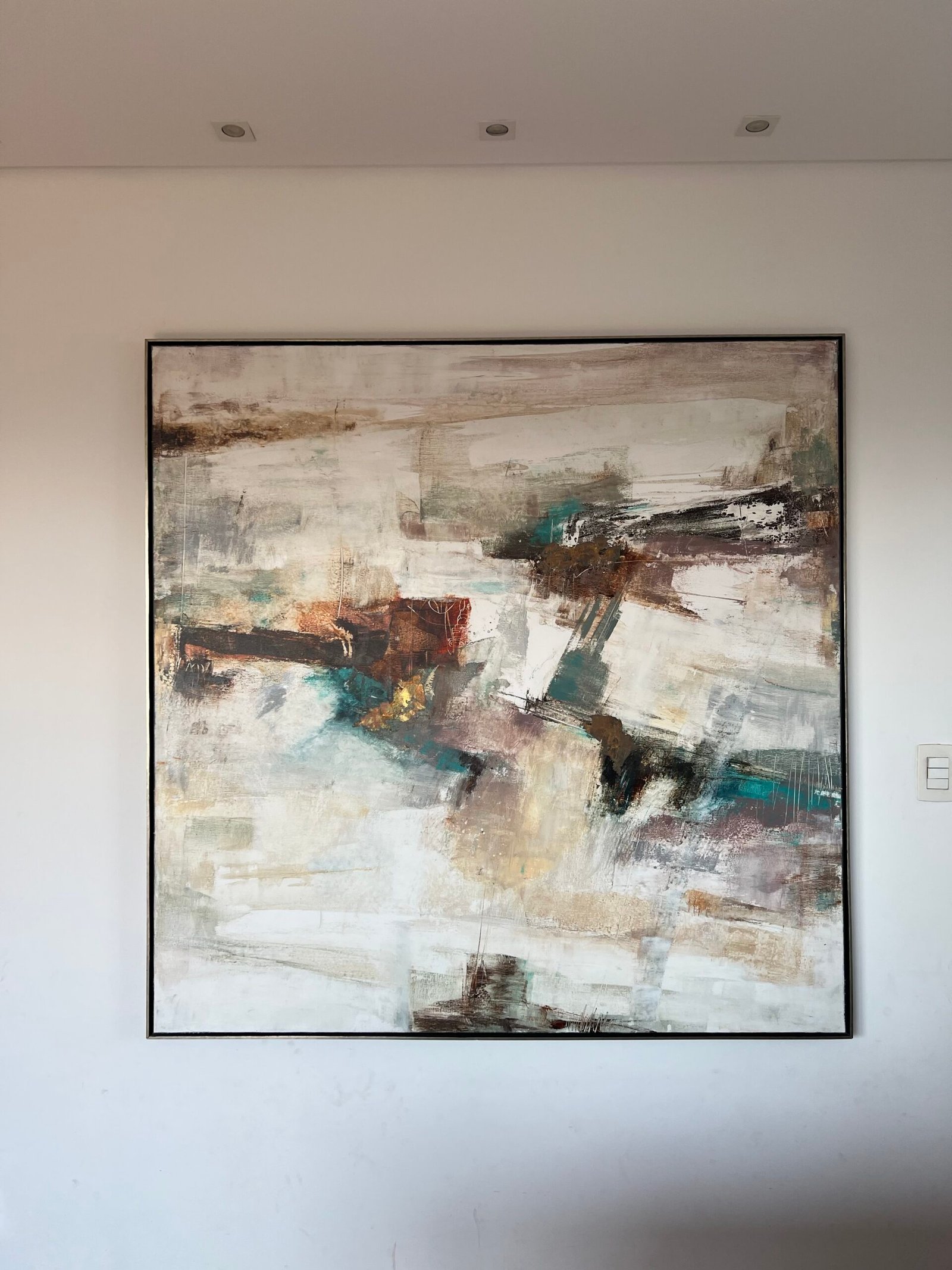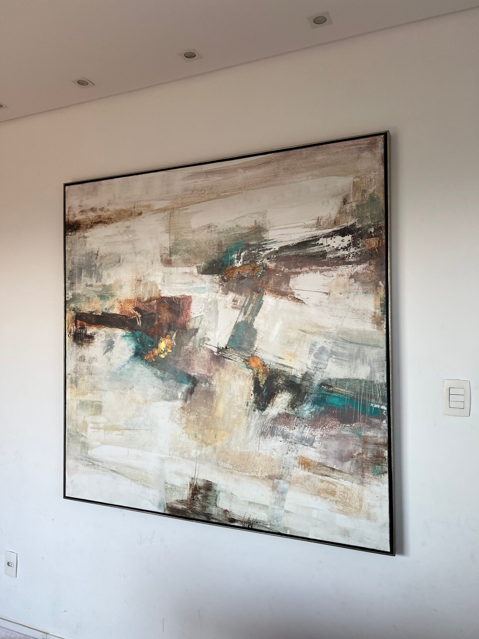 Cód:agamisp01 DESCRIÇÃO: 01 Quadro Abstrato Moldura: madeira na cor grafite
