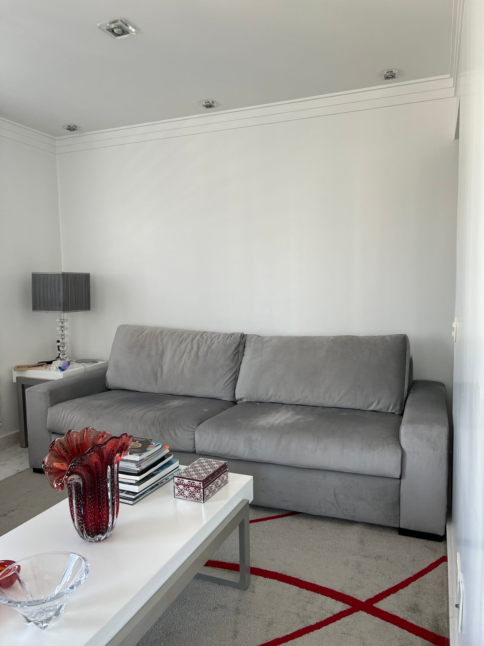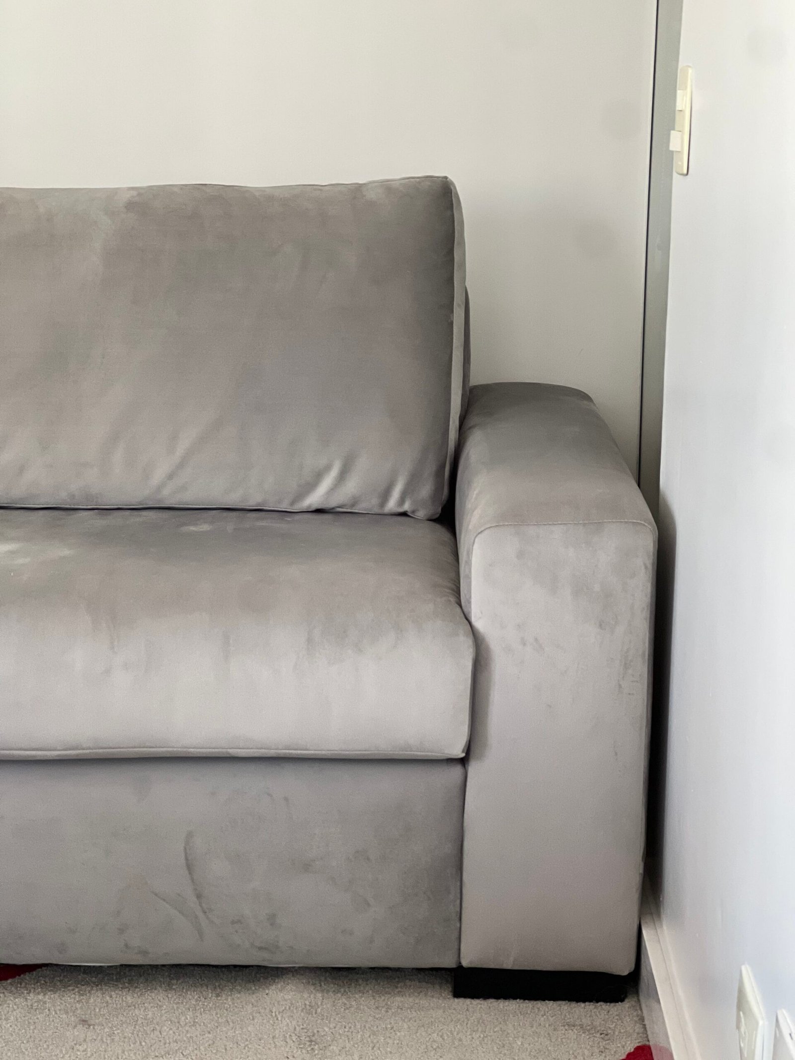 Cód: kjiansp01 DESCRIÇÃO: Sofá Pés em madeira Tecido: veludo Cor: cinza