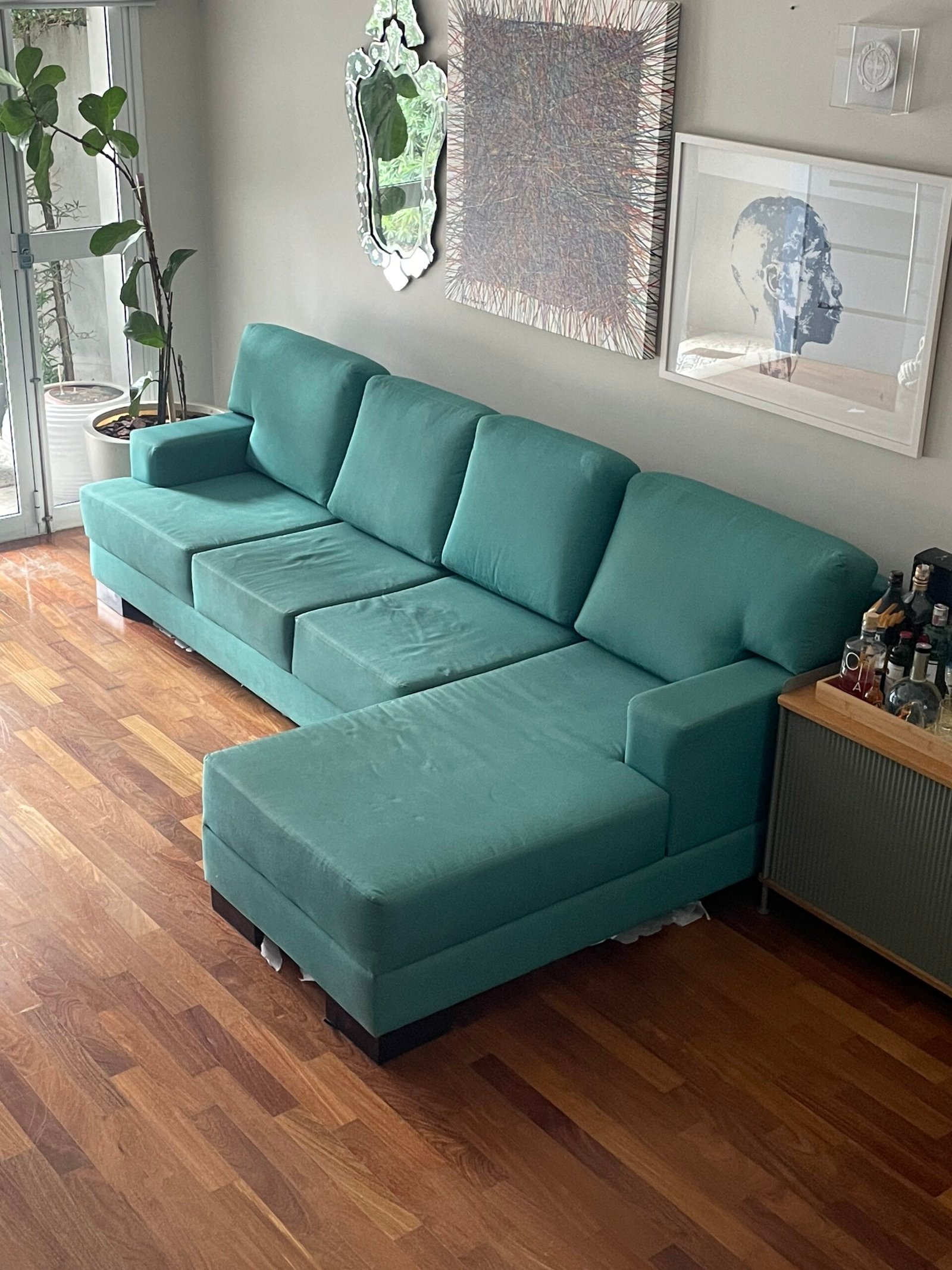 Medidas: 2.70 x 0.90 prof. total x 1.56 prof. total chaise x 0.42 alt. assento x 0.58 alt. braço x 0.90 alt. total