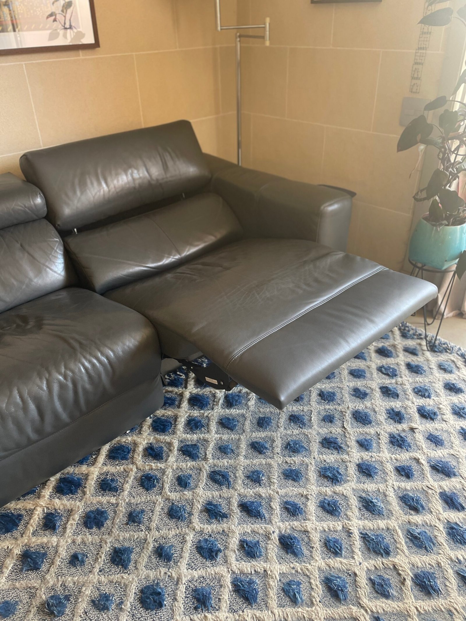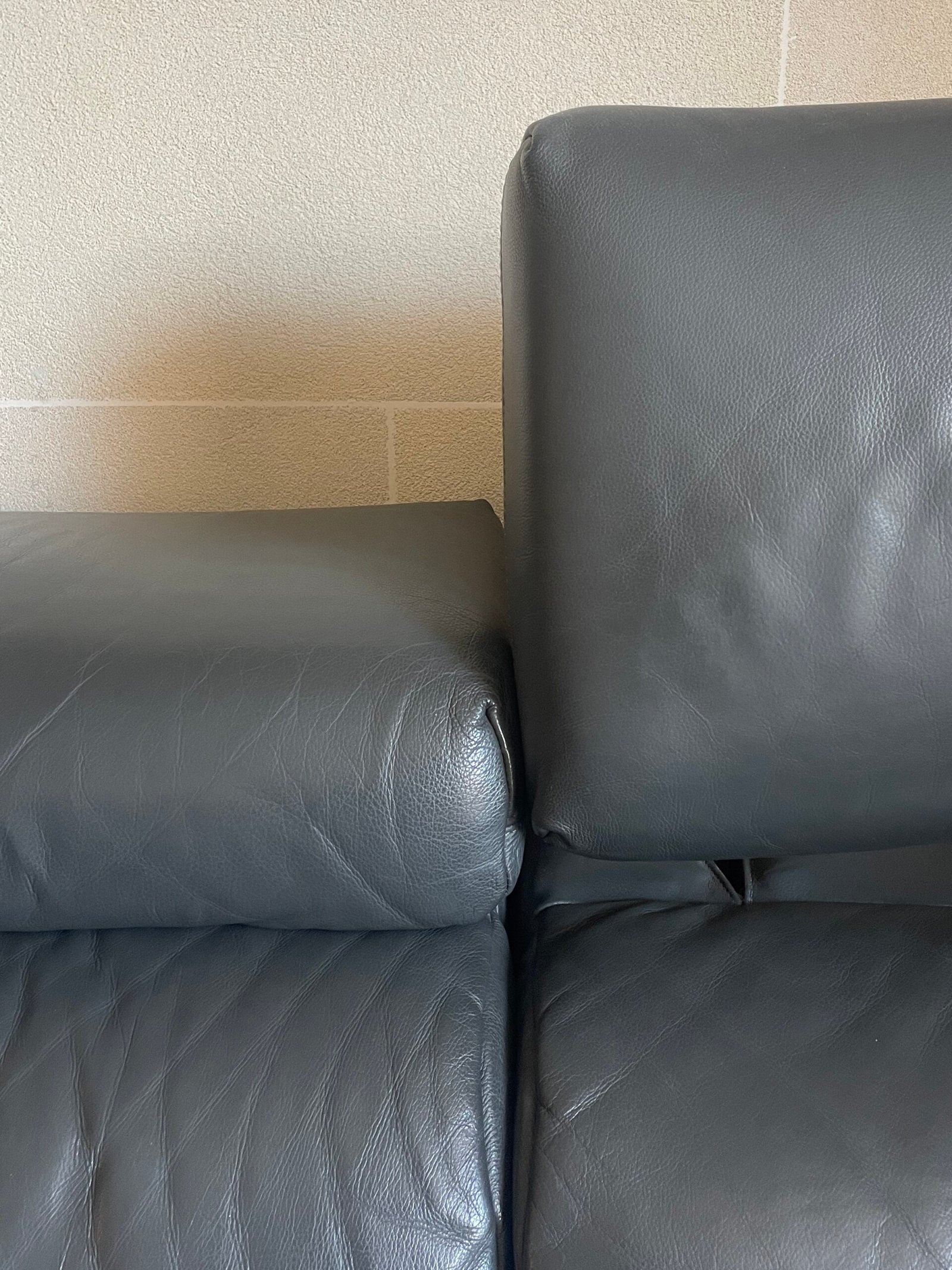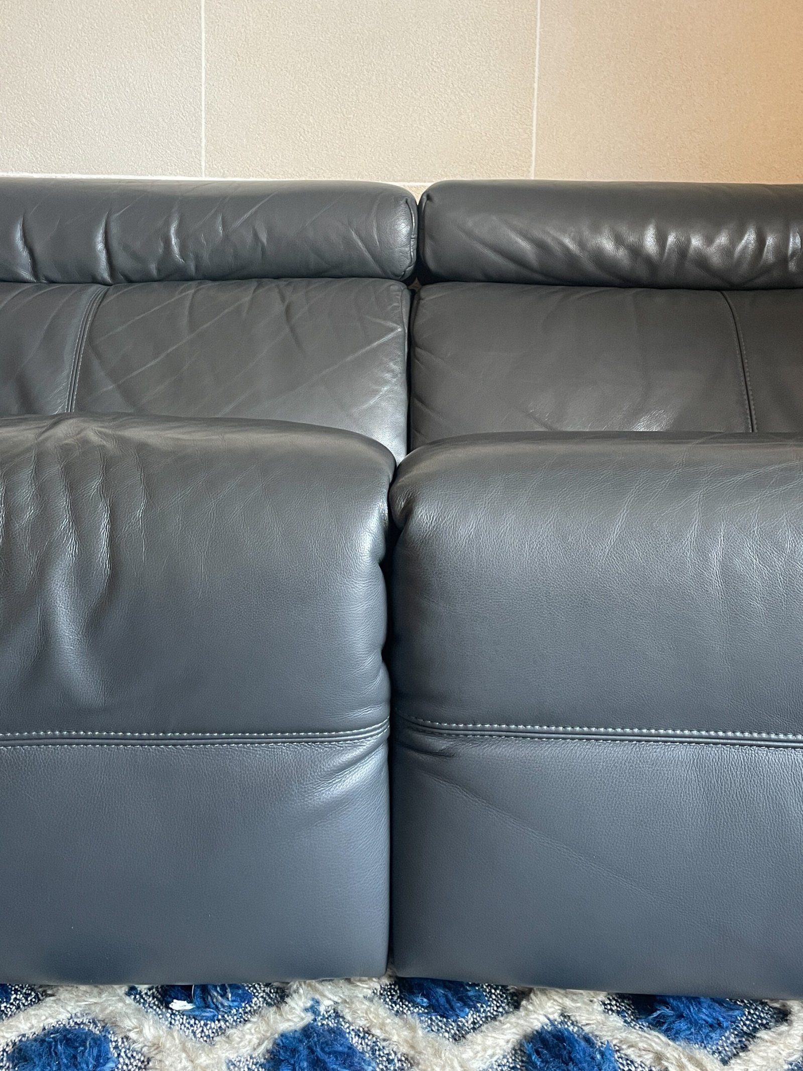 Cód: tejosp01 DESCRIÇÃO: Sofá Natuzzi Balance Encosto reclinável elétrico Assento retrátil elétrico Pés em madeira Voltagem: 110V Tecido: couro natura protecta Cor: grafite