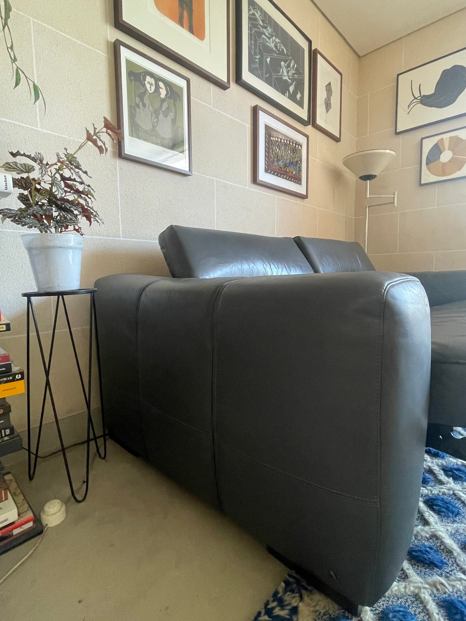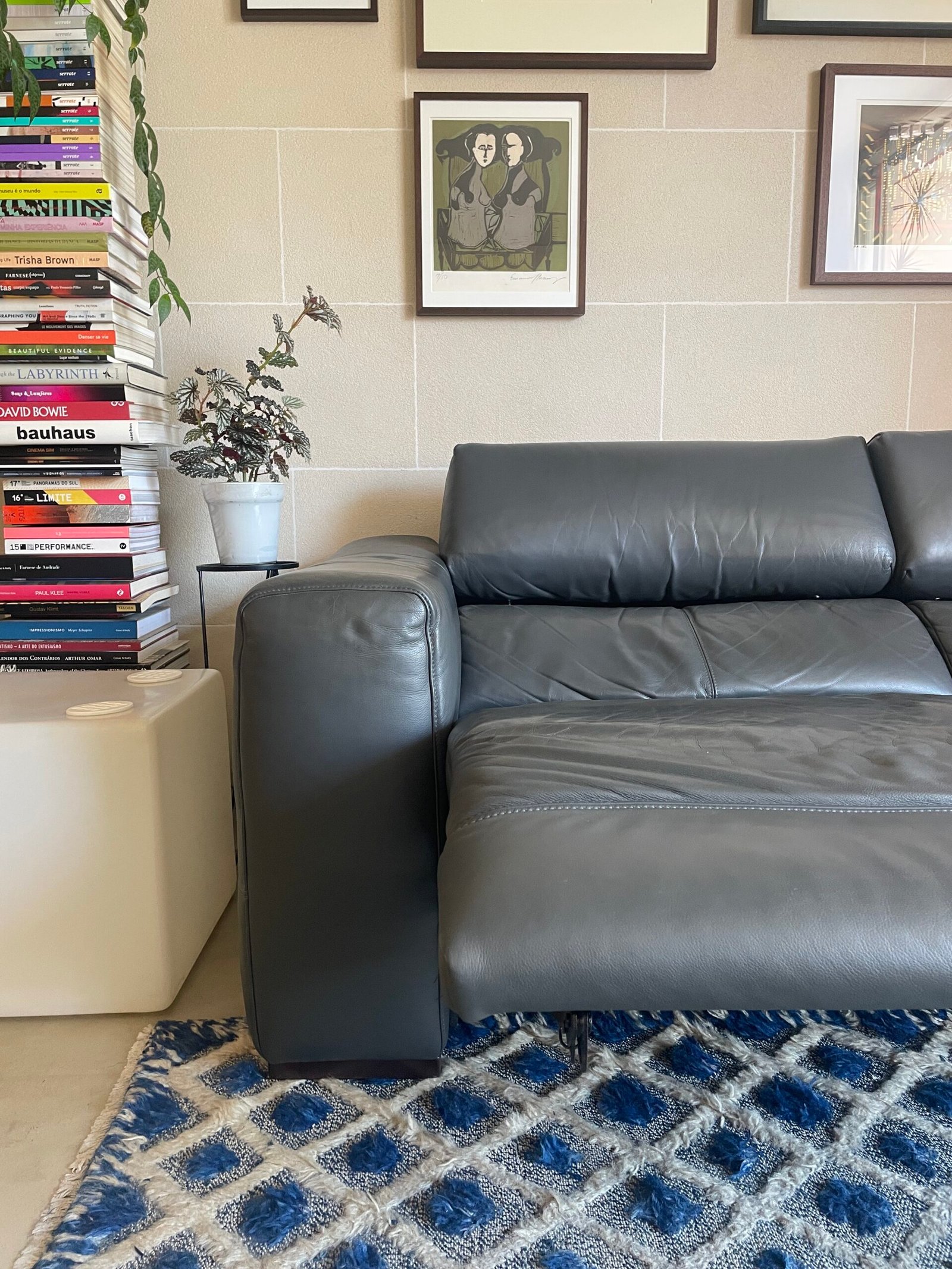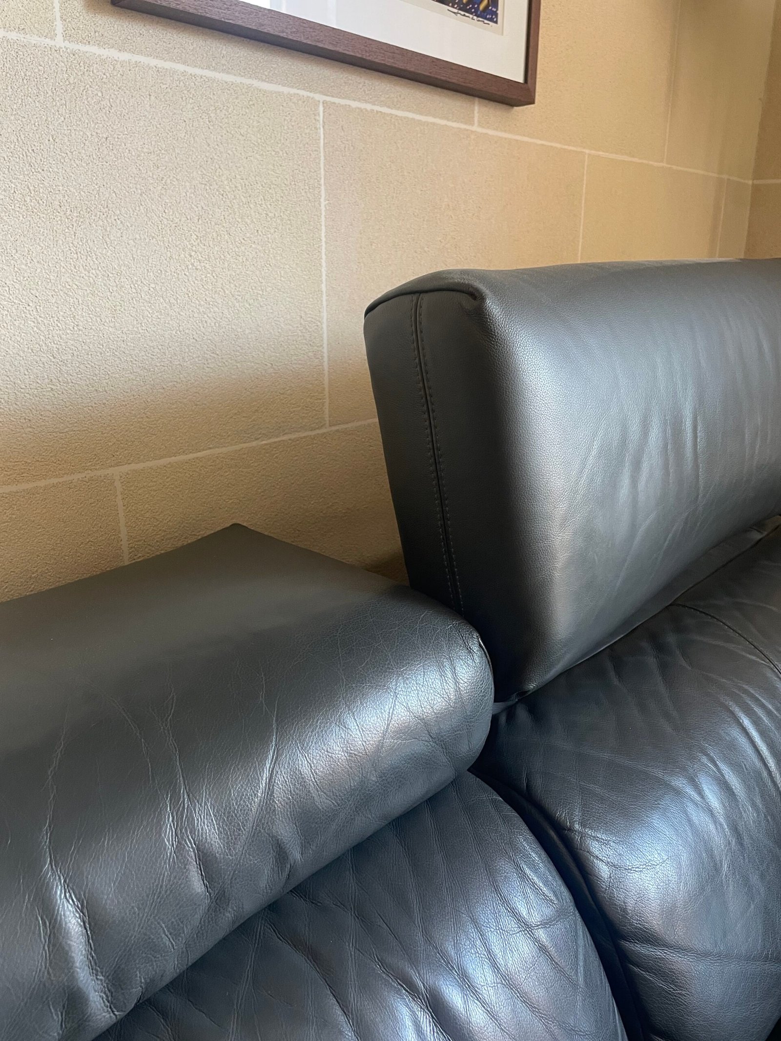Cód: tejosp01 DESCRIÇÃO: Sofá Natuzzi Balance Encosto reclinável elétrico Assento retrátil elétrico Pés em madeira Voltagem: 110V Tecido: couro natura protecta Cor: grafite
