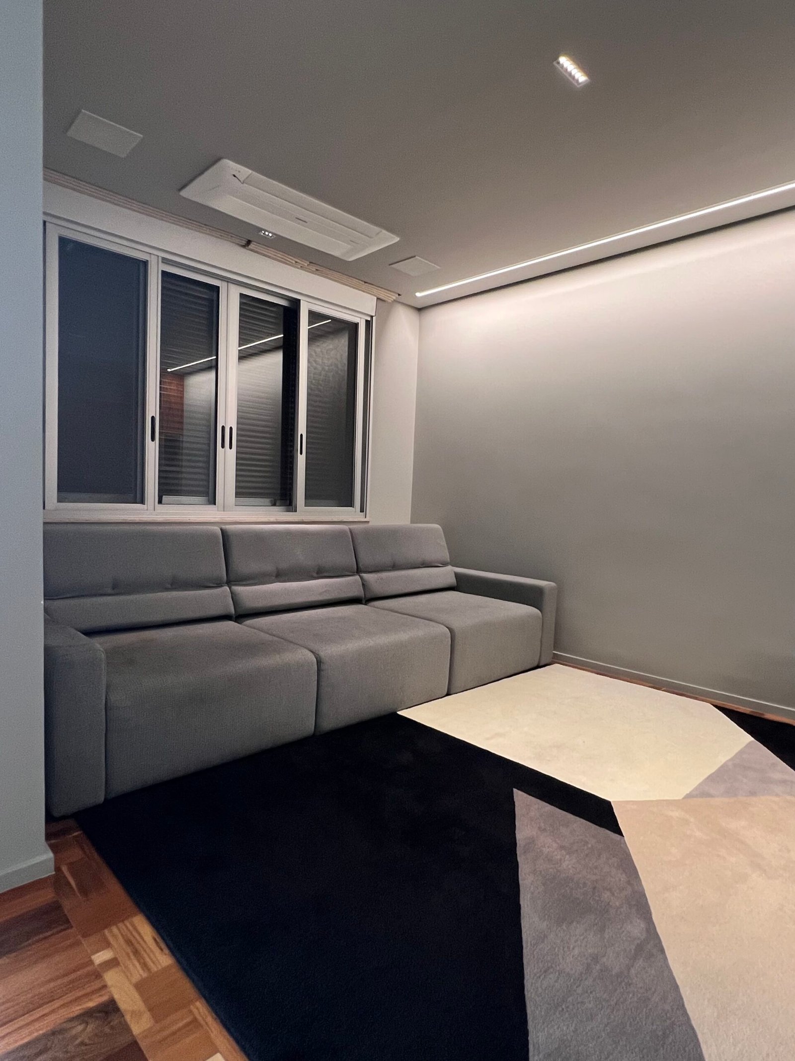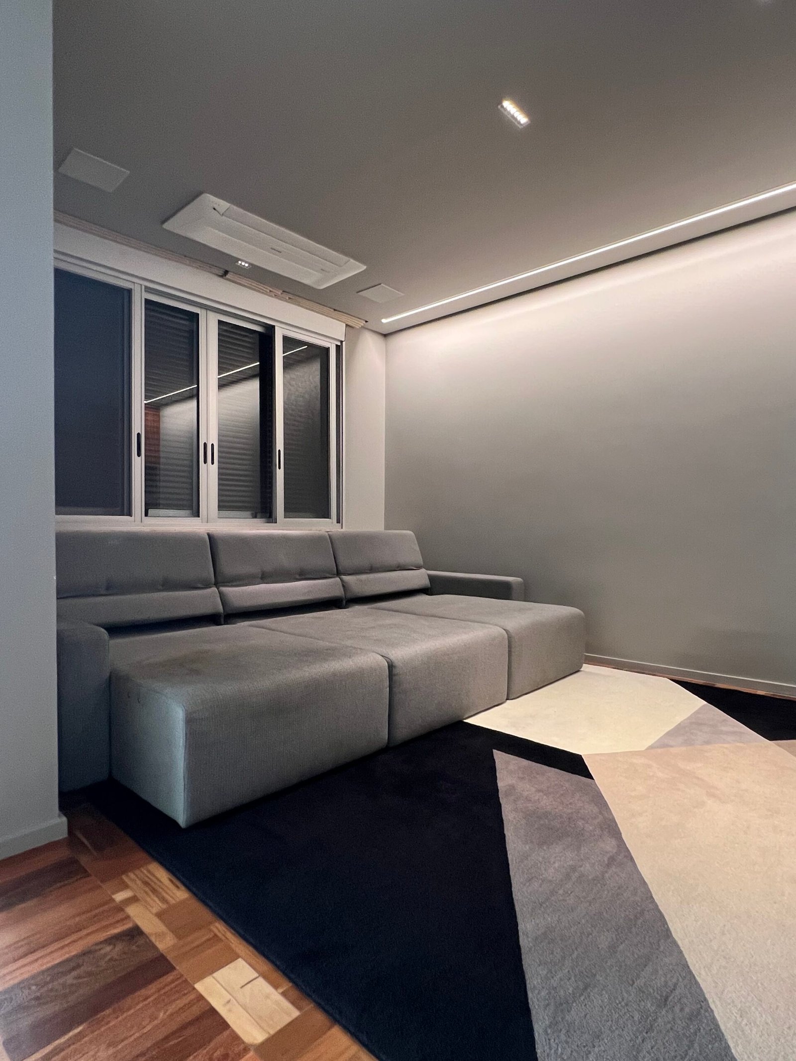 Cód: grinosp01 DESCRIÇÃO: Sofá retrátil Assento retrátil elétrico Encosto reclinável Voltagem: 110V Tecido: tramado Cor: cinza mescla