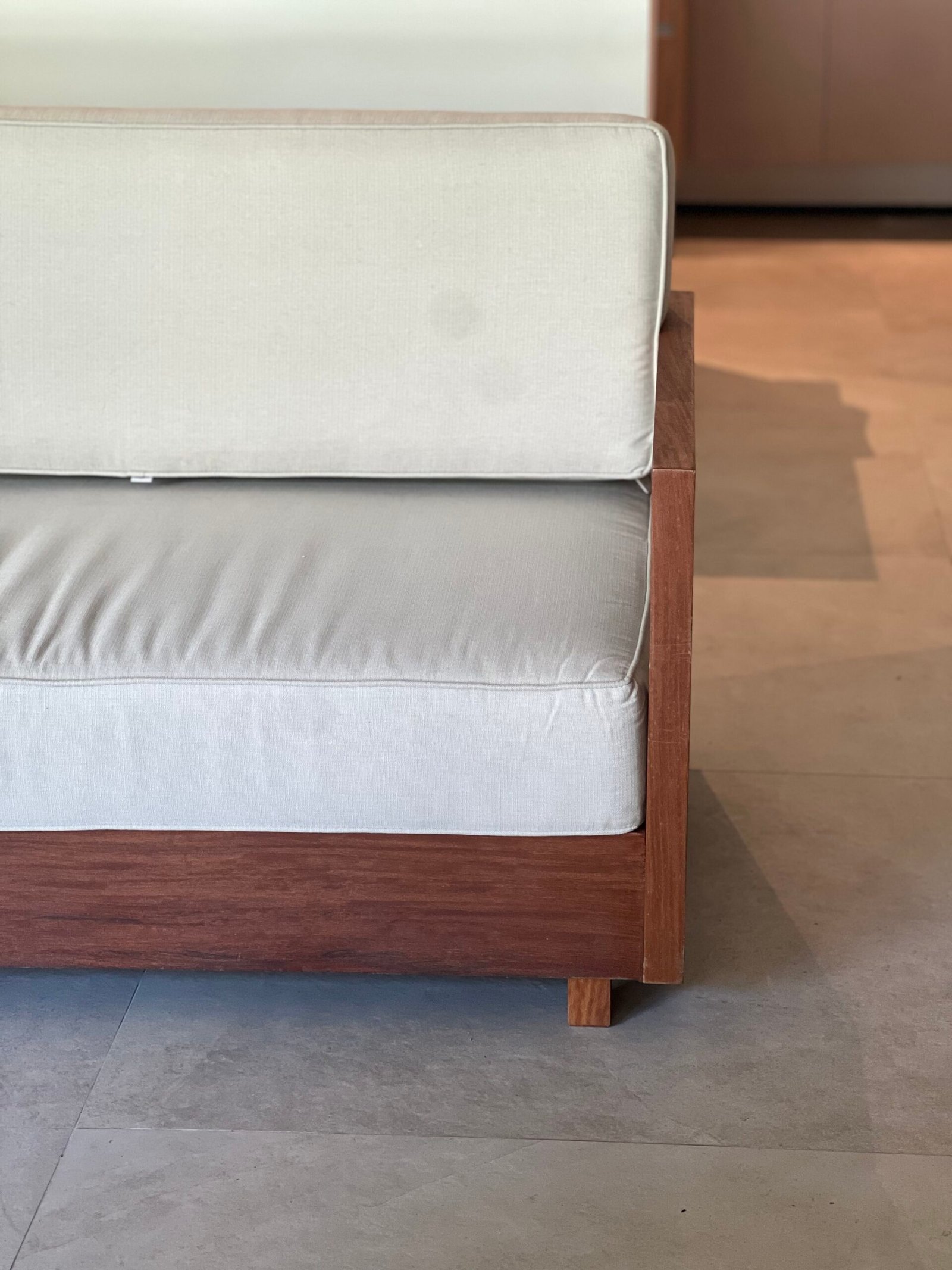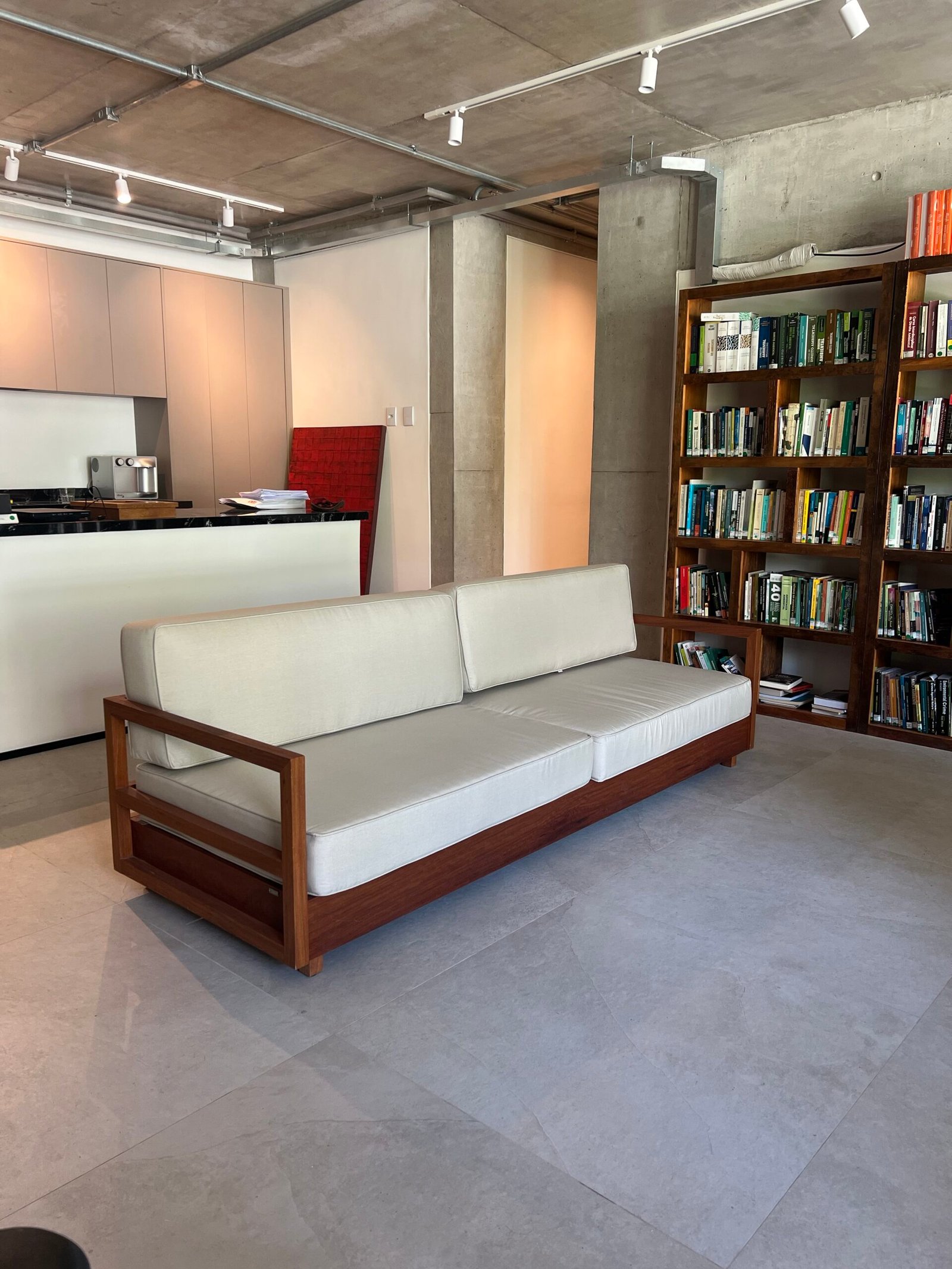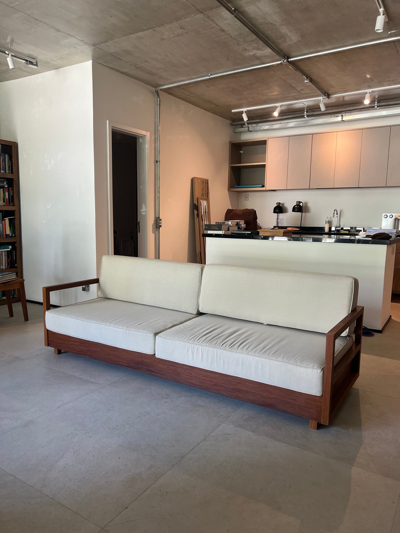 Cód: beanssarj01 DESCRIÇÃO: Sofá Rio Designer: Márcio Cecílio Estrutura: madeira cumaru Tecido: algodão Cor: off white