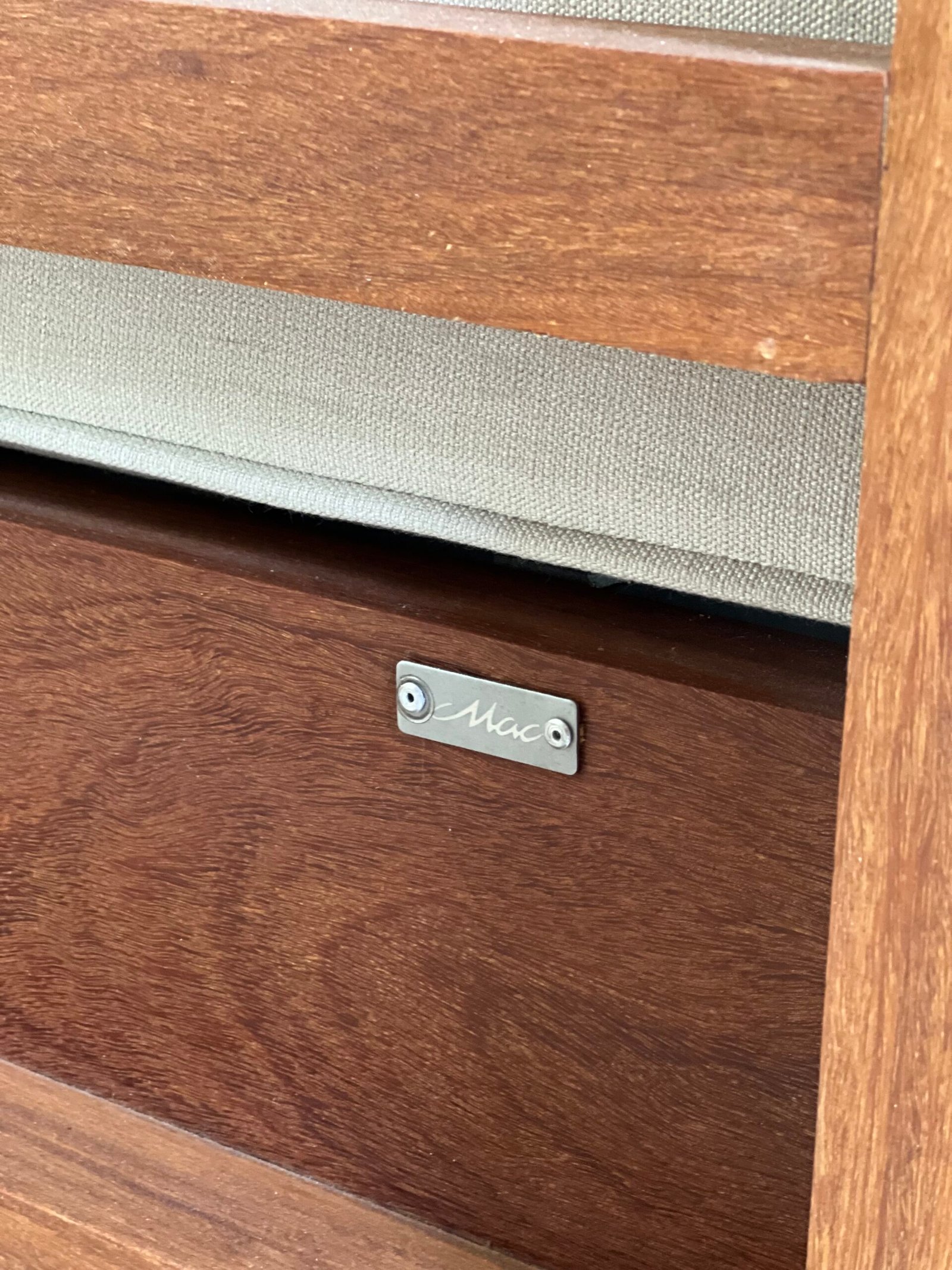 Procedência: Mac Design Avaliação: produto com pouca avaria de uso Medidas: 2.30 x 0.80 x 0.36 alt. assento x 0.45 alt. braço x 0.76 alt. total