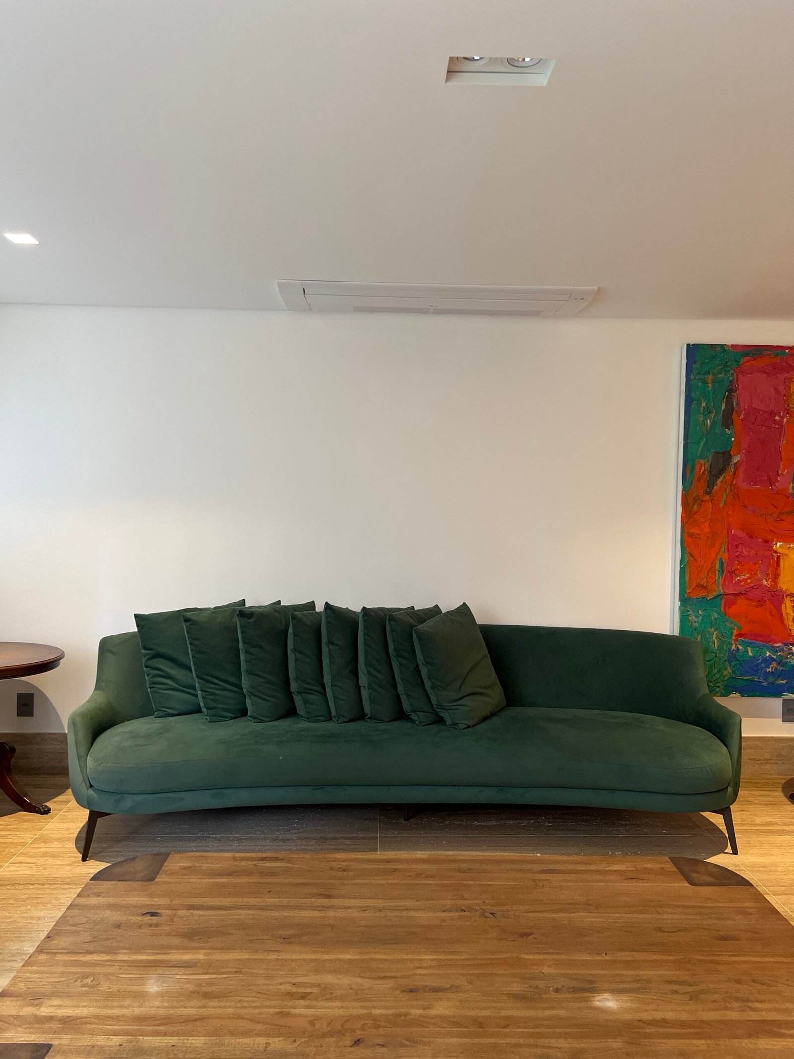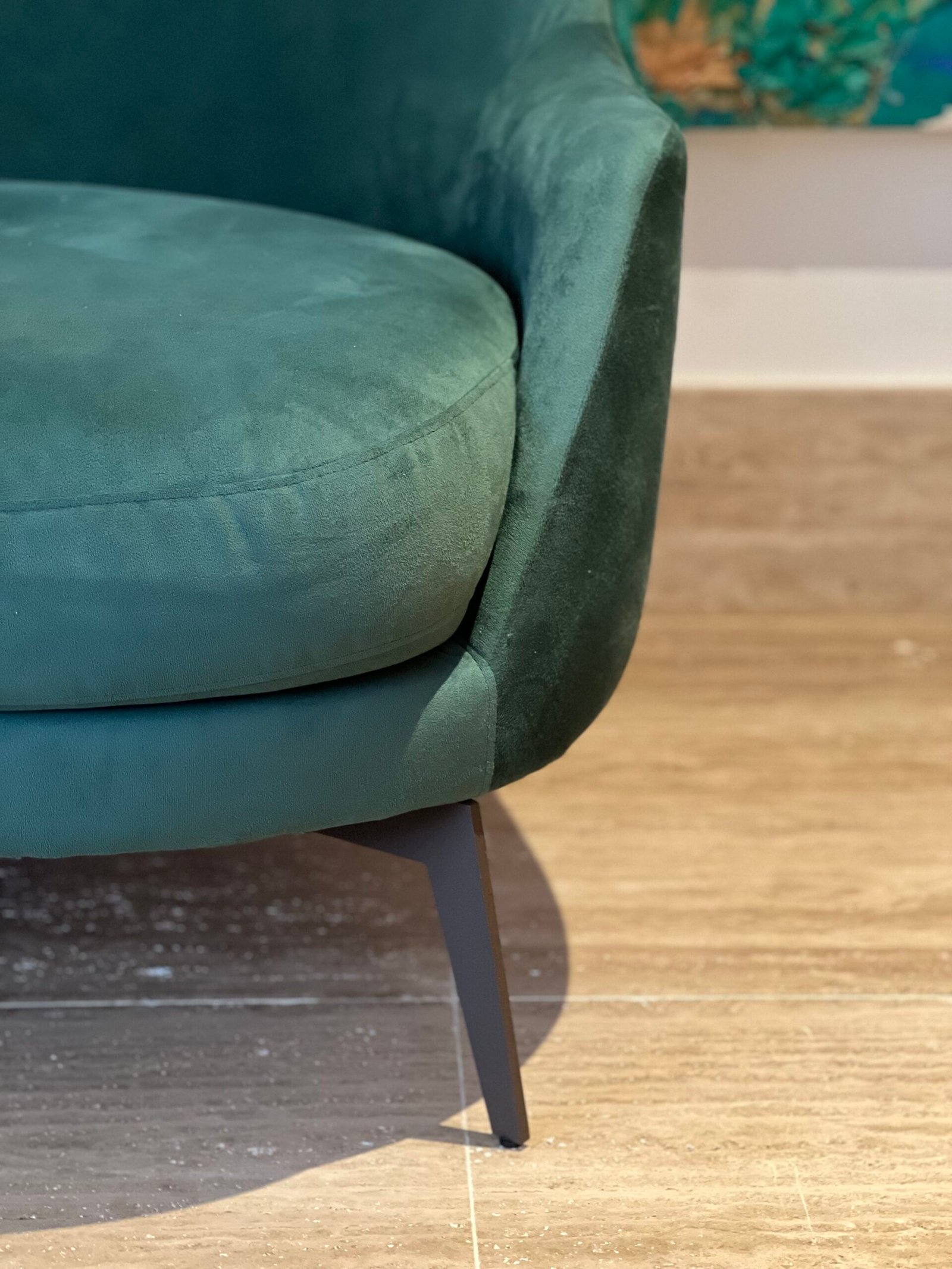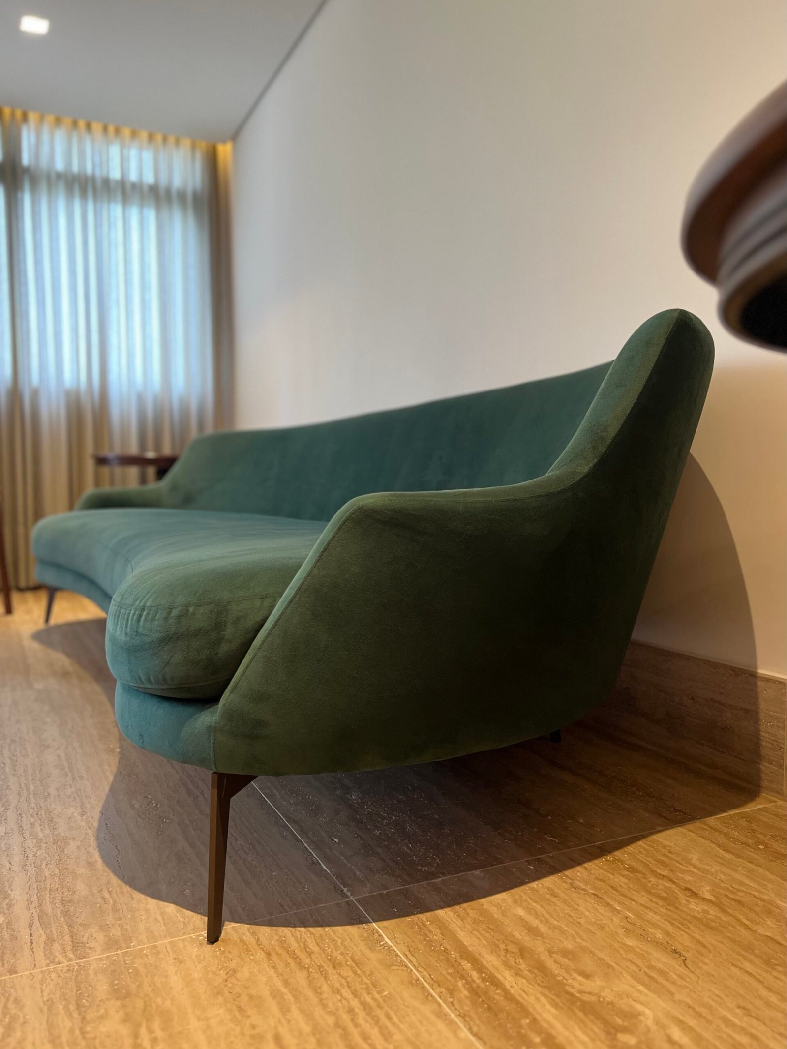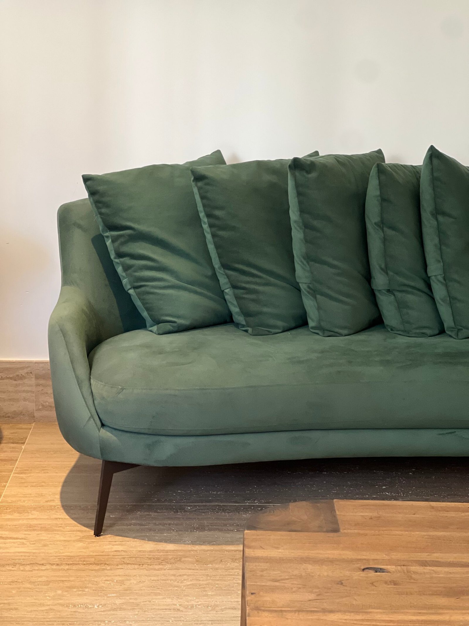 Cód: paixsp02 DESCRIÇÃO: Sofá Villach Pés em aço carbono Tecido: suede aveludo Cor: verde esmeralda