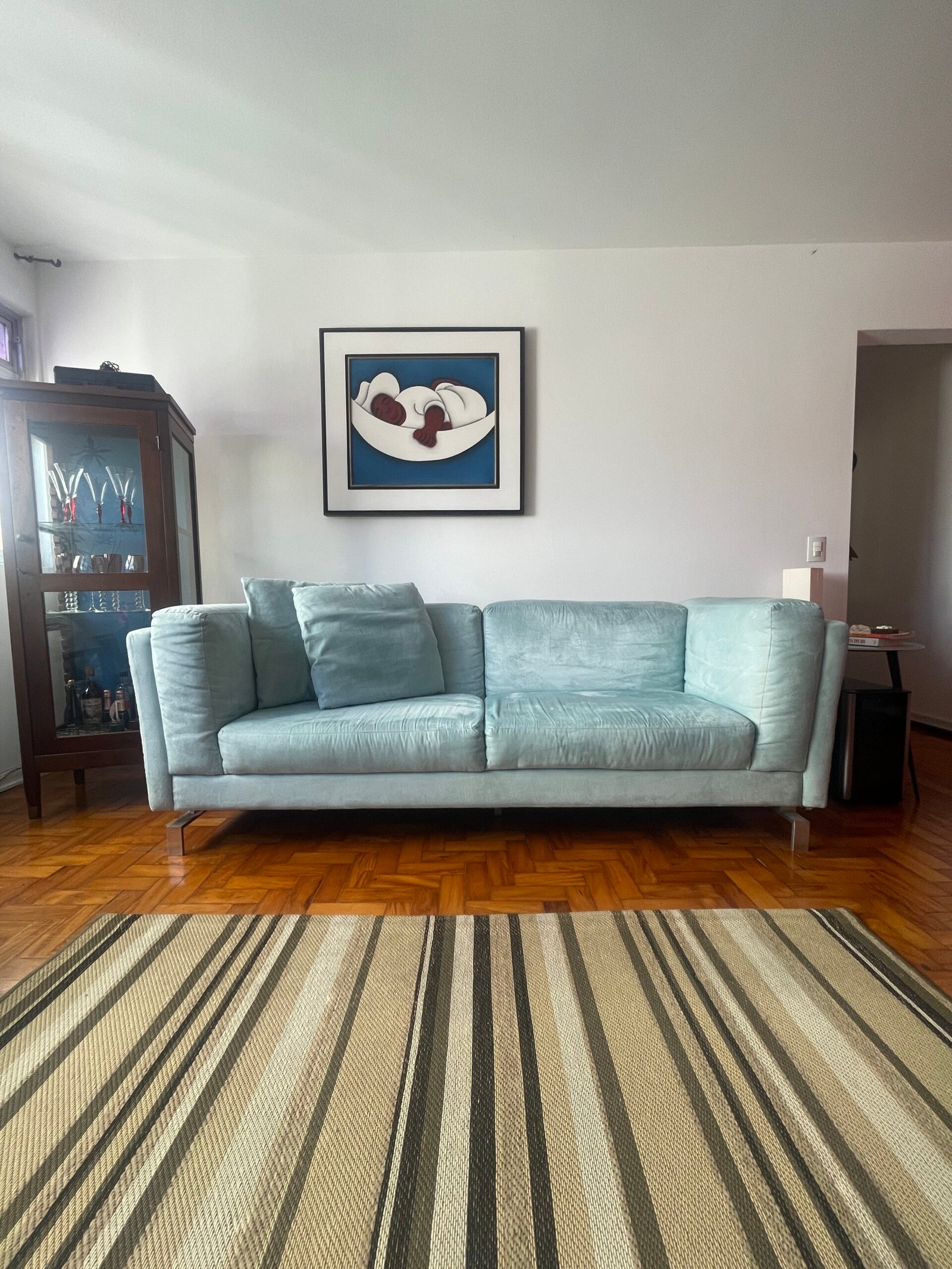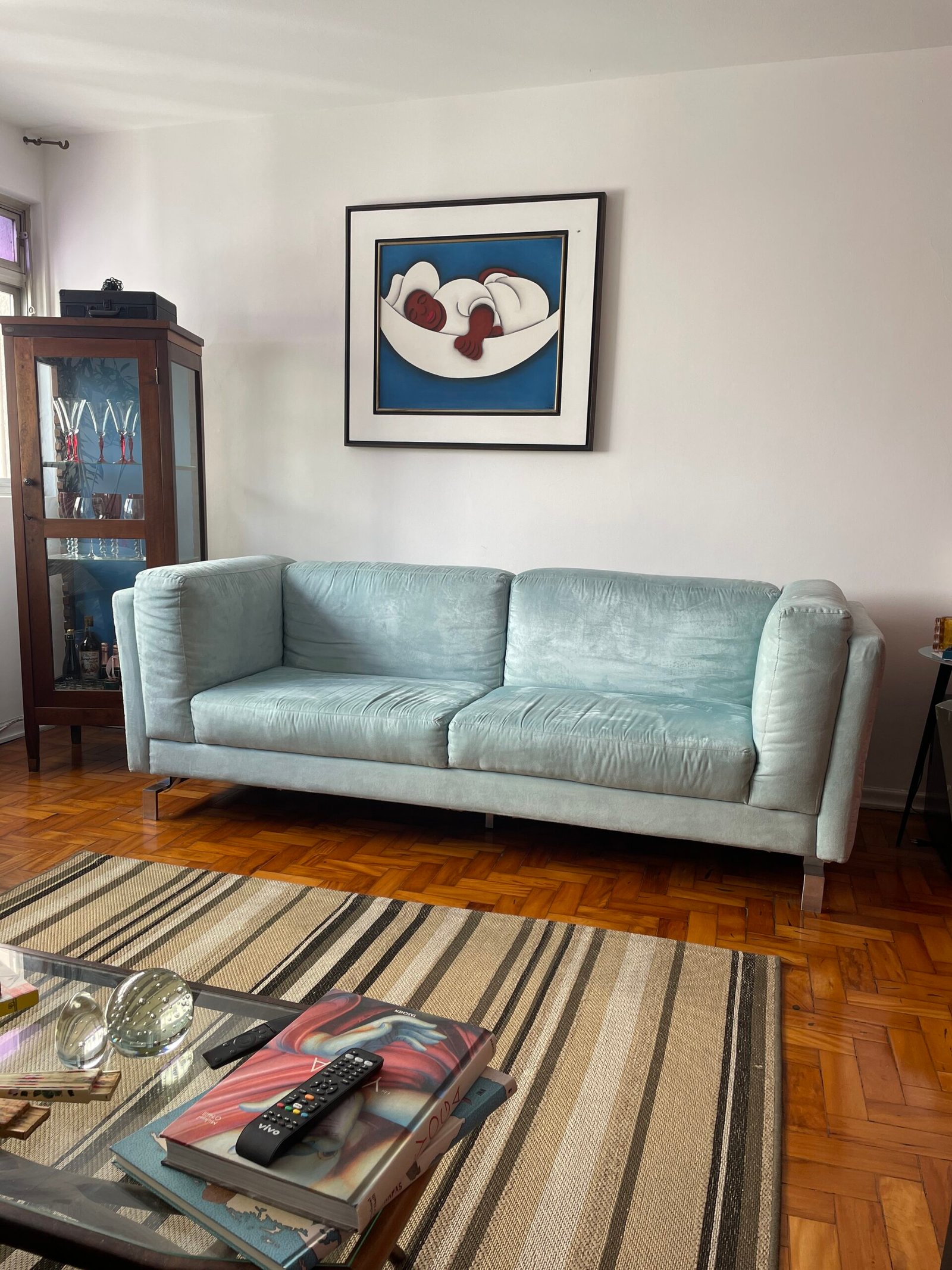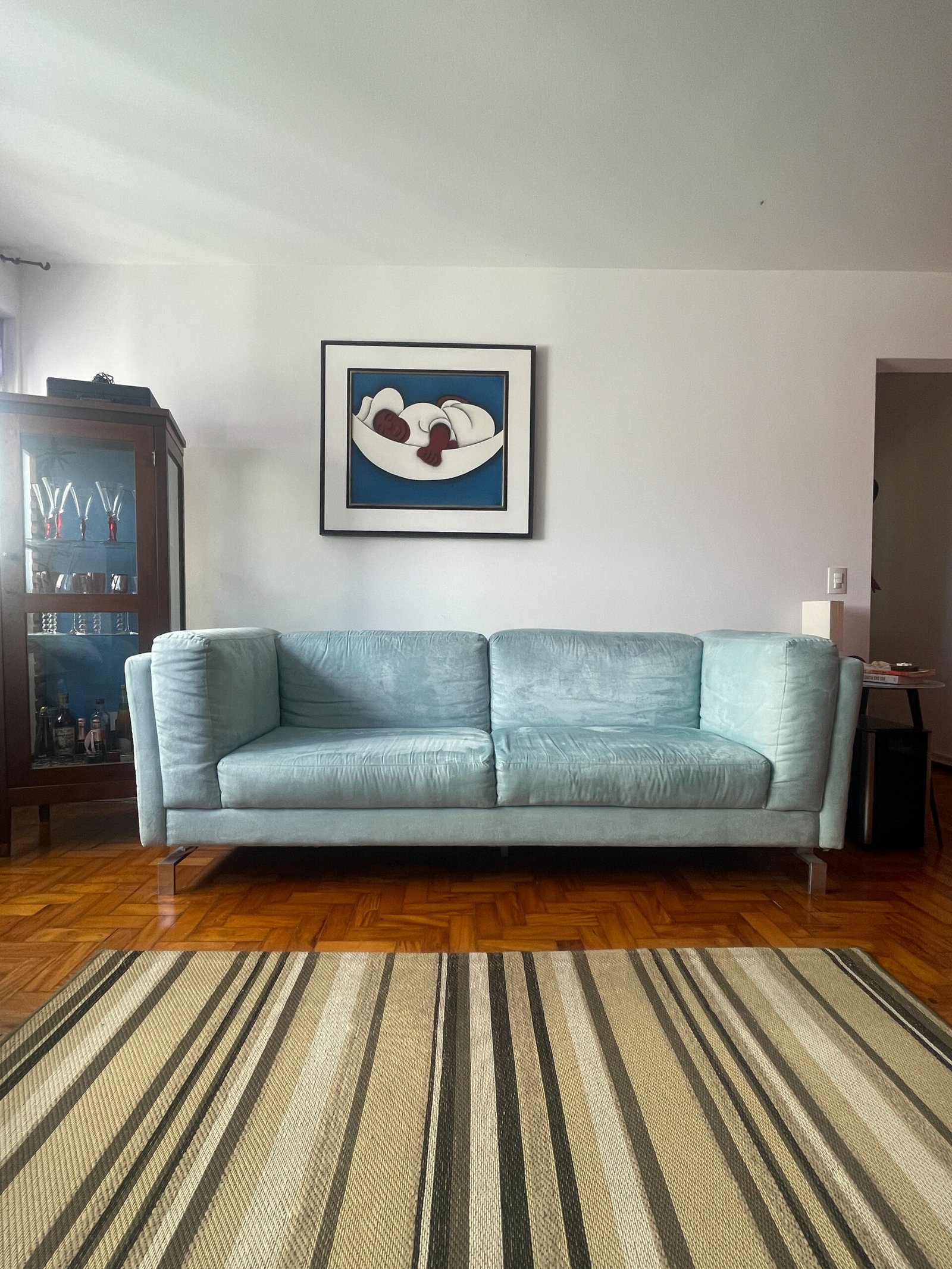Cód: aivasp01 DESCRIÇÃO: 01 Sofá Pés em aço inox Tecido: suede Cor: azul claro